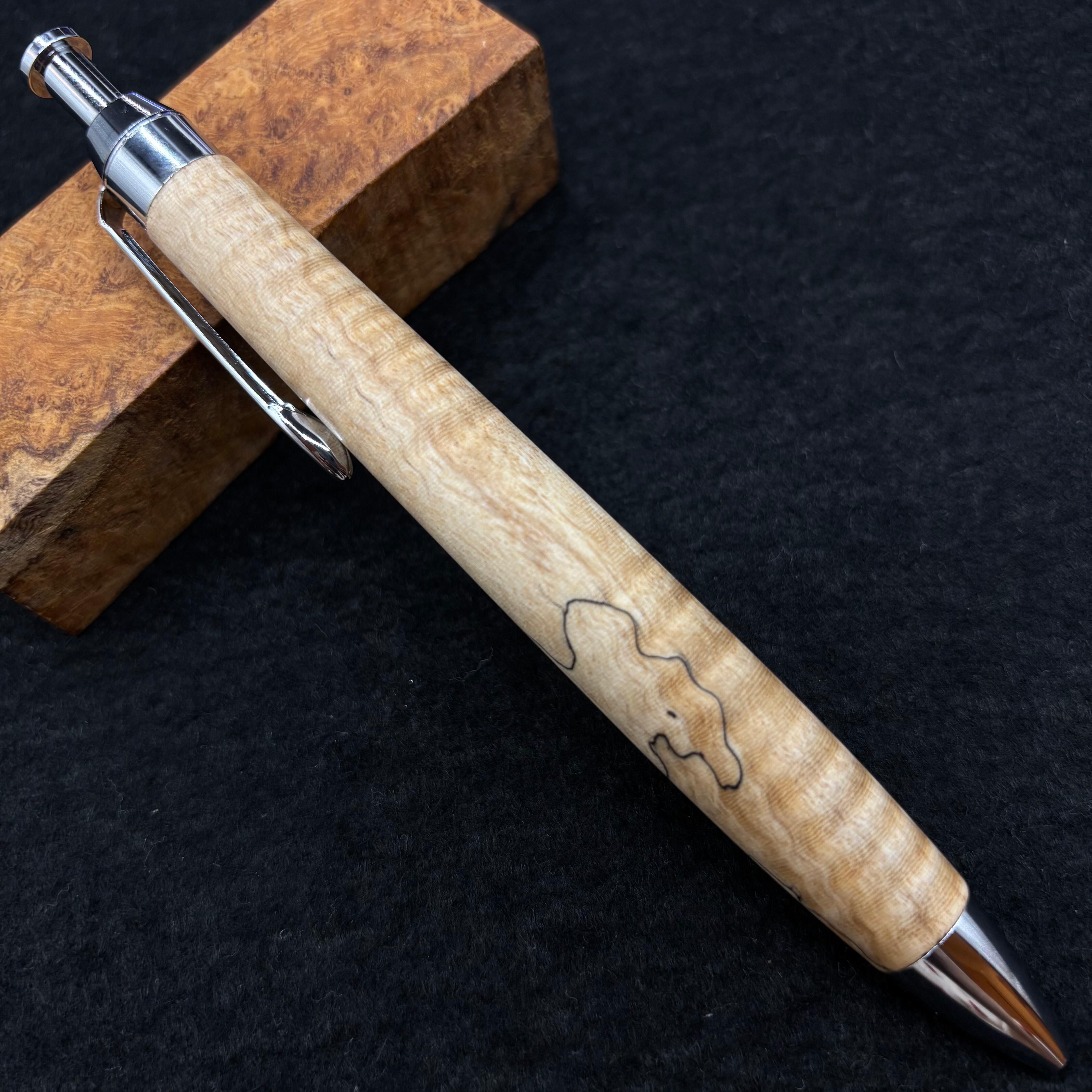 【栃 縮み杢 スポルテッド】木軸ペン 三神シャープ1000 / 三神ボール1000