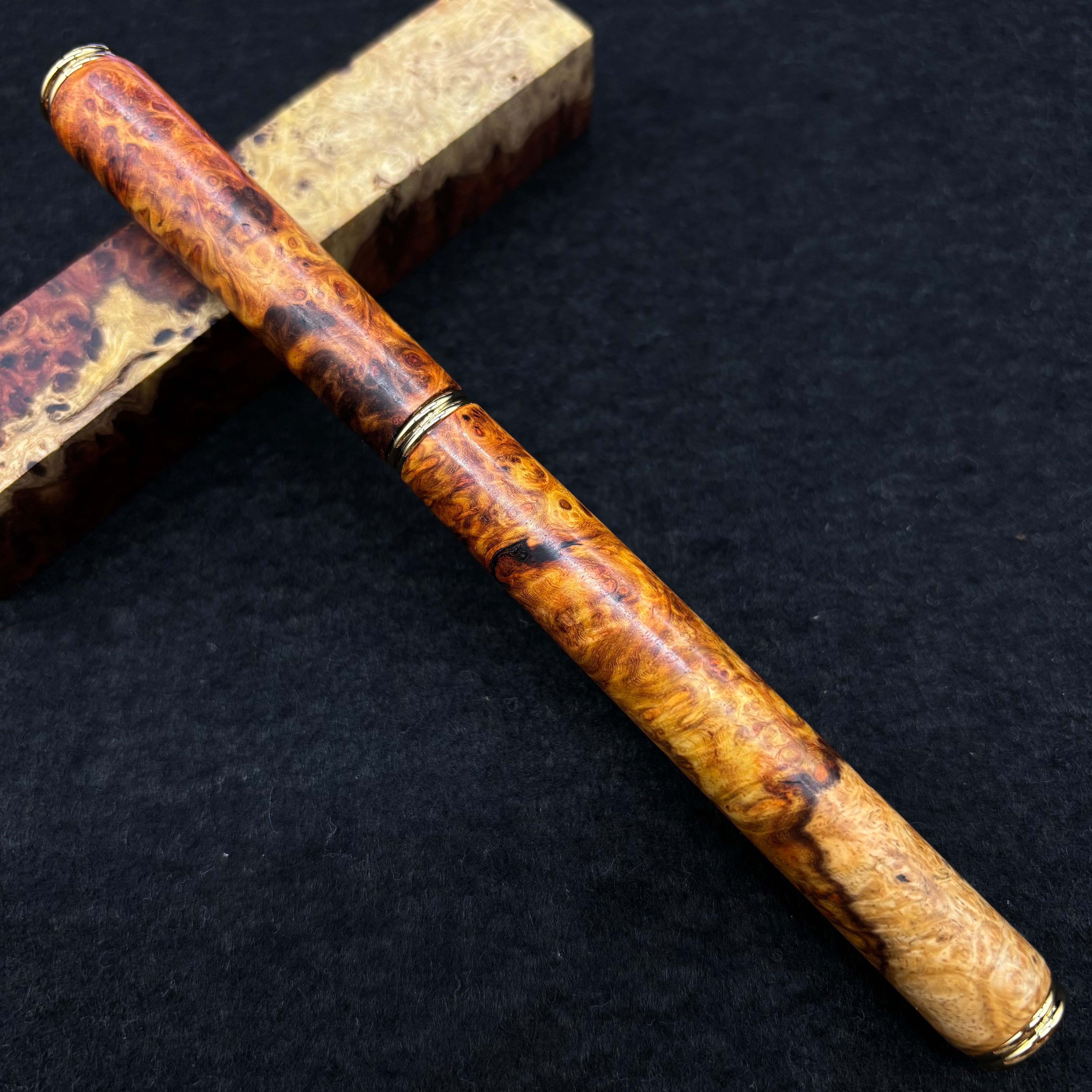 【極上杢 アンボイナバール 紅白】木軸キャップ式ボールペン