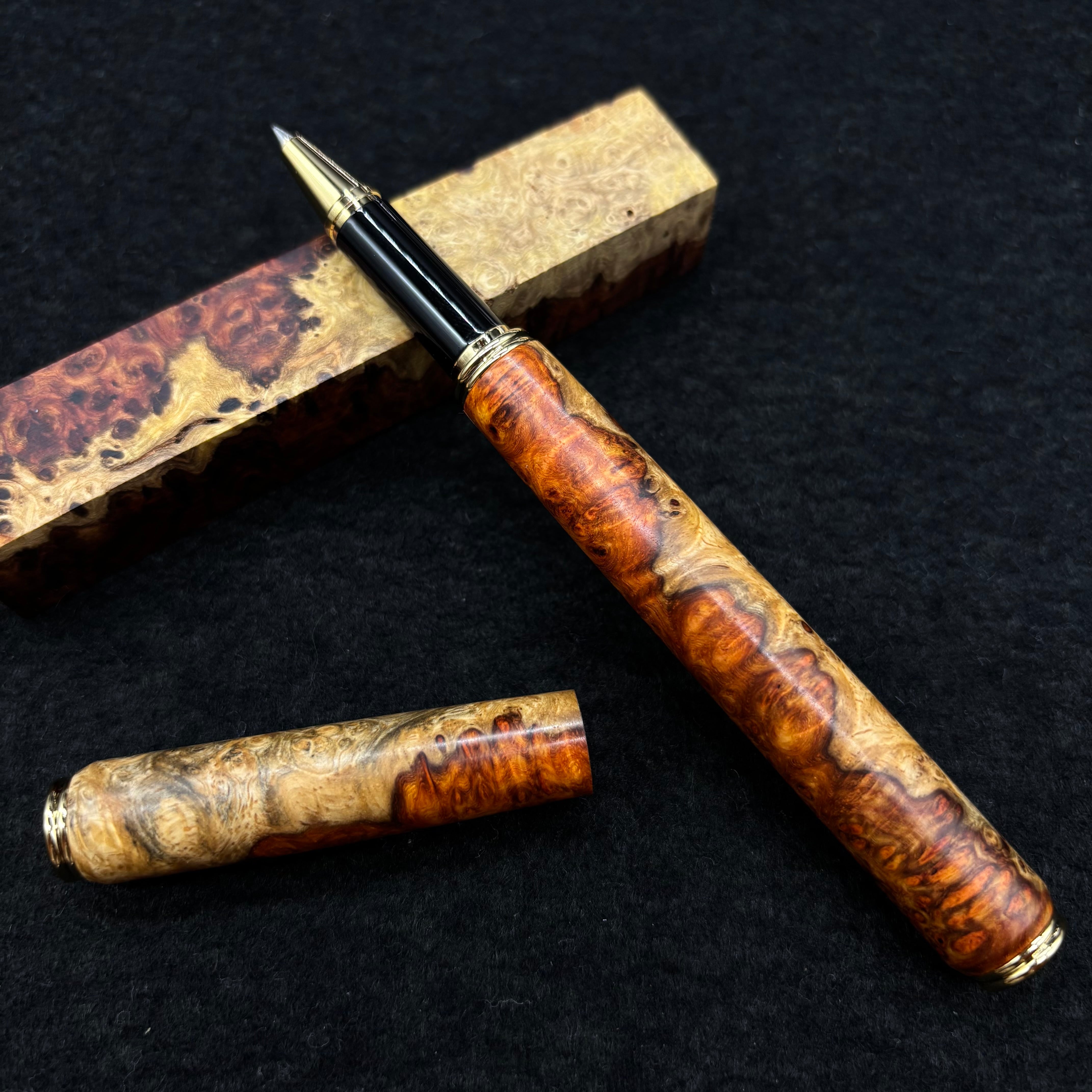 【極上杢 アンボイナバール 紅白】木軸キャップ式ボールペン ヒビ小 アウトレット