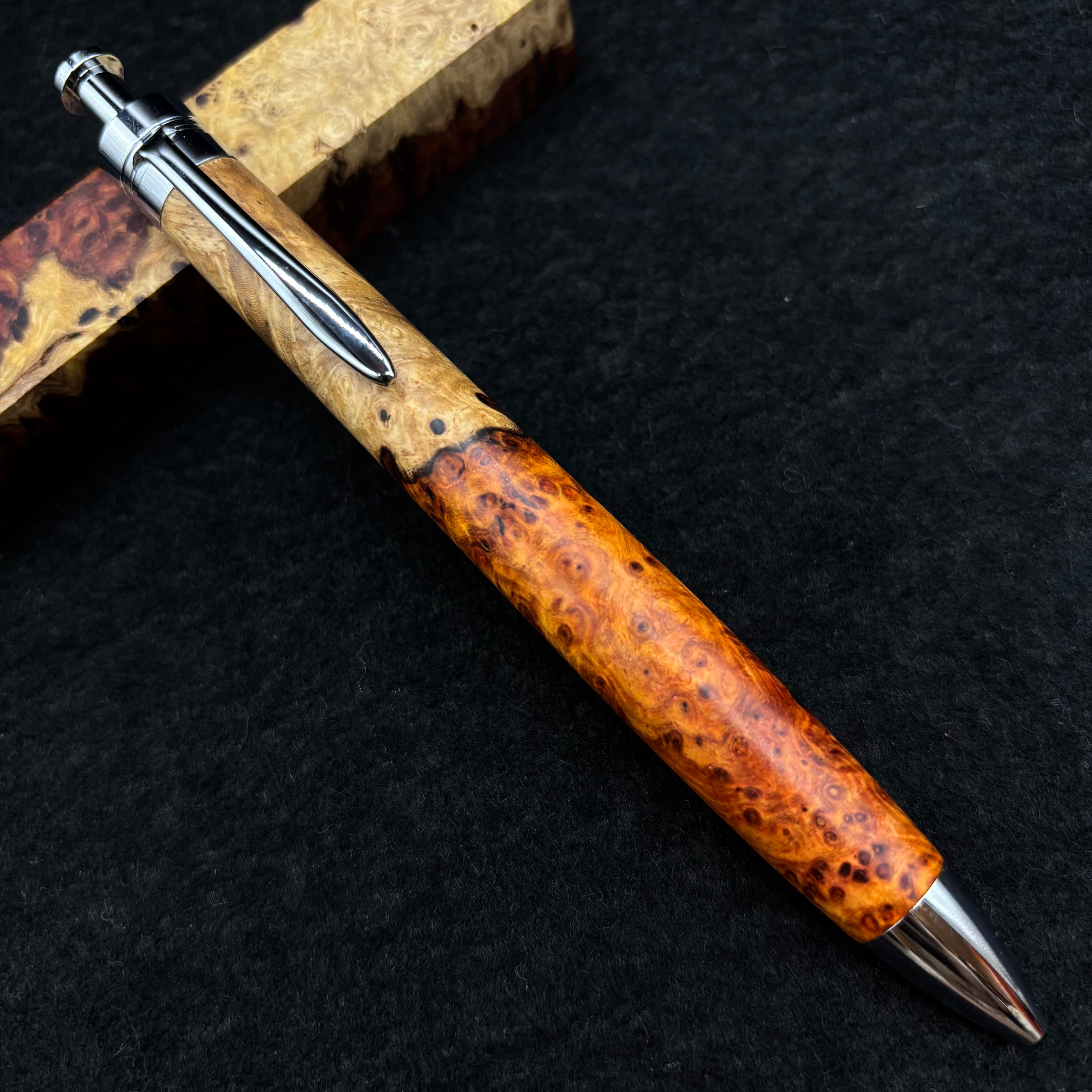 【極上杢 アンボイナバール 紅白】木軸ペン 三神シャープ1100 / 三神ボール1000