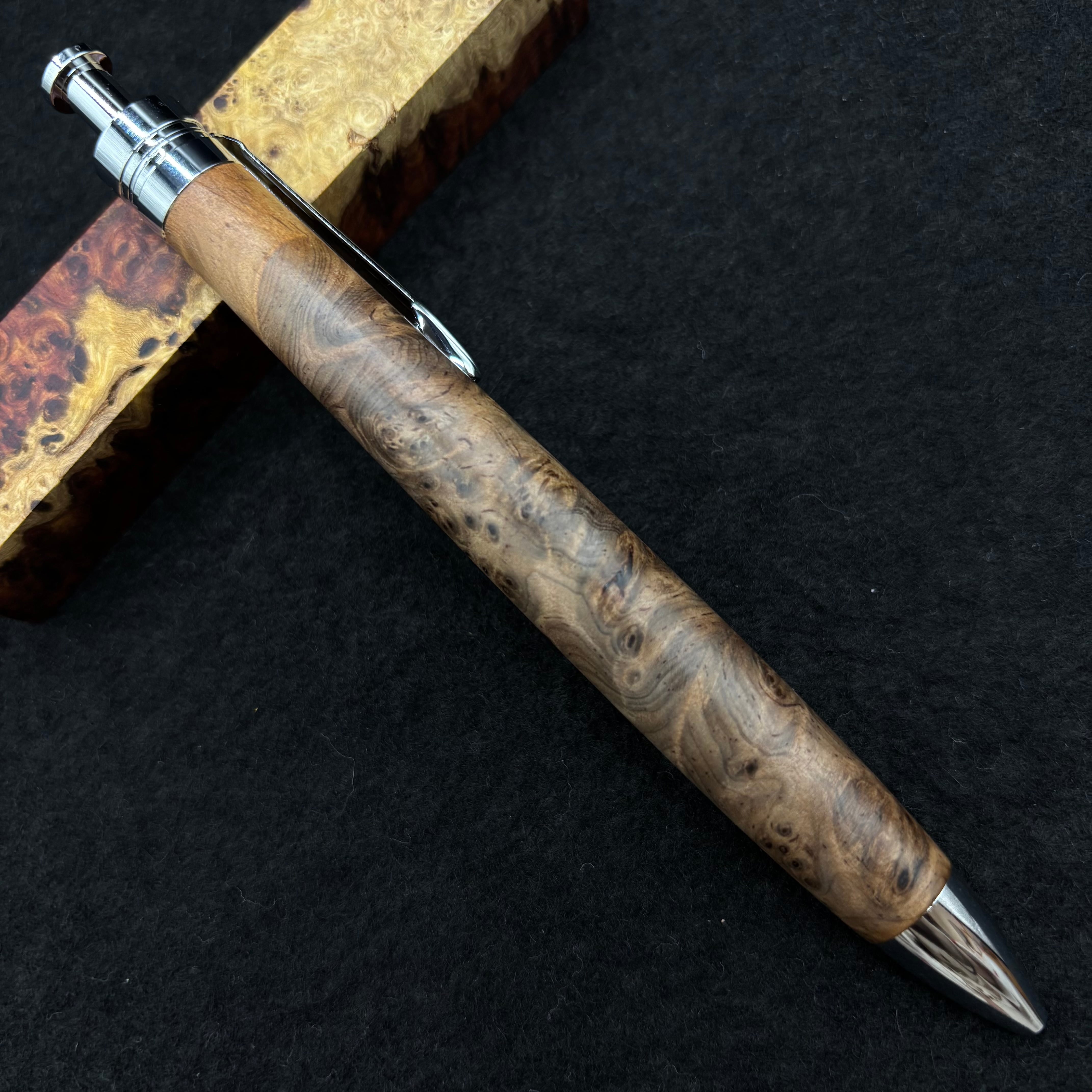 富士山のふもとで、主にインドネシアの良質な瘤材を使用し、木軸ペンをはじめとした木製小物を製作しております。