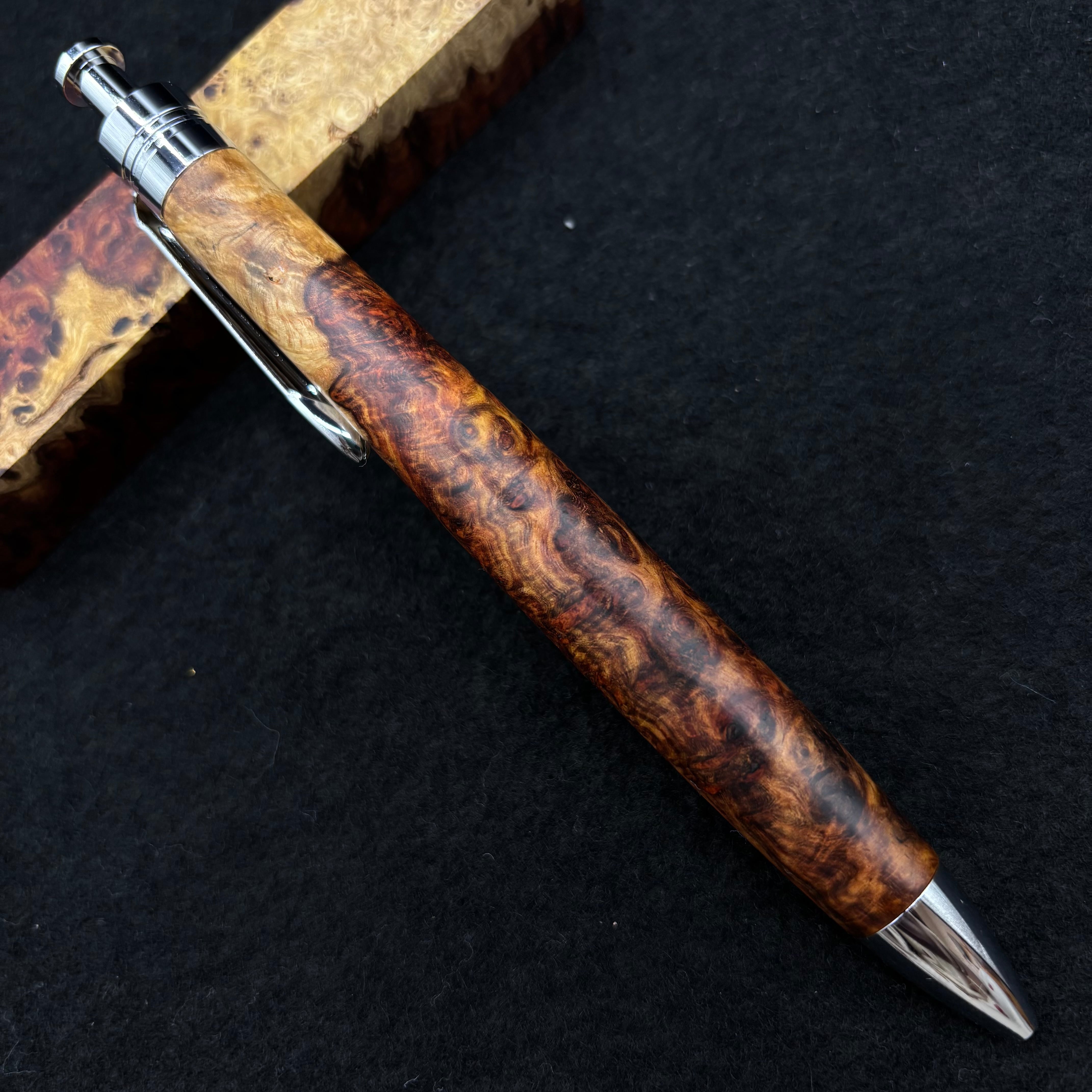 【極上杢 アンボイナバール 紅白】木軸ペン 三神シャープ1100 / 三神ボール1000