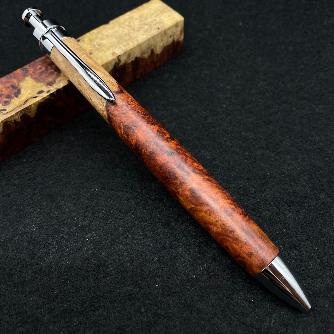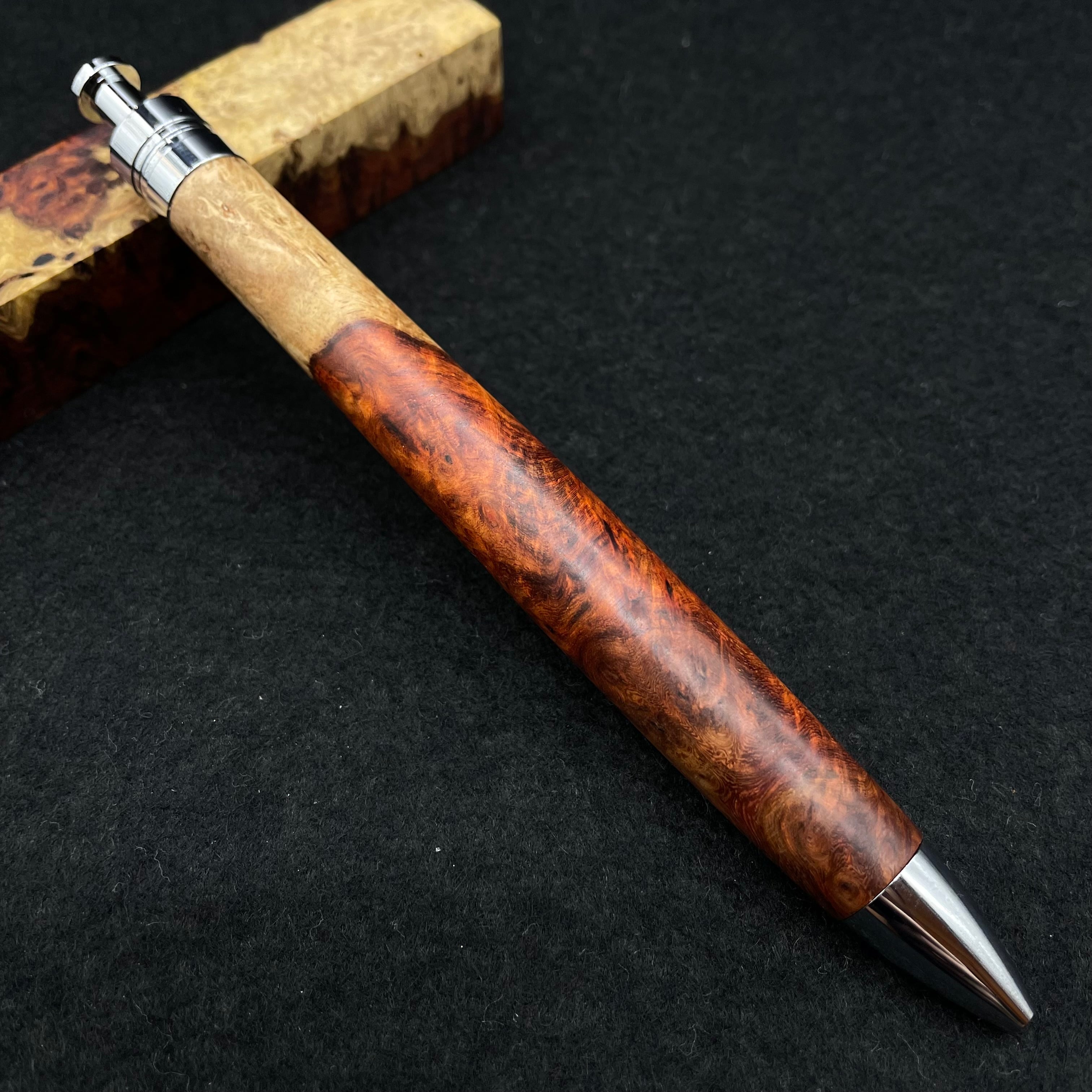 【極上杢 アンボイナバール 紅白】木軸ペン 三神シャープ1100 / 三神ボール1000