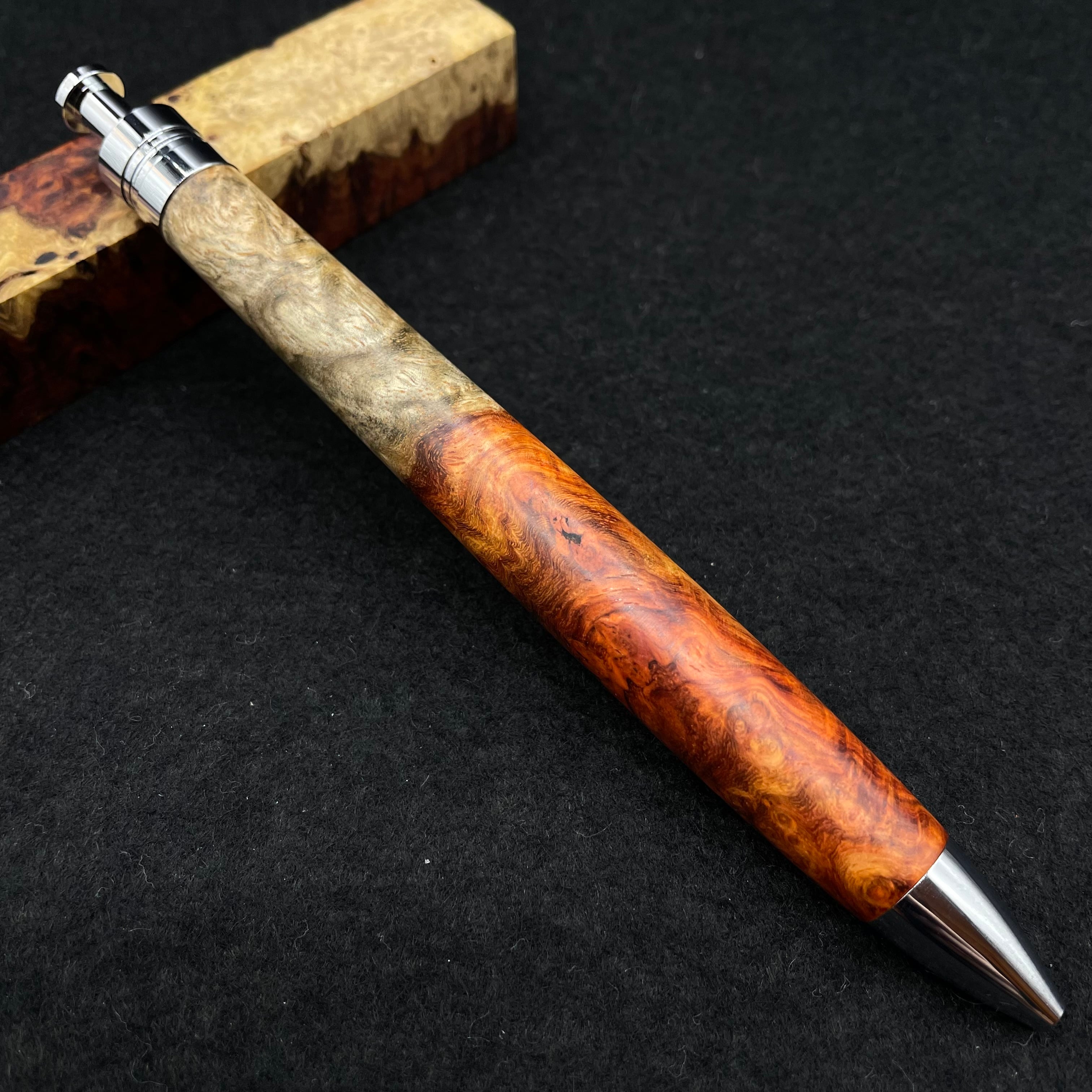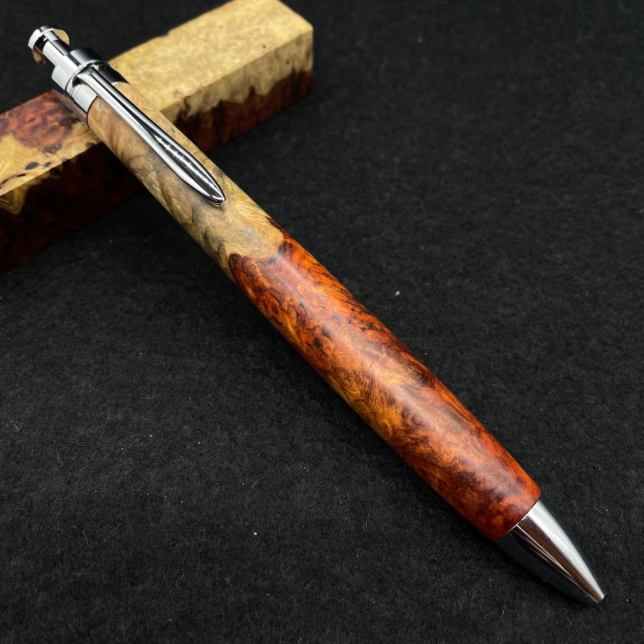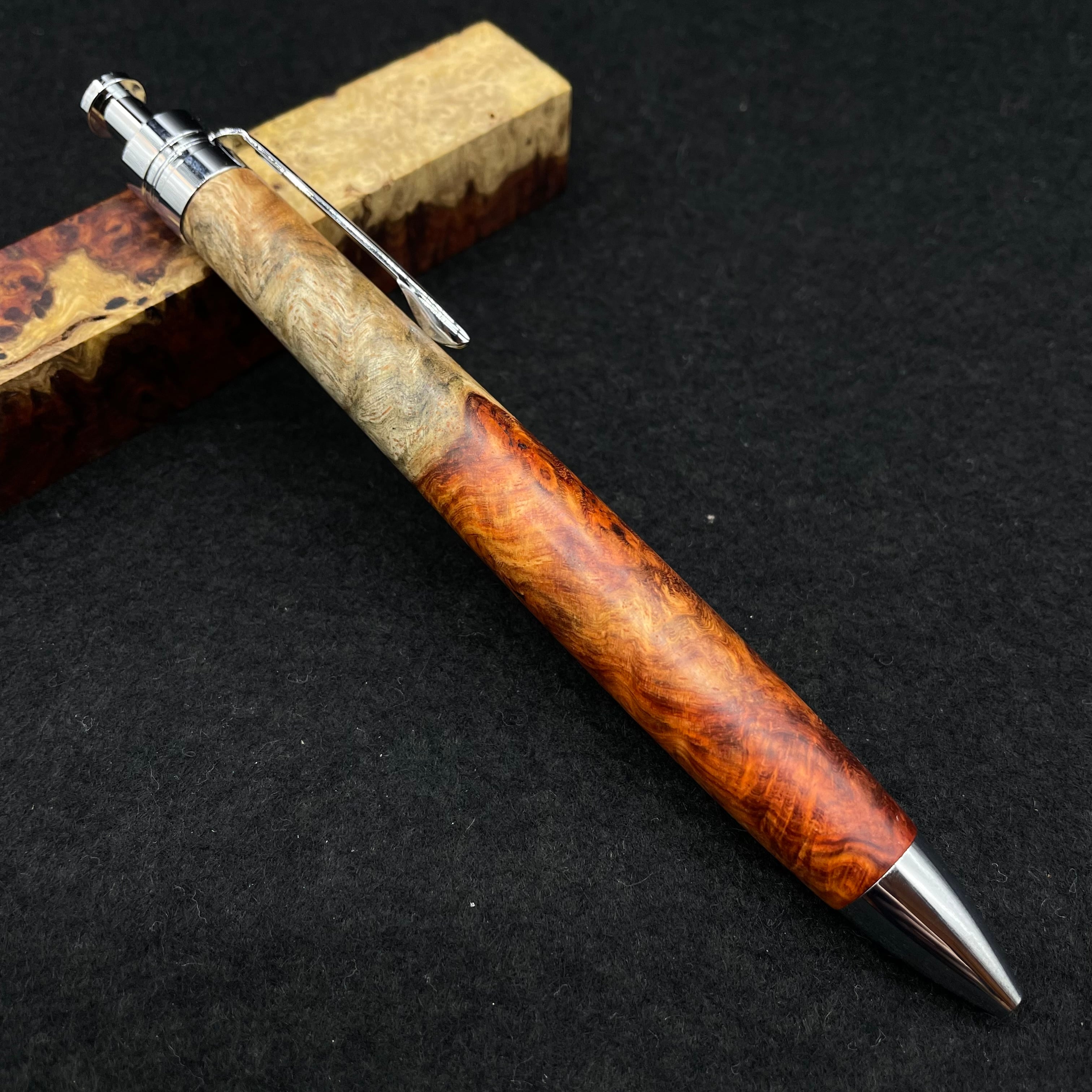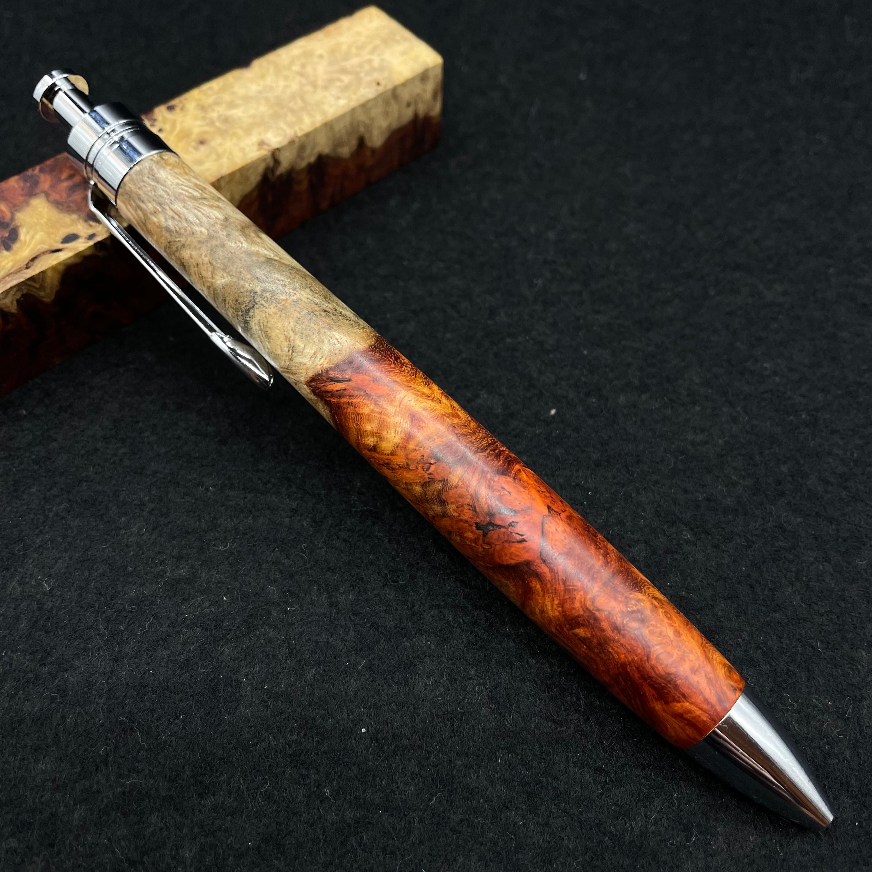 【極上杢 アンボイナバール 紅白】木軸ペン 三神シャープ1100 / 三神ボール1000