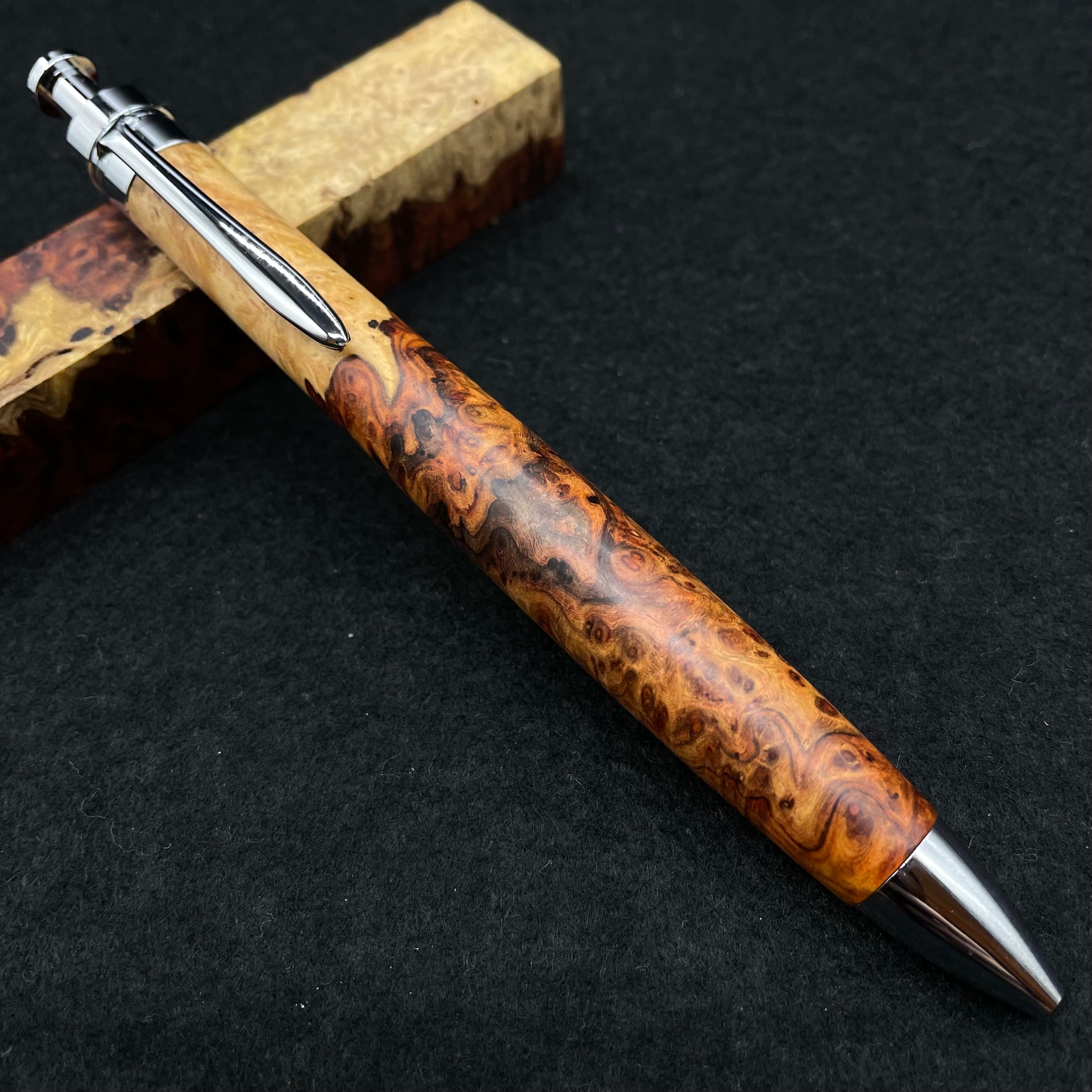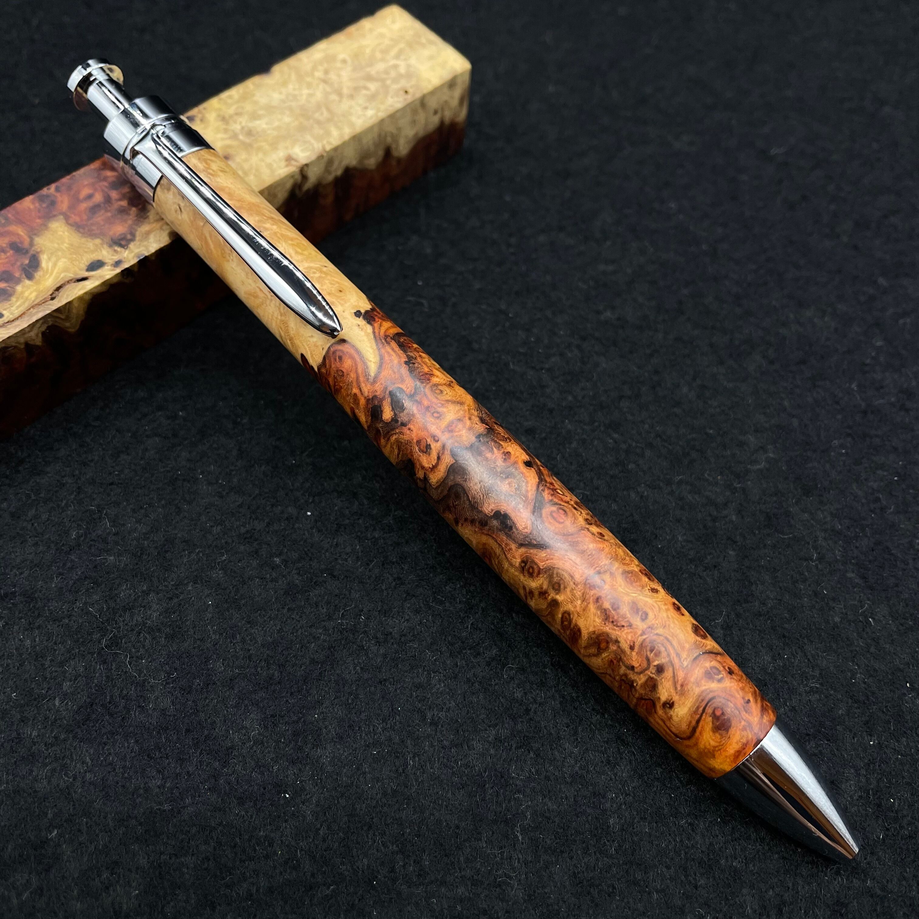 【極上杢 アンボイナバール 紅白】木軸ペン 三神シャープ1100 / 三神ボール1000