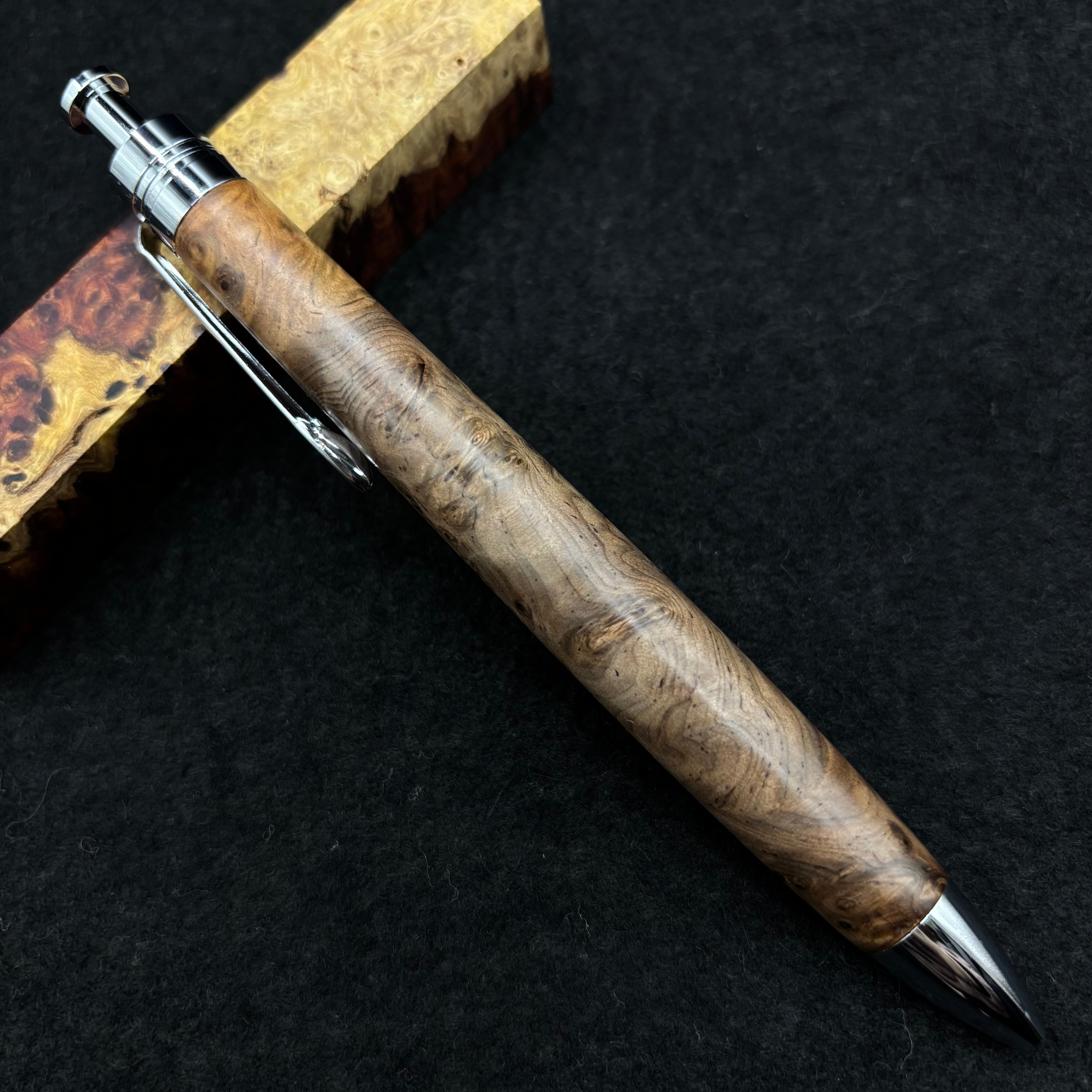 富士山のふもとで、主にインドネシアの良質な瘤材を使用し、木軸ペンをはじめとした木製小物を製作しております。