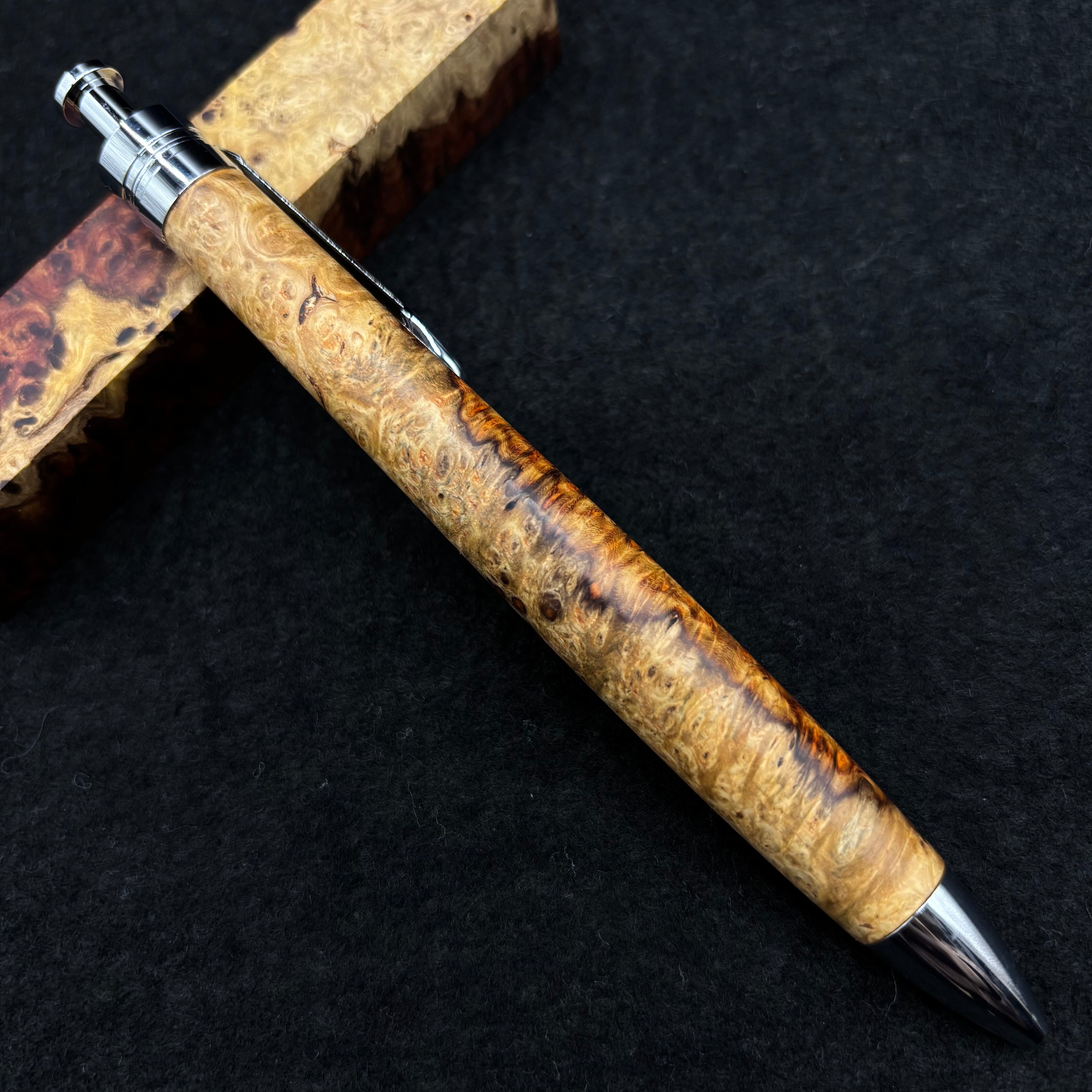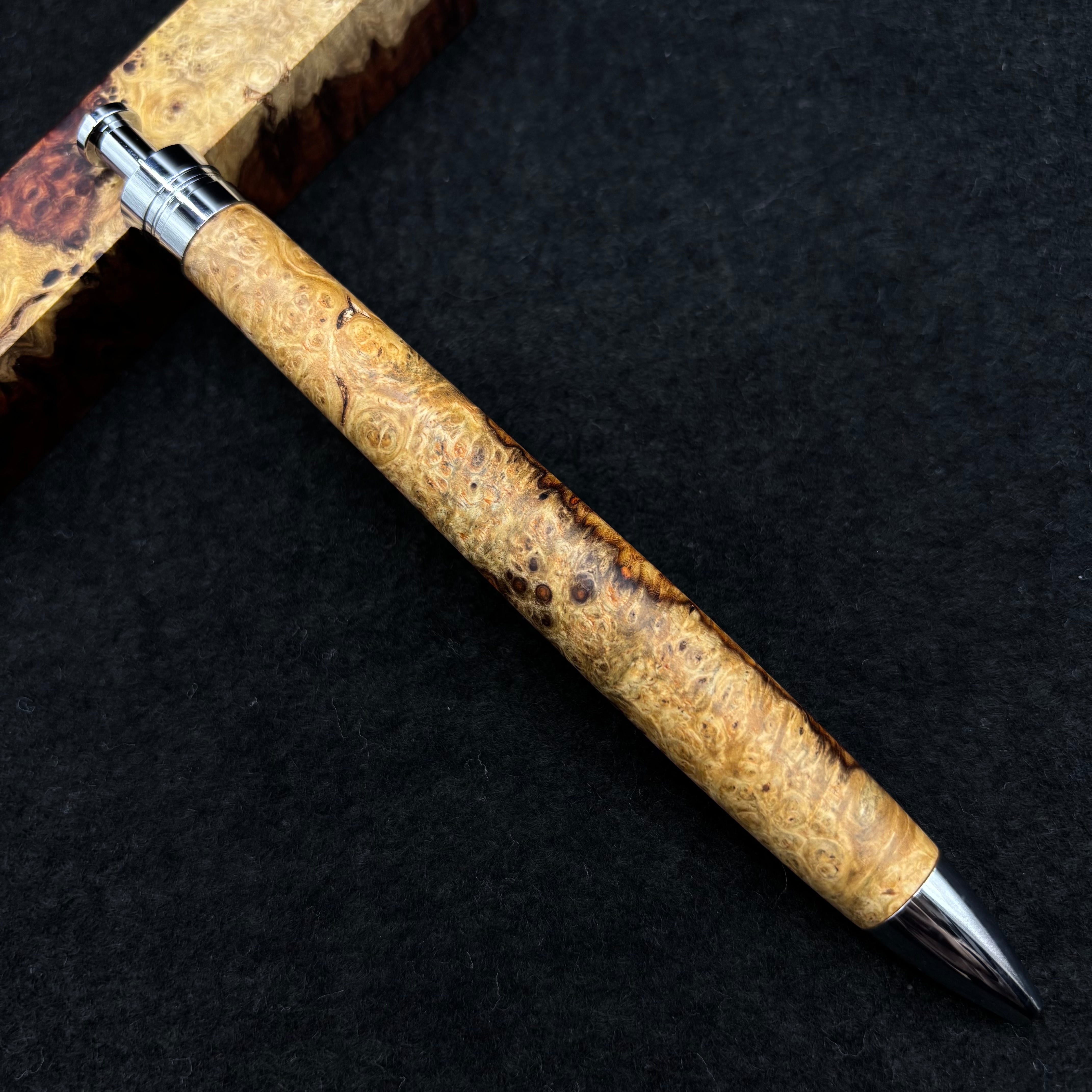 【極上杢 アンボイナバール 紅白】木軸ペン 三神シャープ1100 / 三神ボール1000 節あり