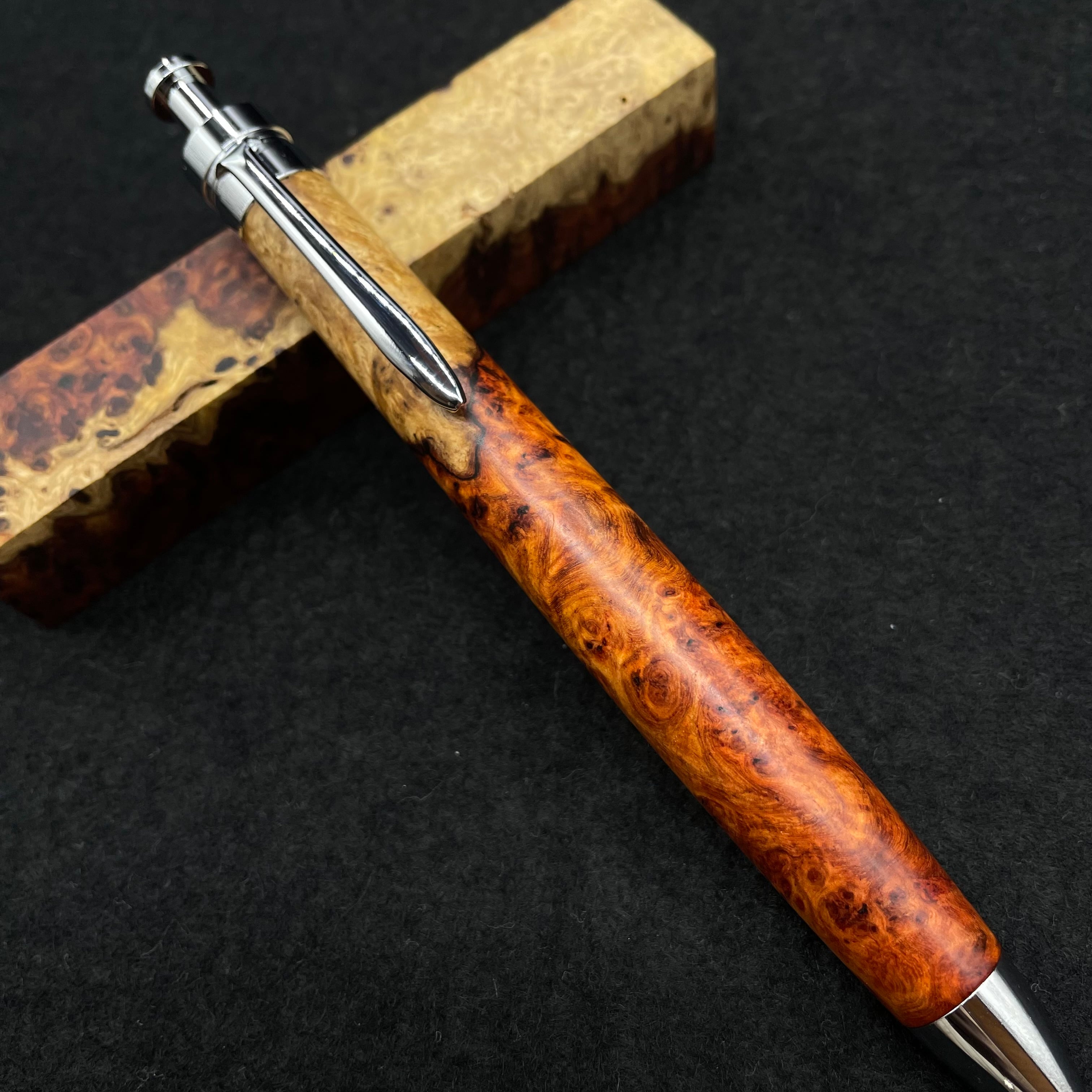 【極上杢 アンボイナバール 紅白】木軸ペン 三神シャープ1100 / 三神ボール1000