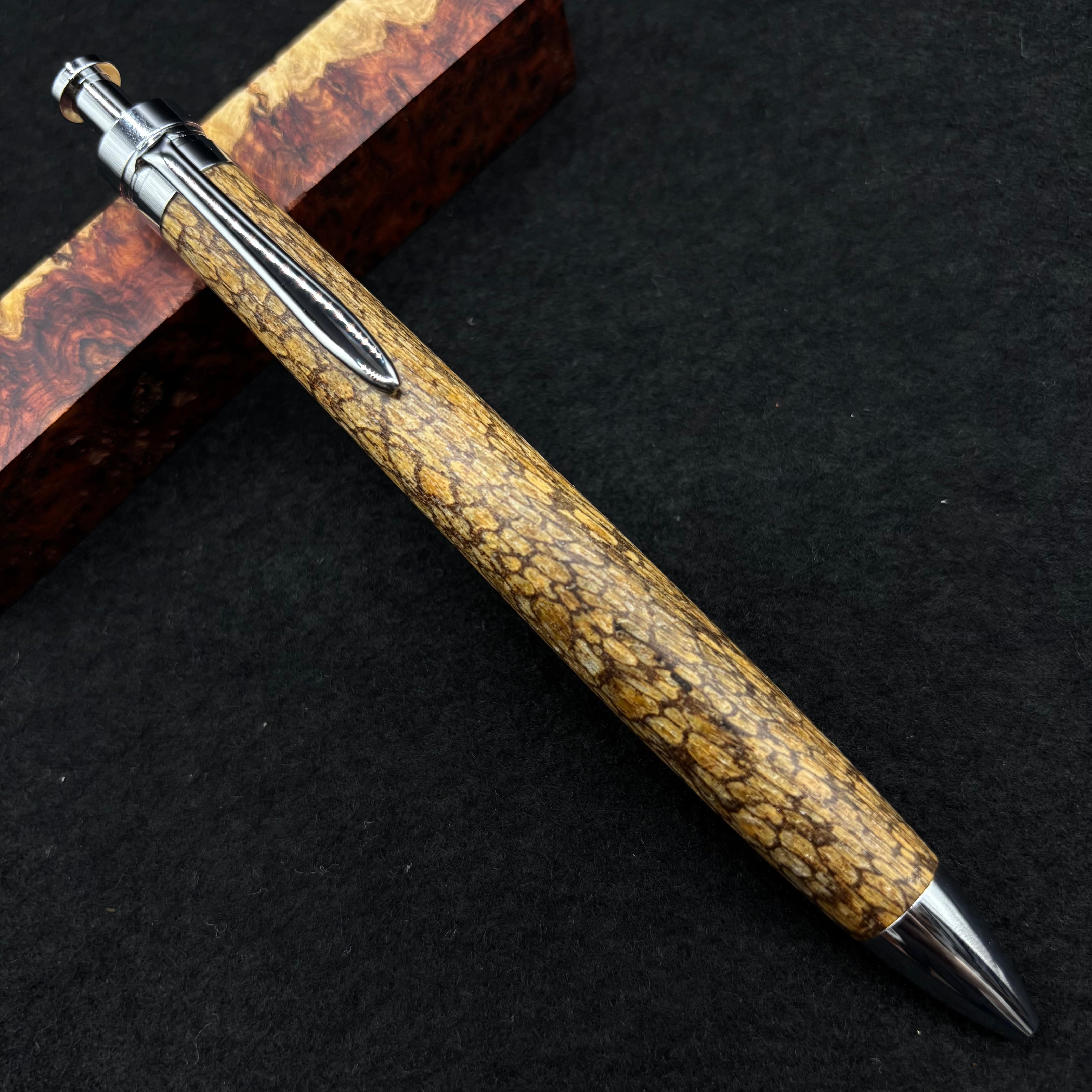 富士山のふもとで、主にインドネシアの良質な瘤材を使用し、木軸ペンをはじめとした木製小物を製作しております。