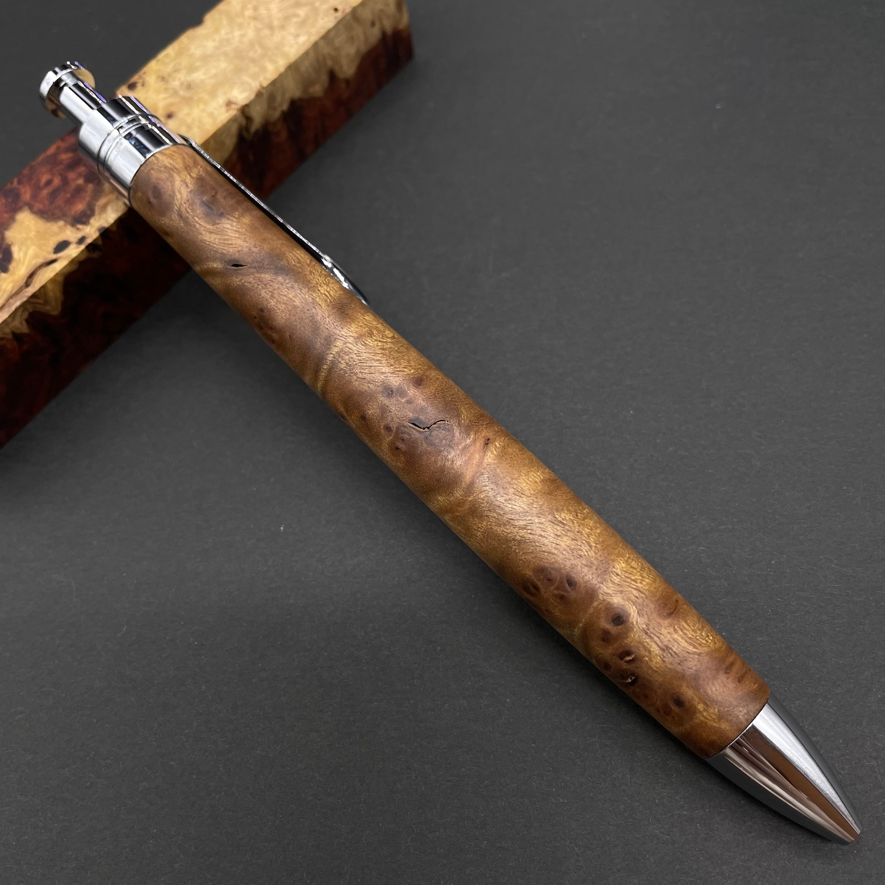 富士山のふもとで、主にインドネシアの良質な瘤材を使用し、木軸ペンをはじめとした木製小物を製作しております。