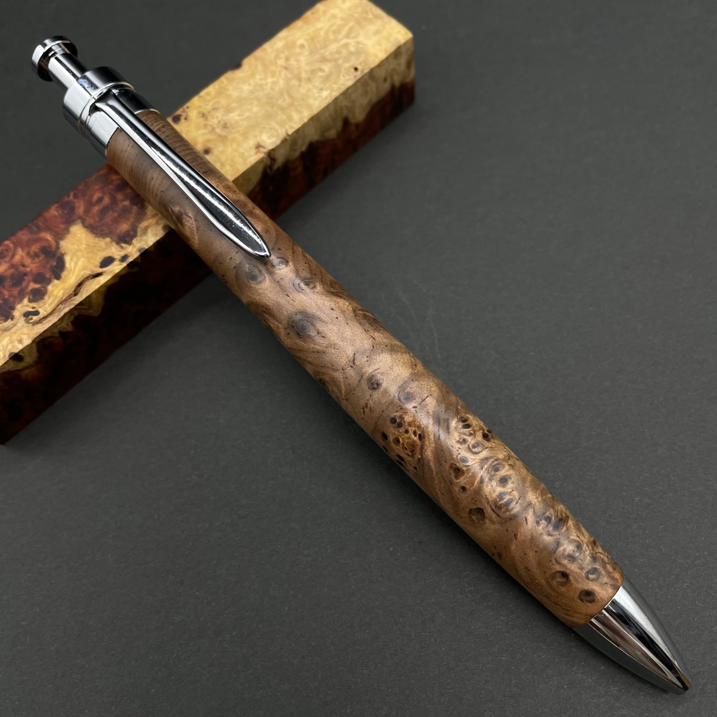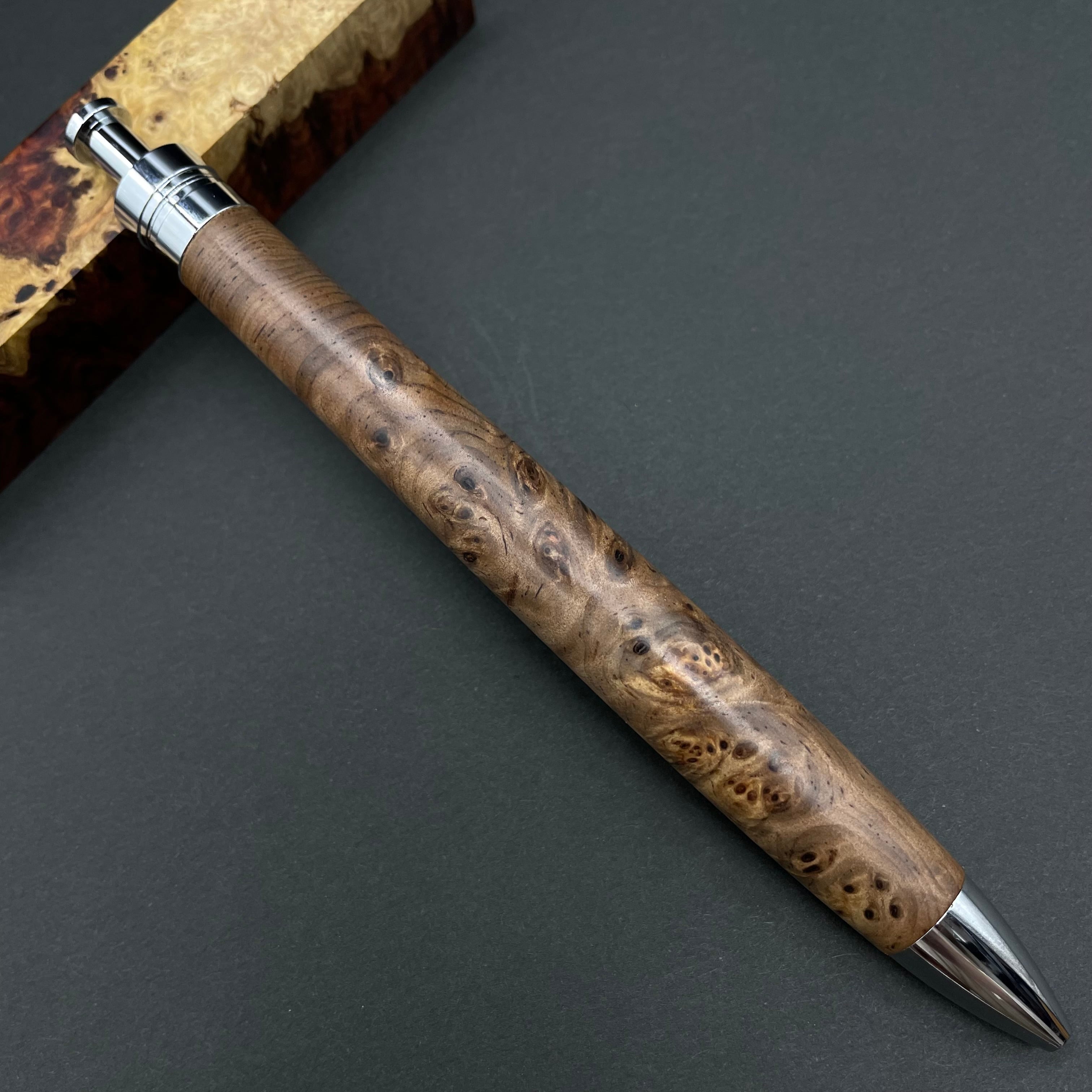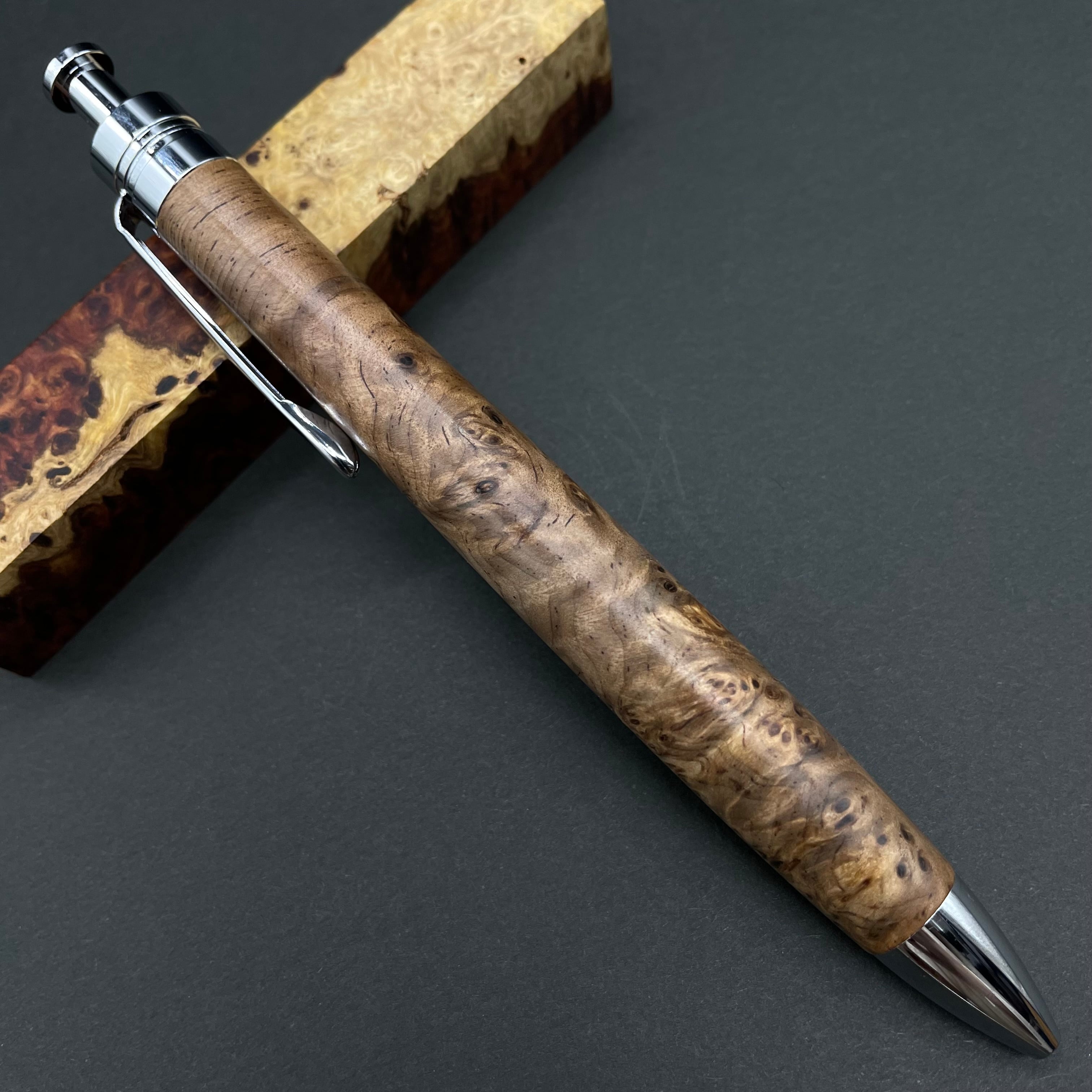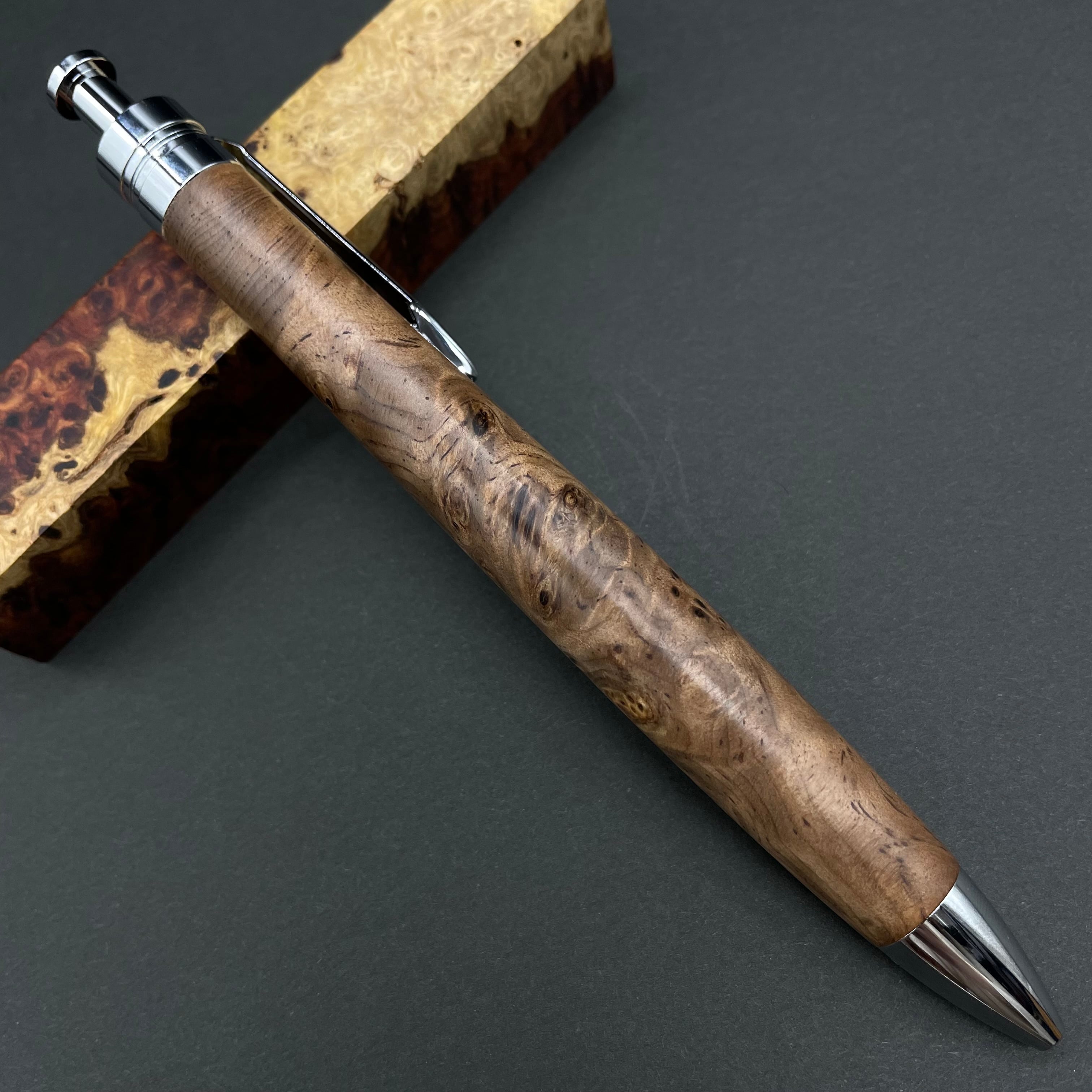 富士山のふもとで、主にインドネシアの良質な瘤材を使用し、木軸ペンをはじめとした木製小物を製作しております。