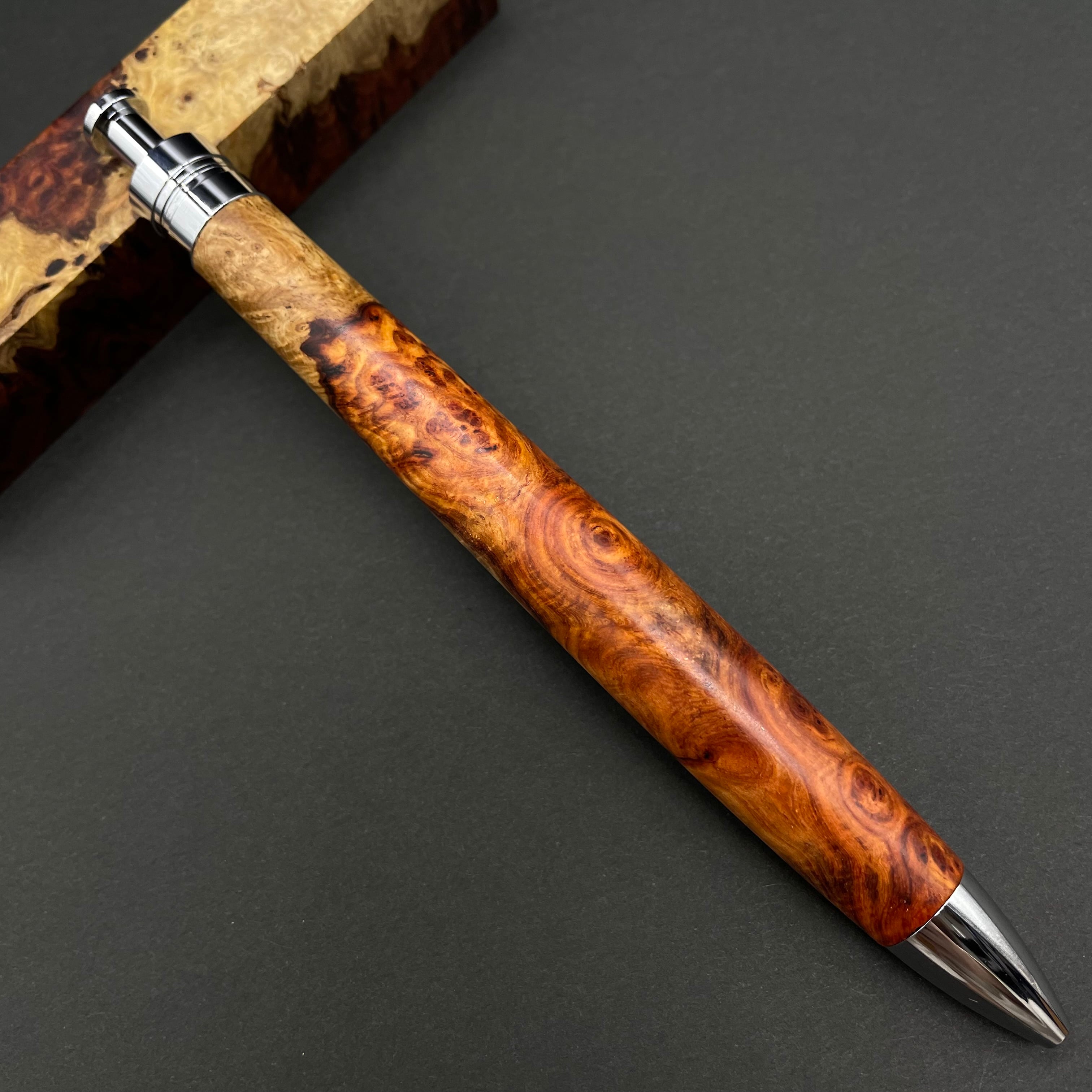 【極上杢 アンボイナバール 紅白】木軸ペン 三神シャープ1100 / 三神ボール1000