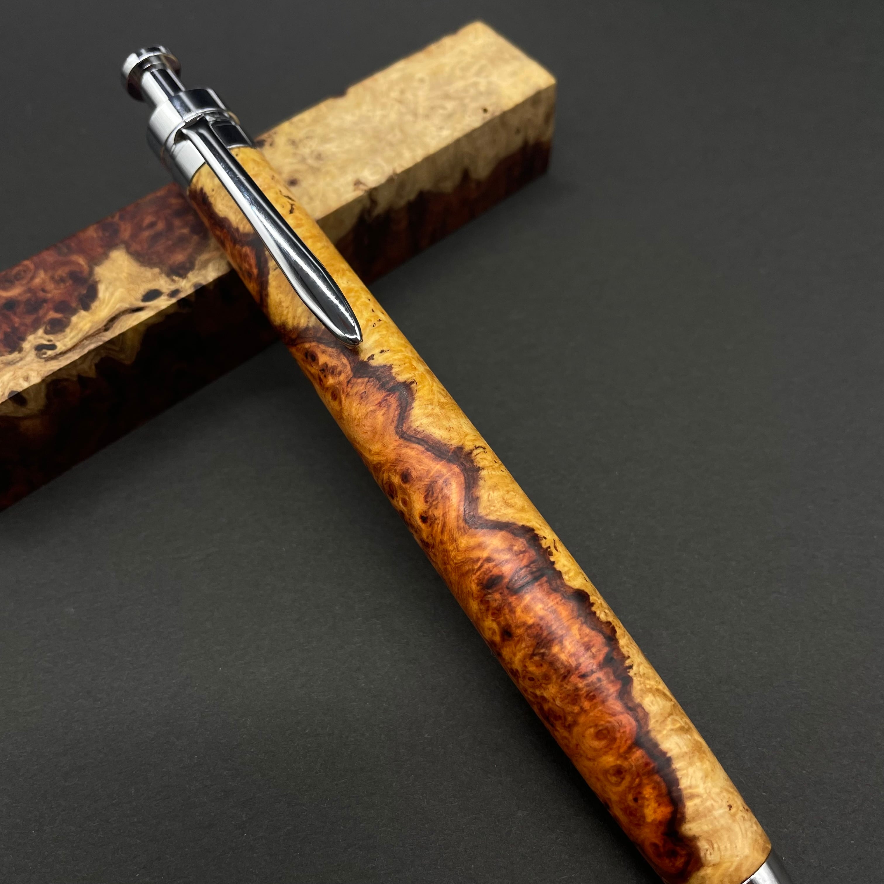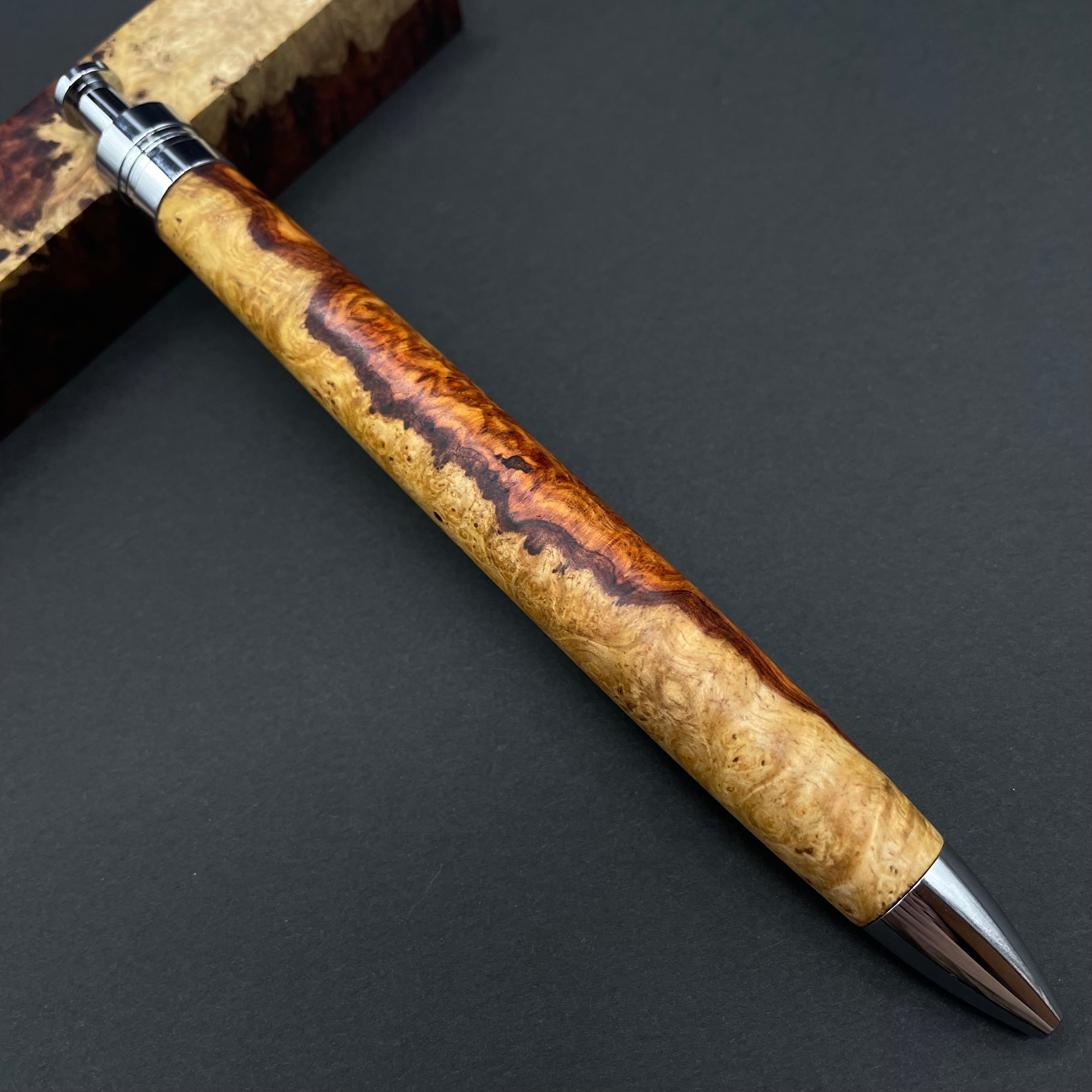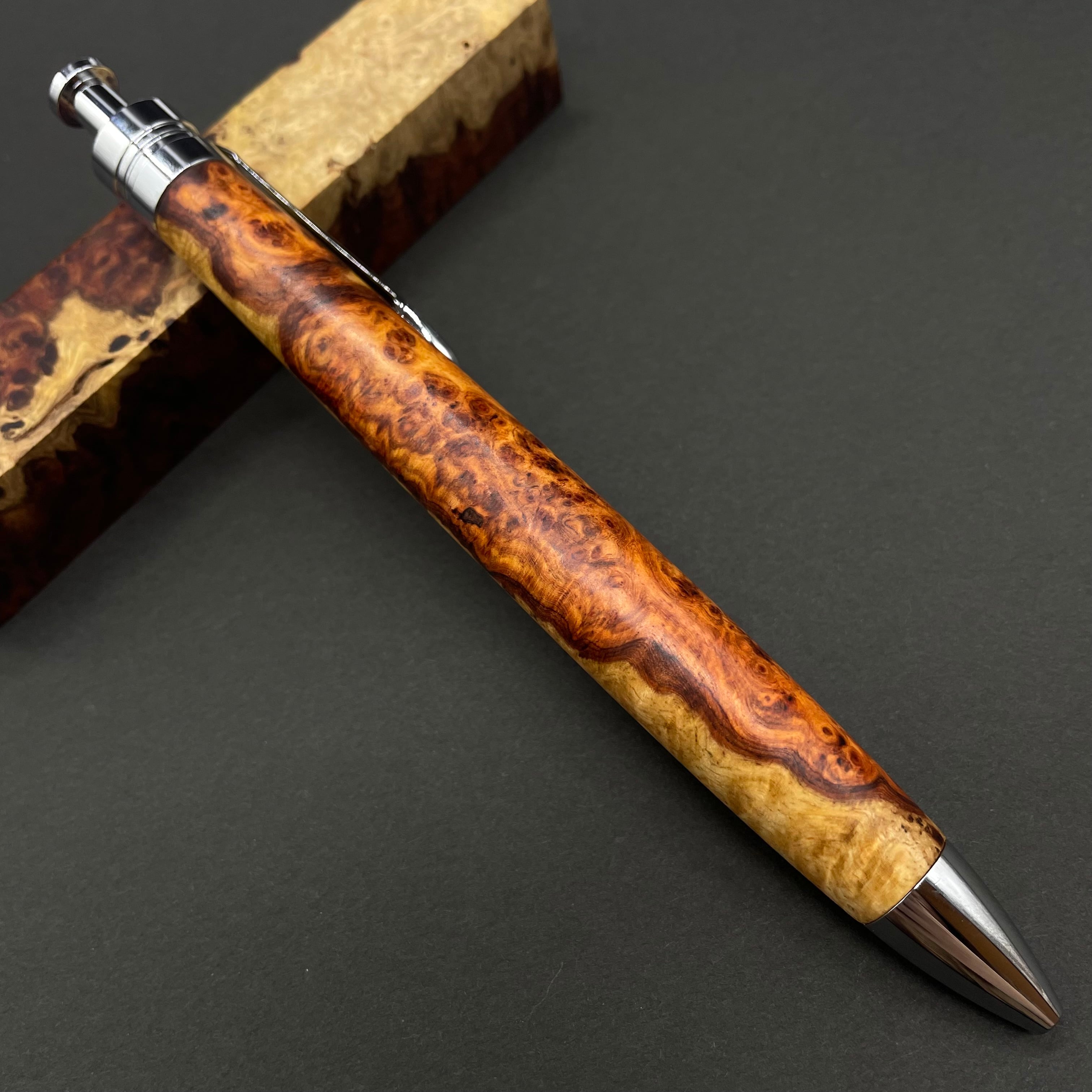 【極上杢 アンボイナバール 紅白】木軸ペン 三神シャープ1100 / 三神ボール1000