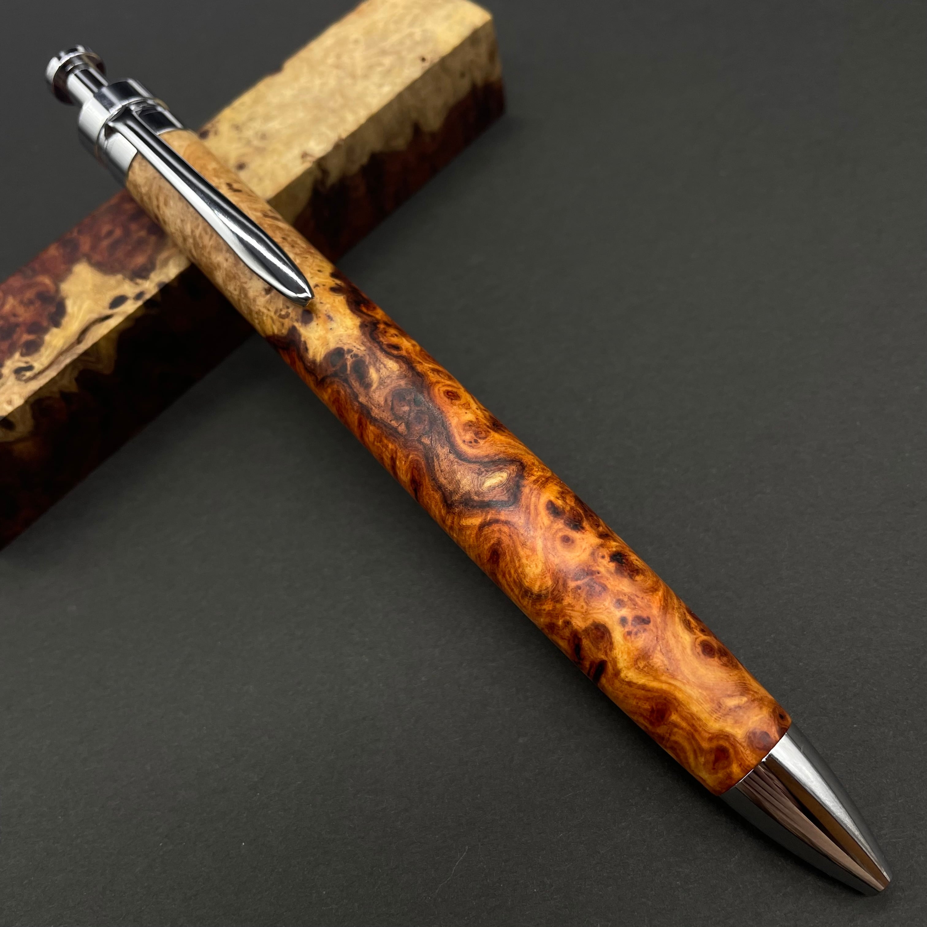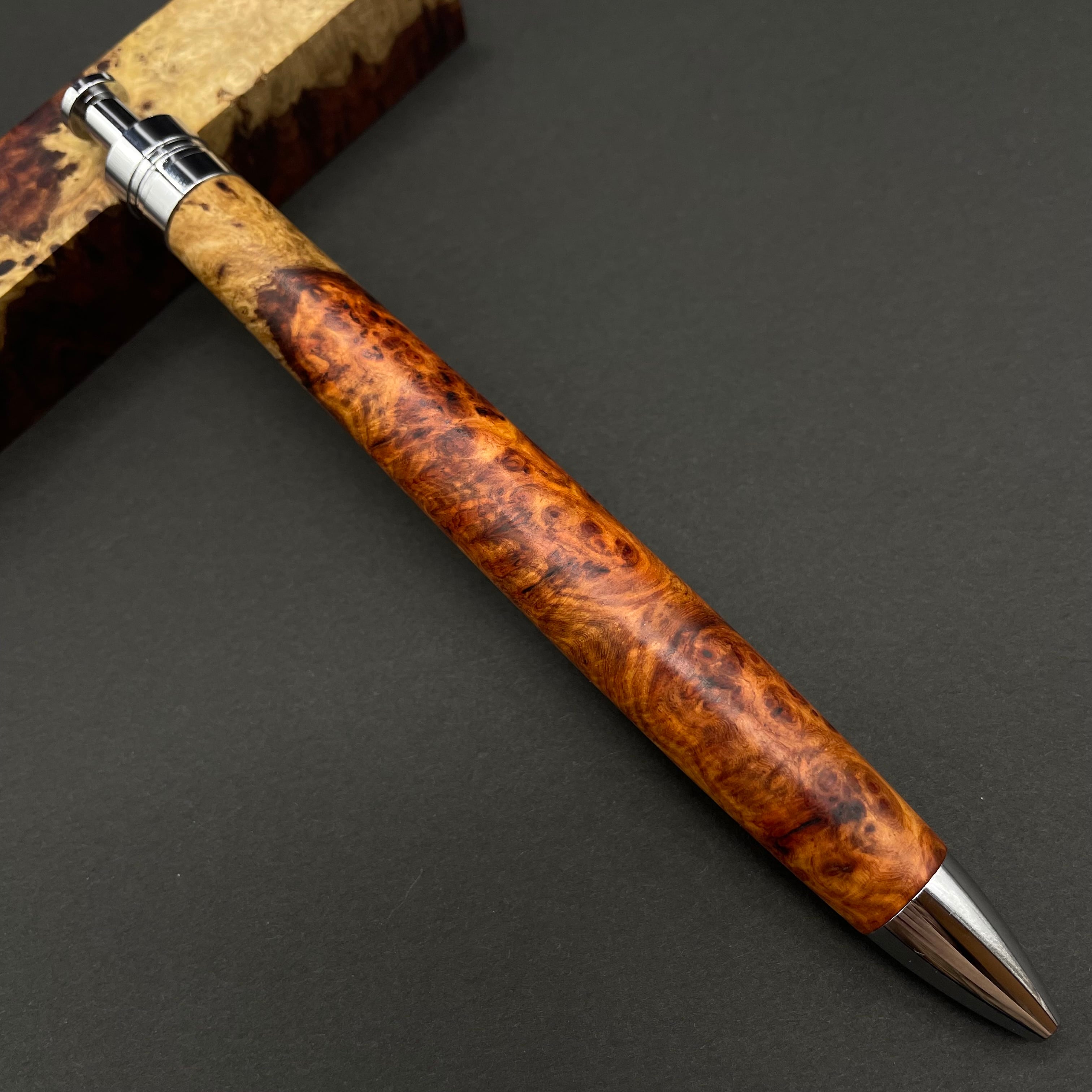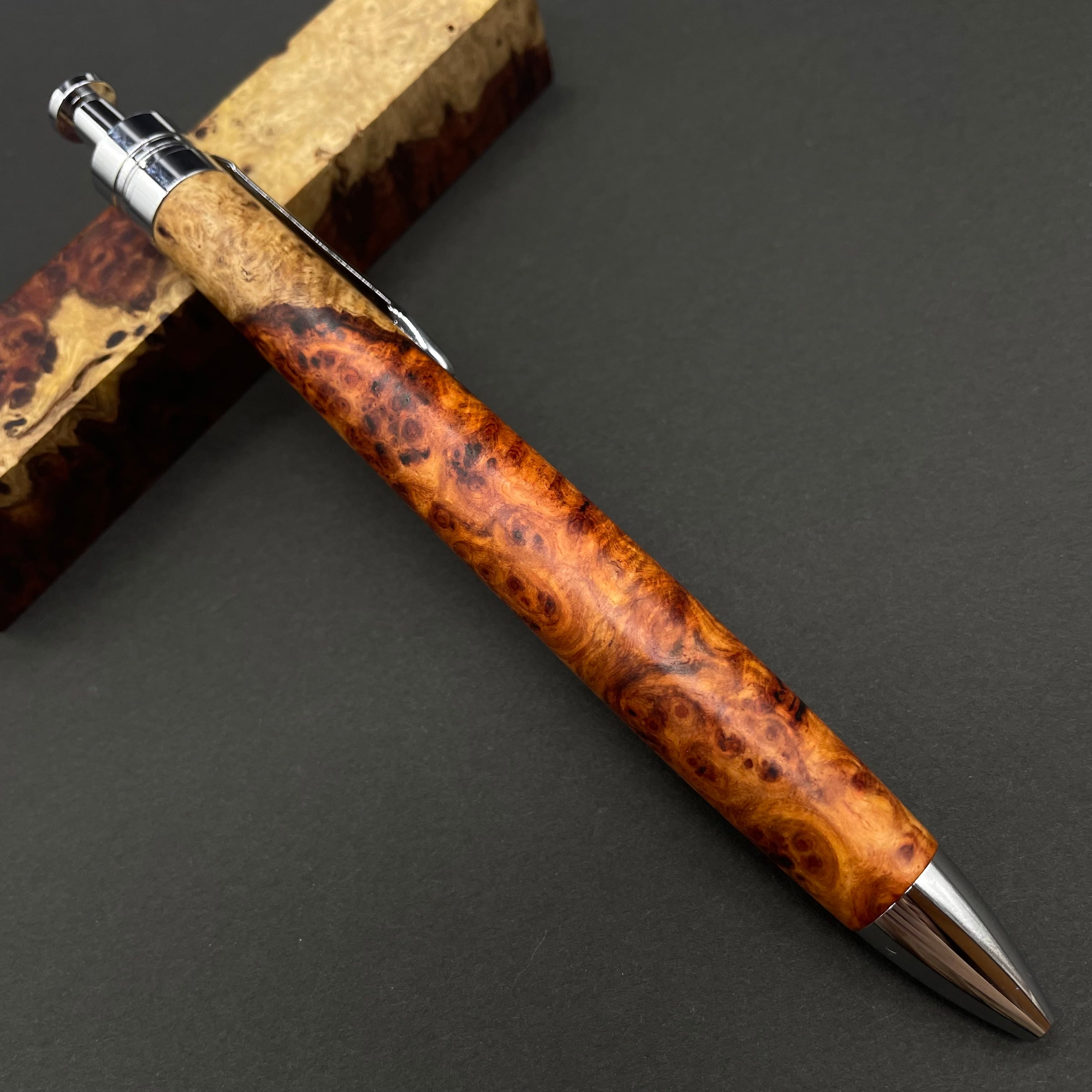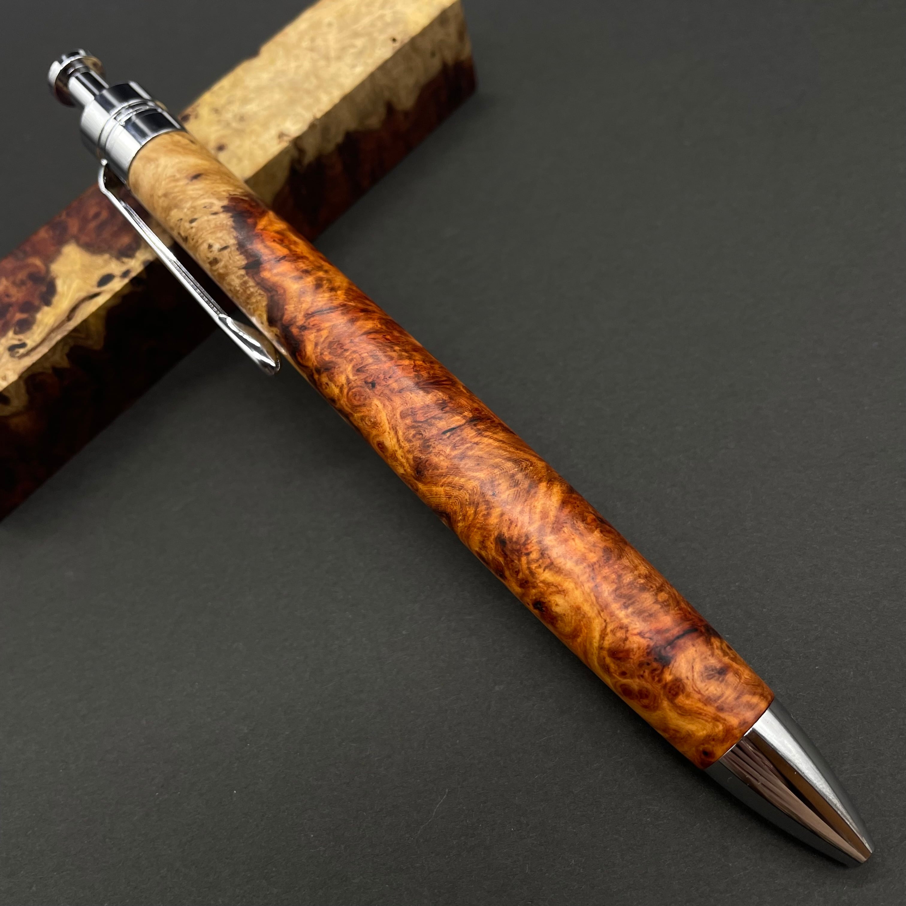 【極上杢 アンボイナバール 紅白】木軸ペン 三神シャープ1100 / 三神ボール1000