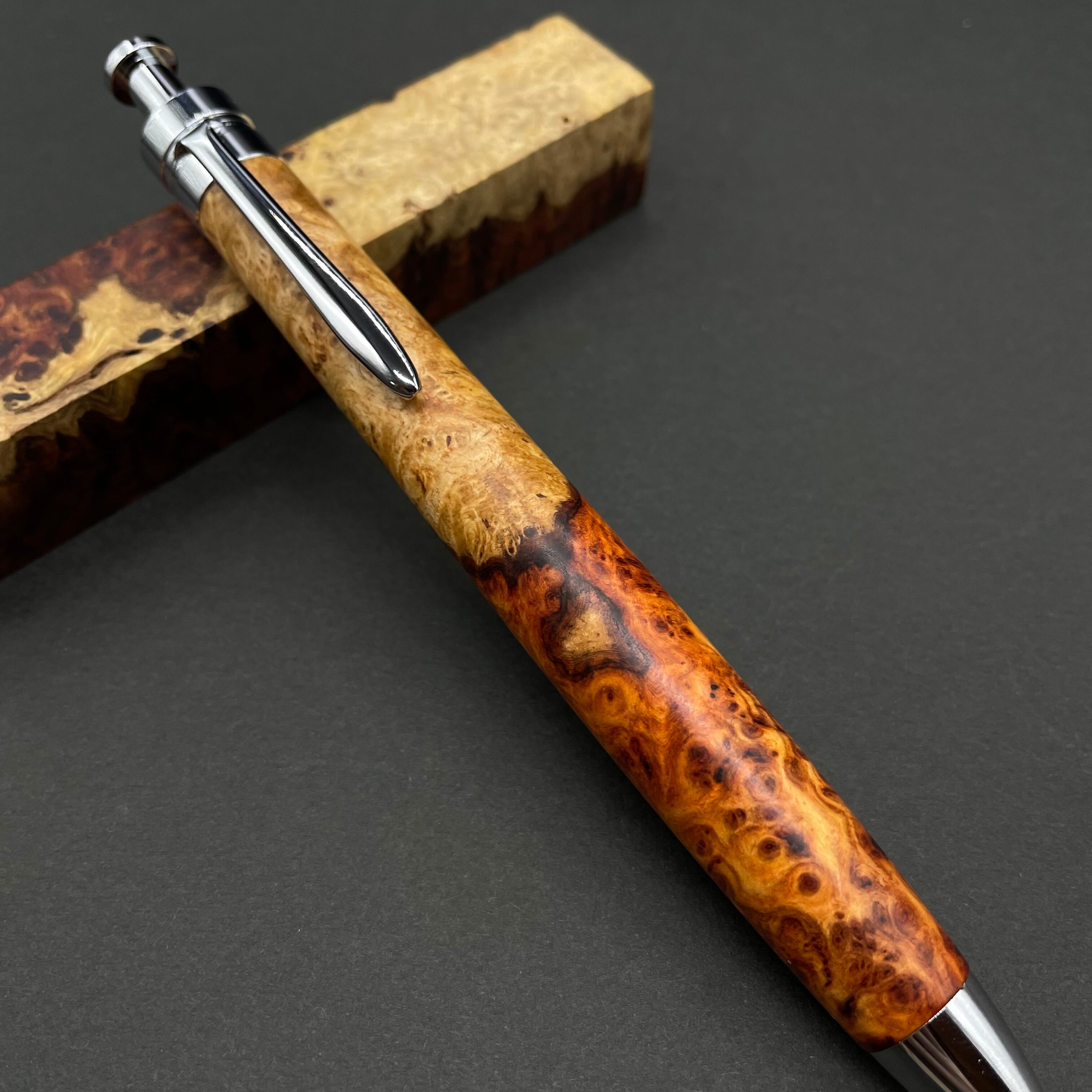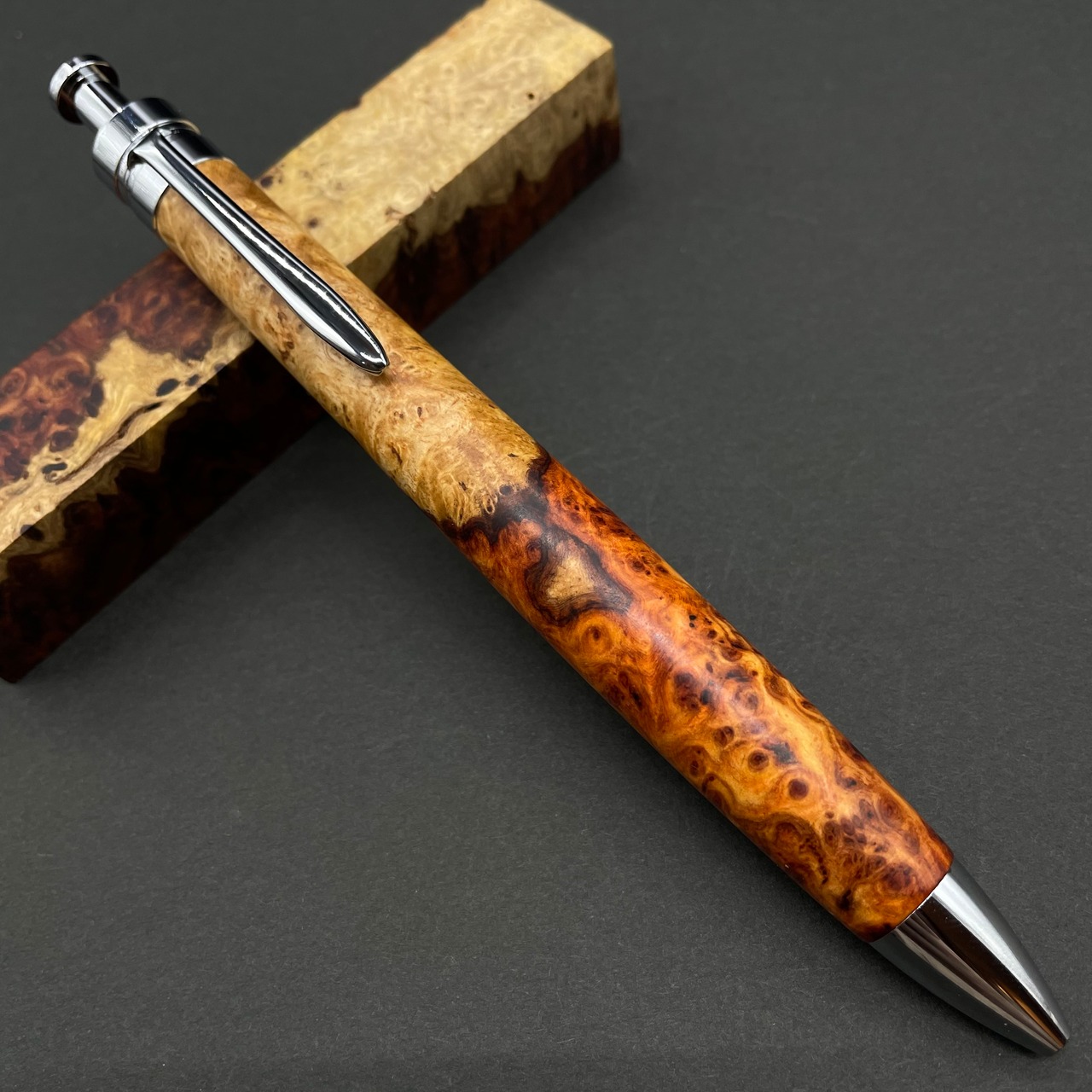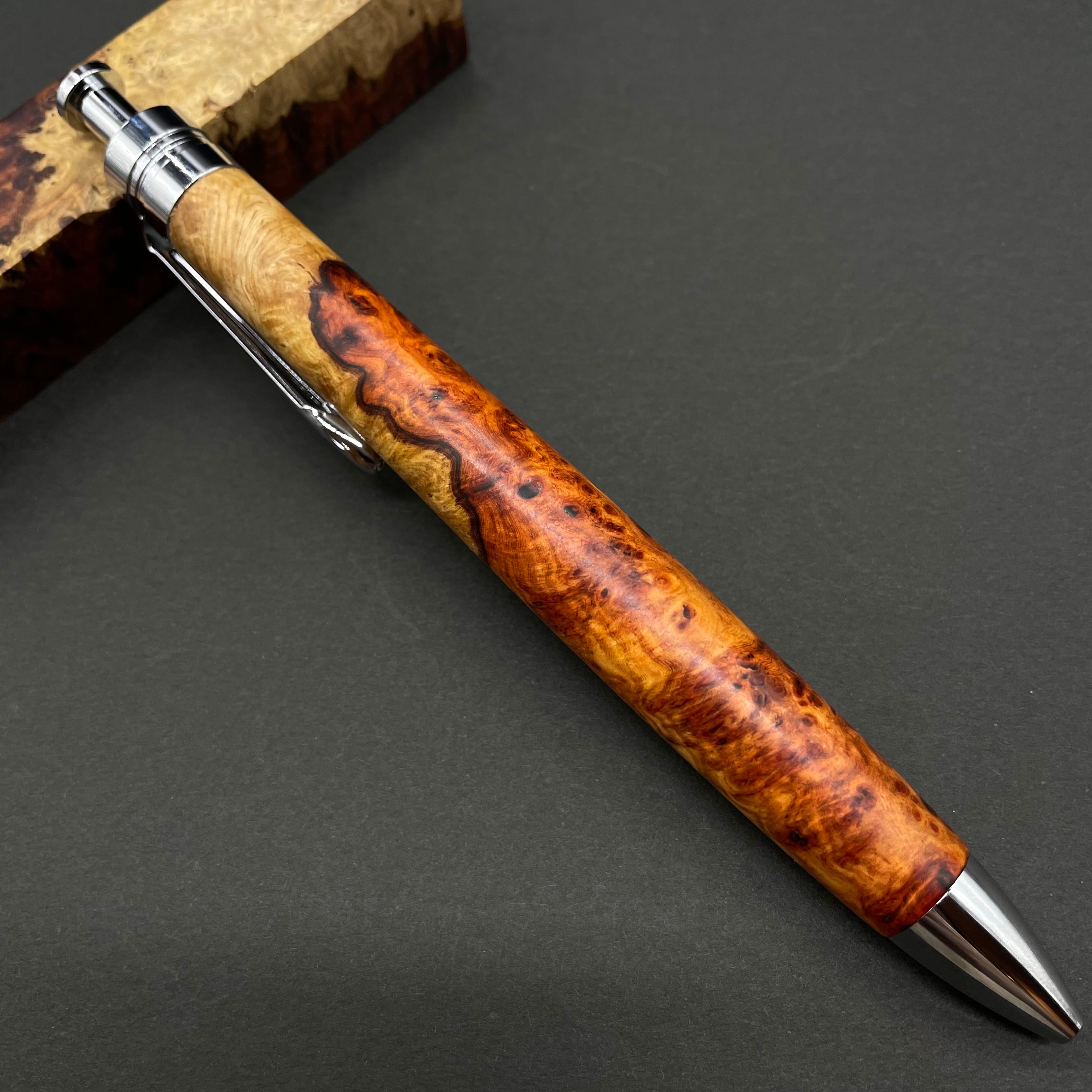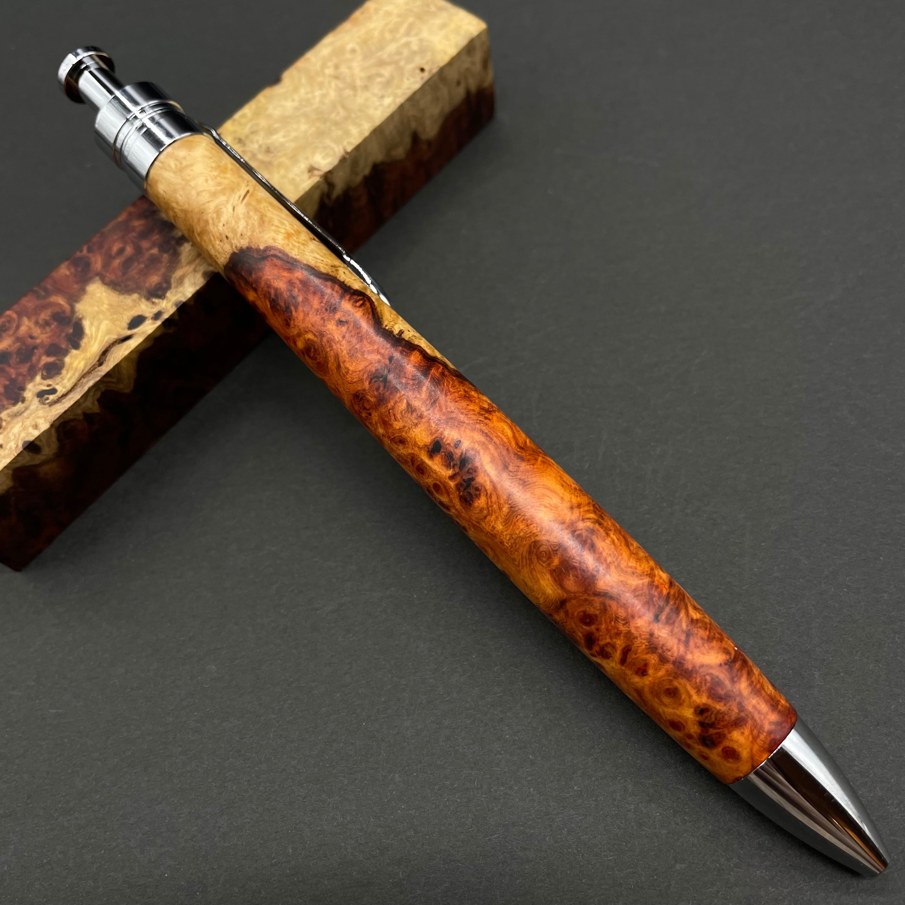 【極上杢 アンボイナバール 紅白】木軸ペン 三神シャープ1100 / 三神ボール1000