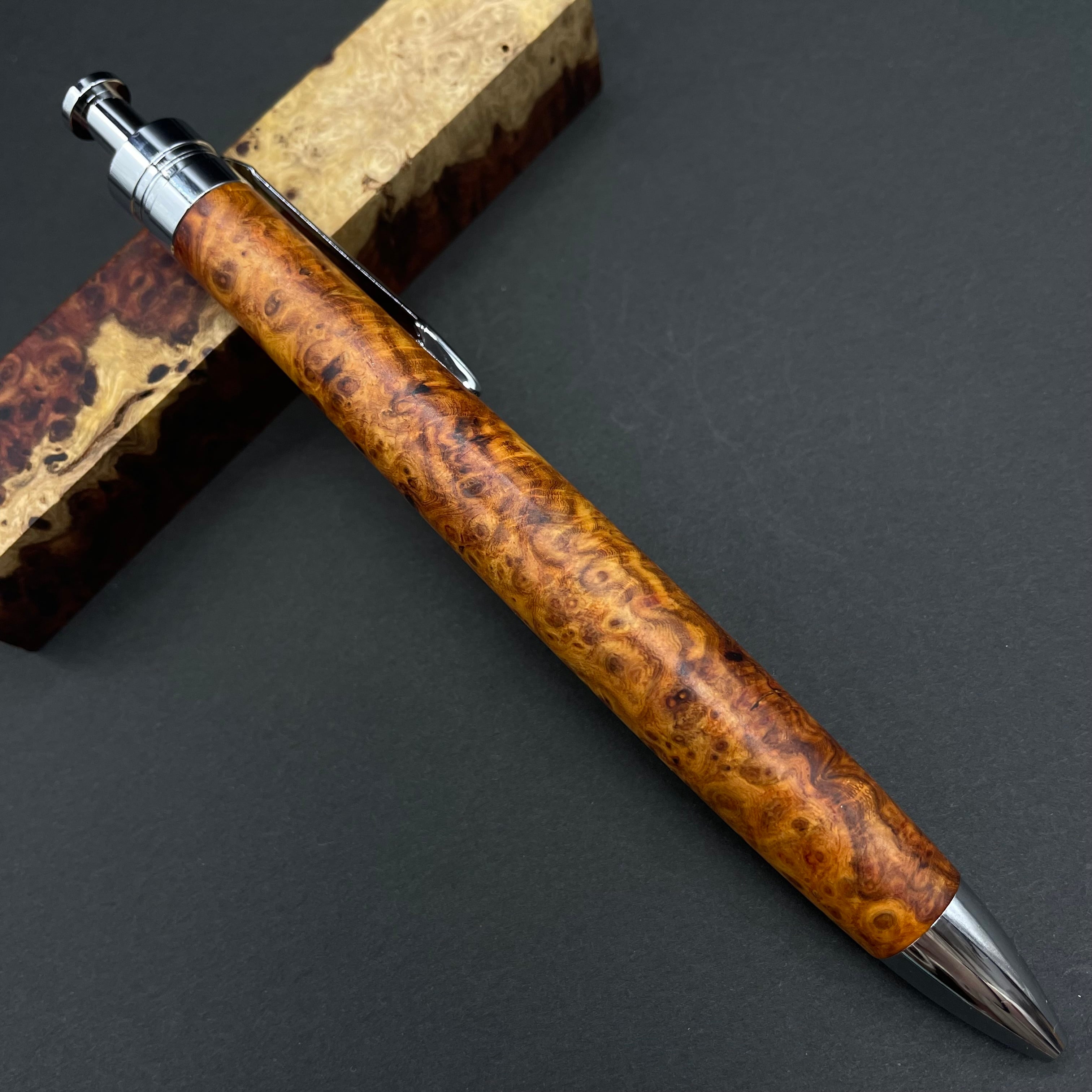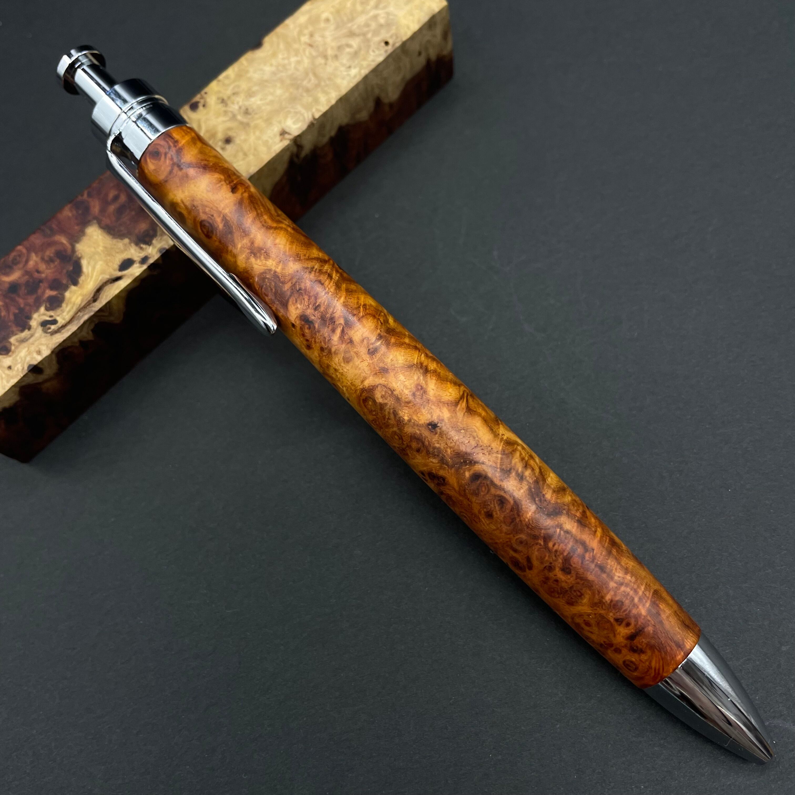 【極上杢 アンボイナバール】木軸ペン 三神シャープ1100 / 三神ボール1000
