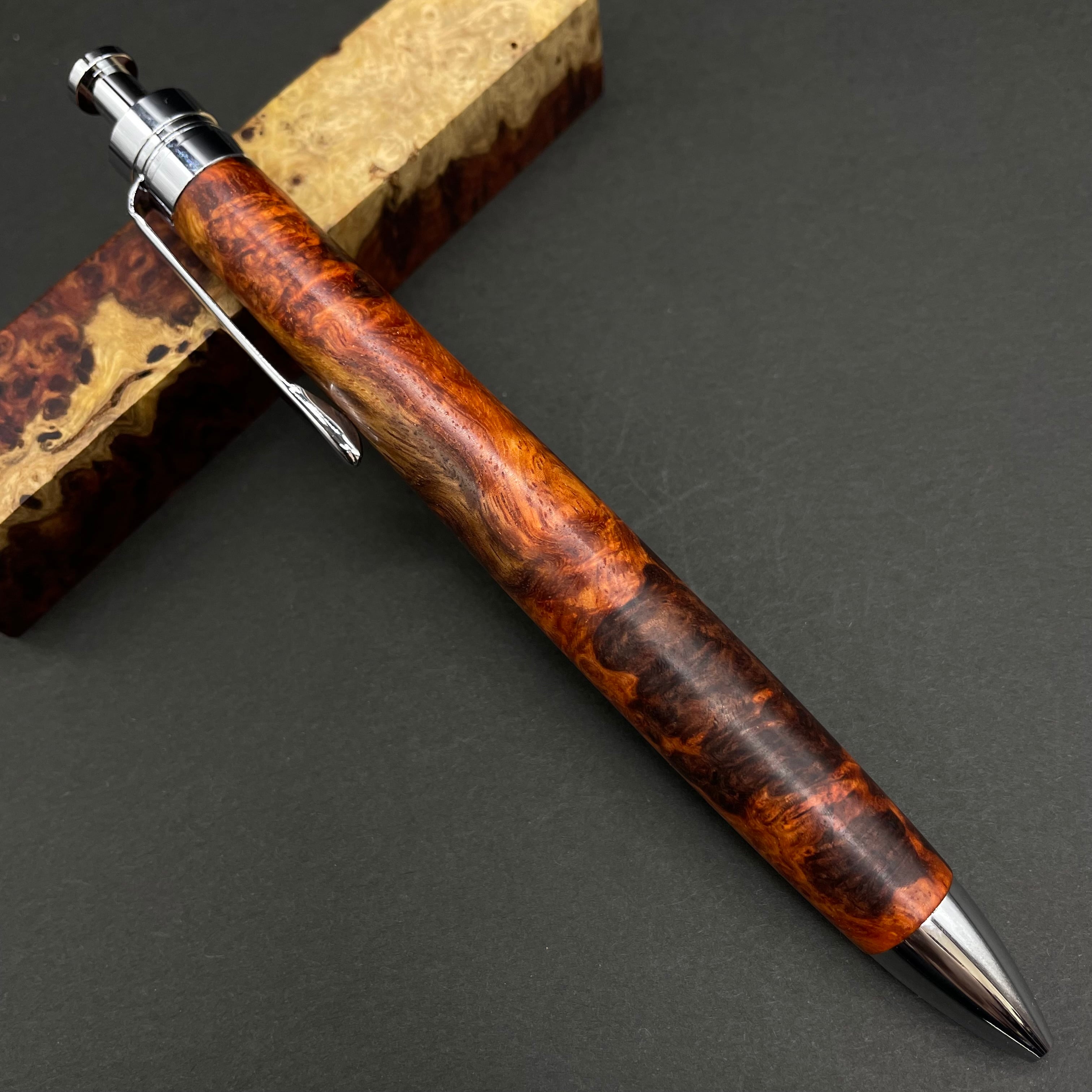 【極上杢 アンボイナバール】木軸ペン 三神シャープ1100 / 三神ボール1000