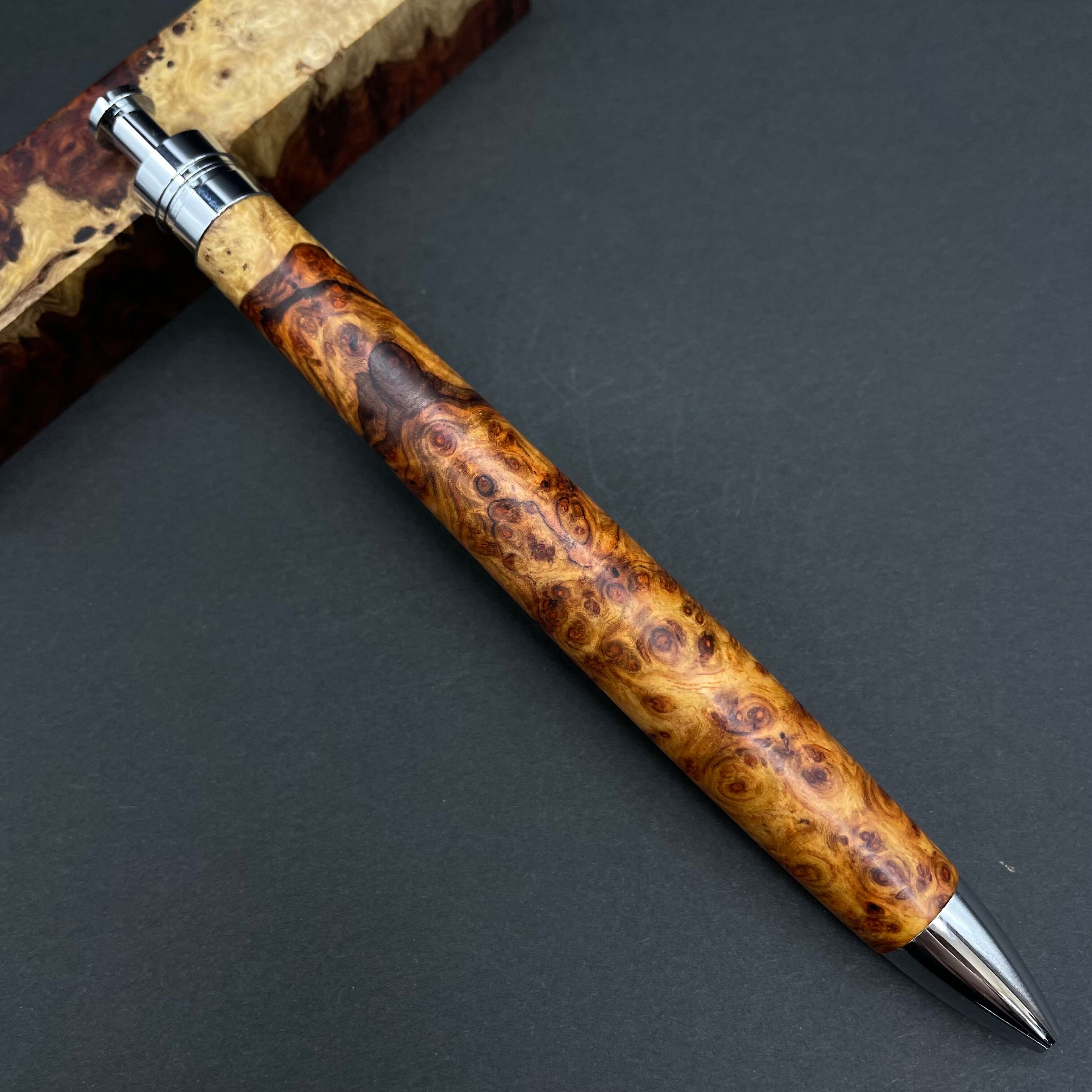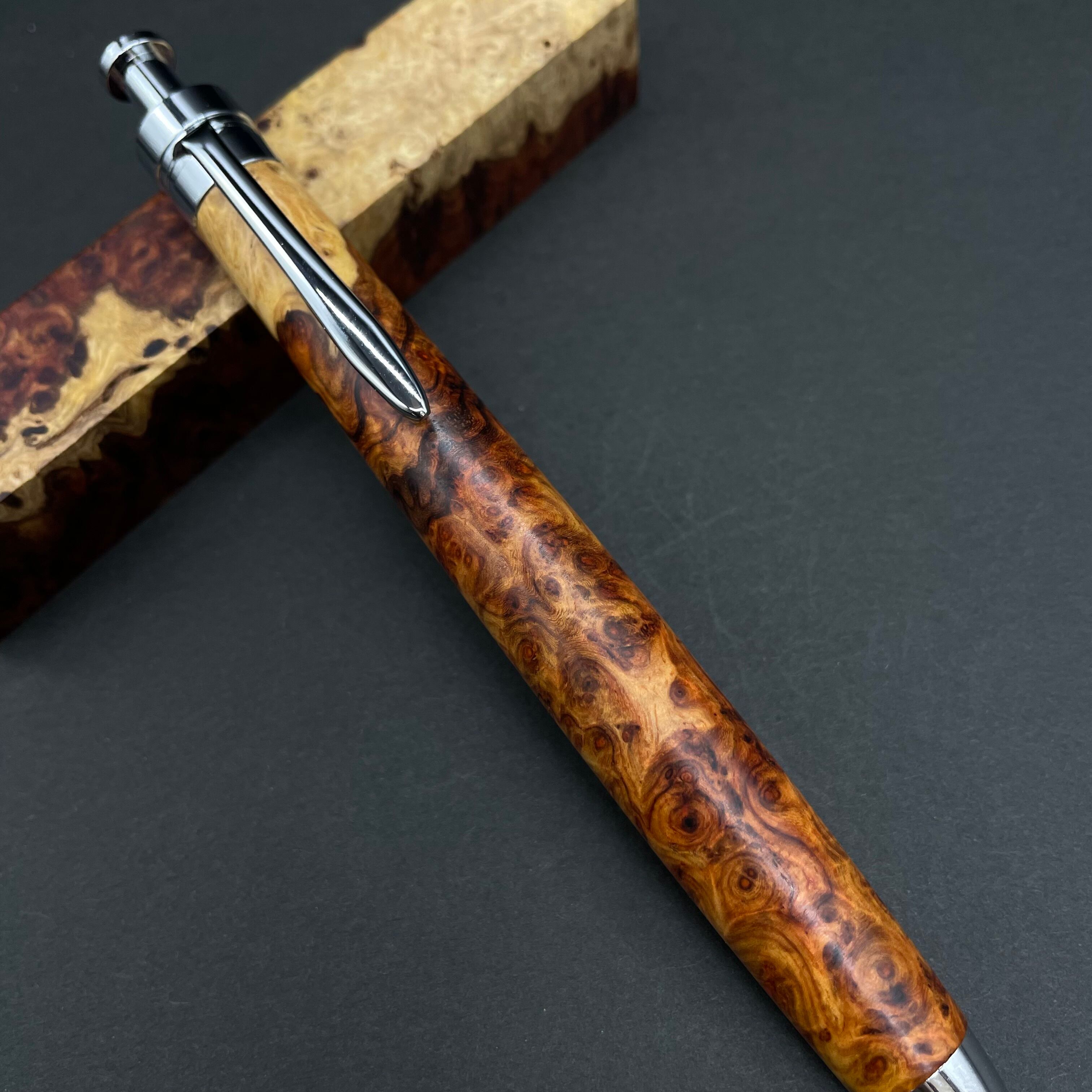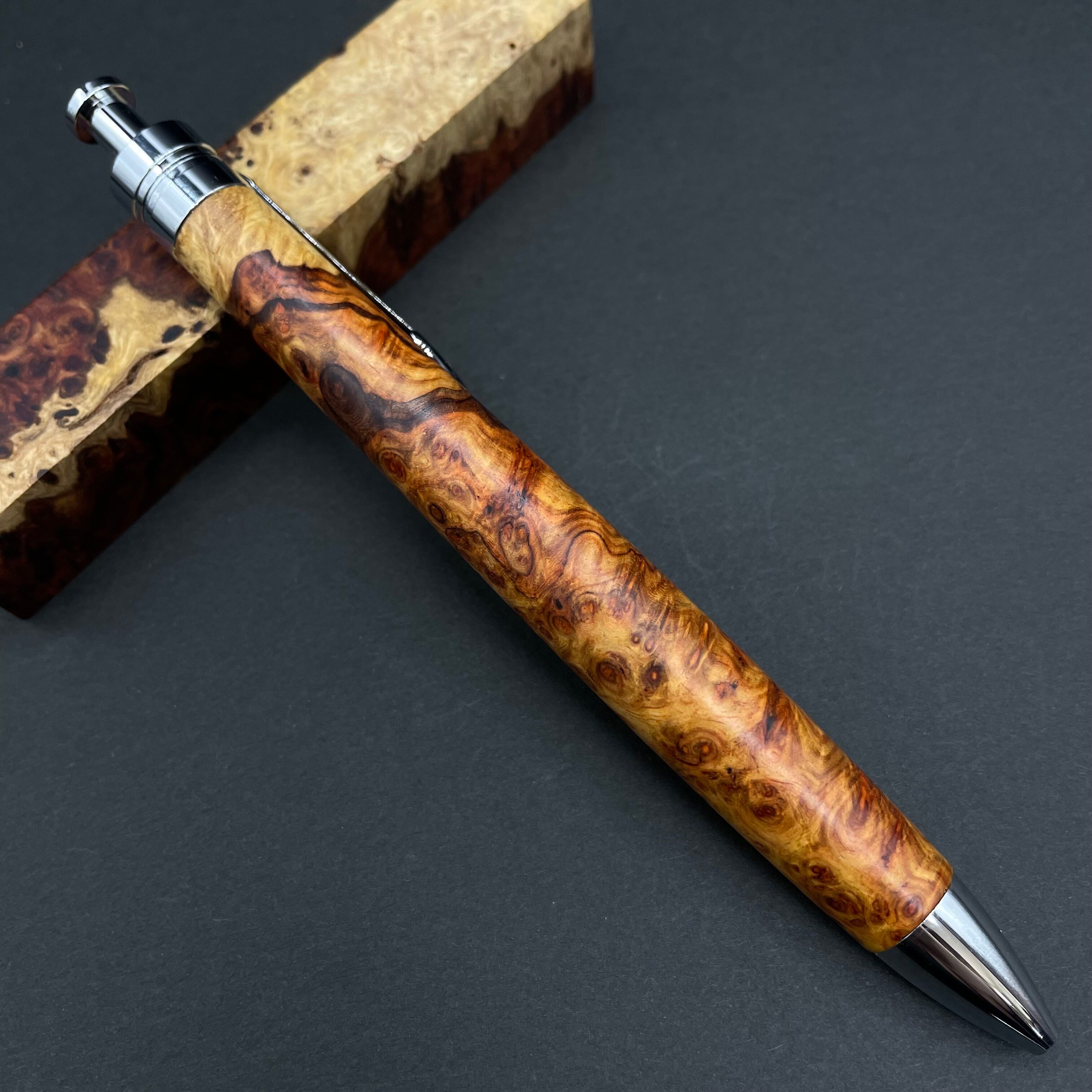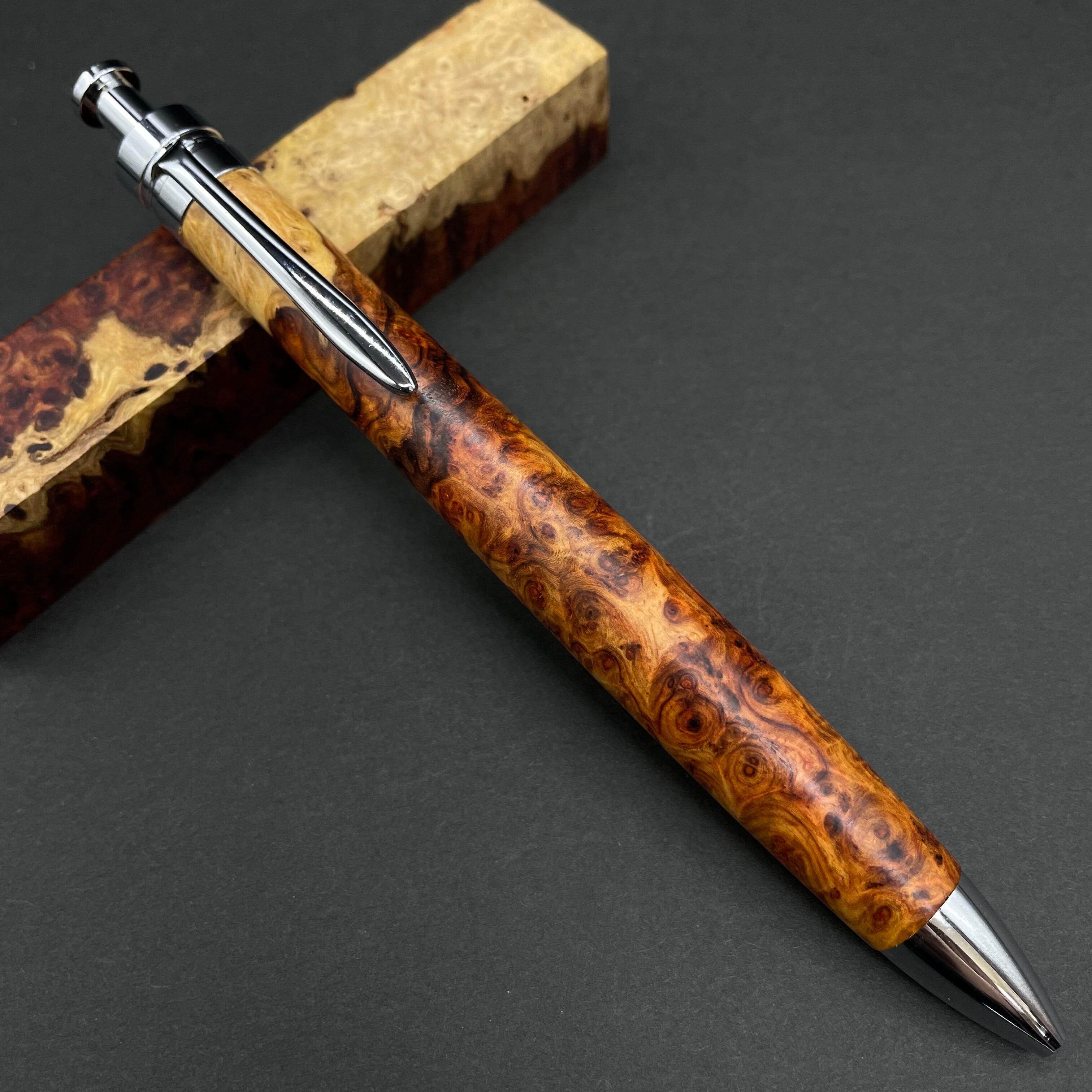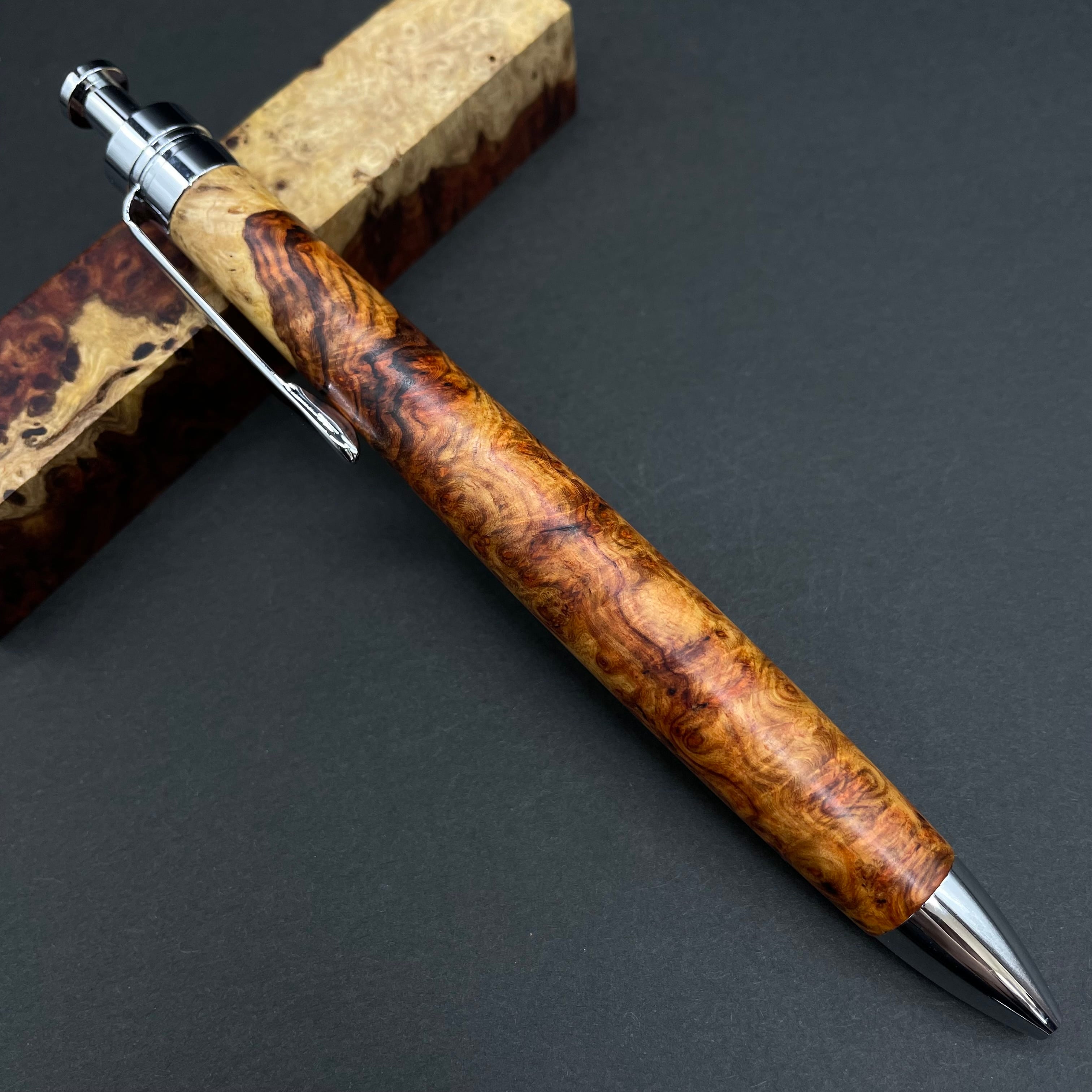 【極上杢 アンボイナバール 紅白】木軸ペン 三神シャープ1100 / 三神ボール1000