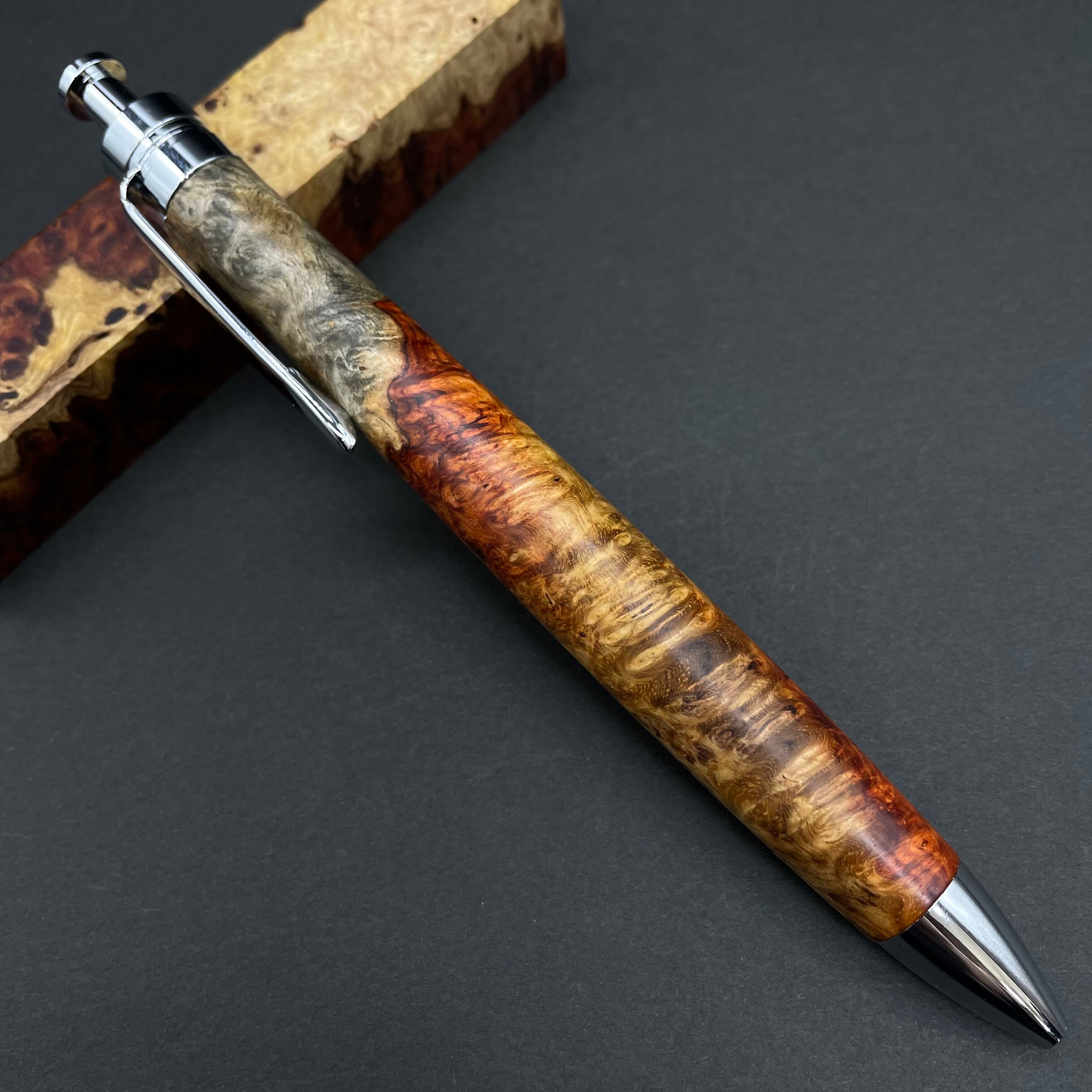 【極上杢 アンボイナバール トリコロール】木軸ペン 三神シャープ1100 / 三神ボール1000