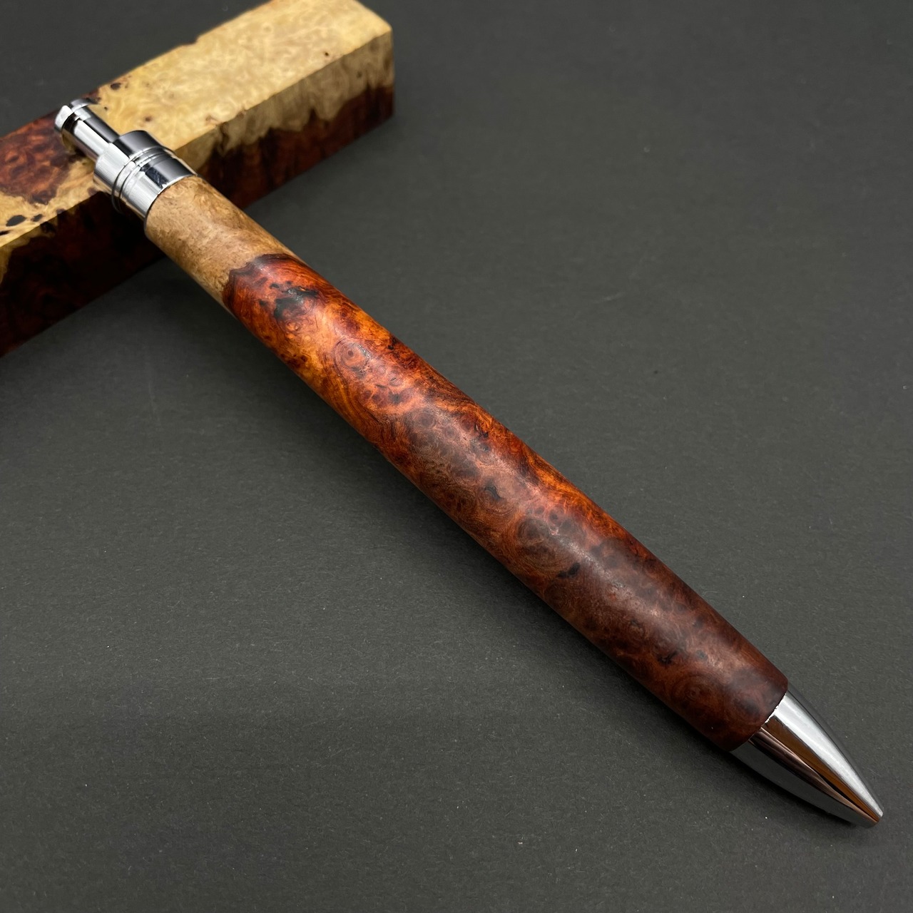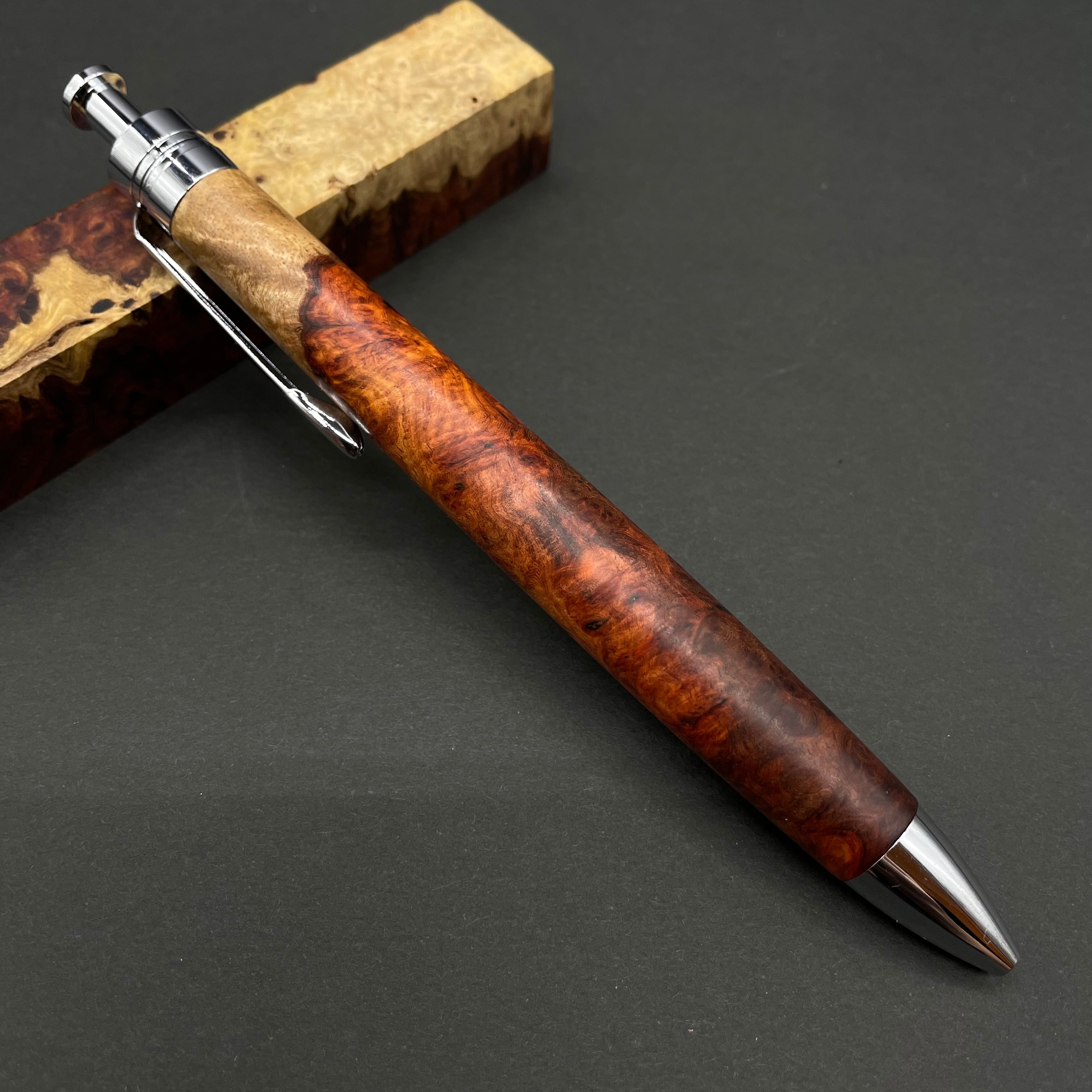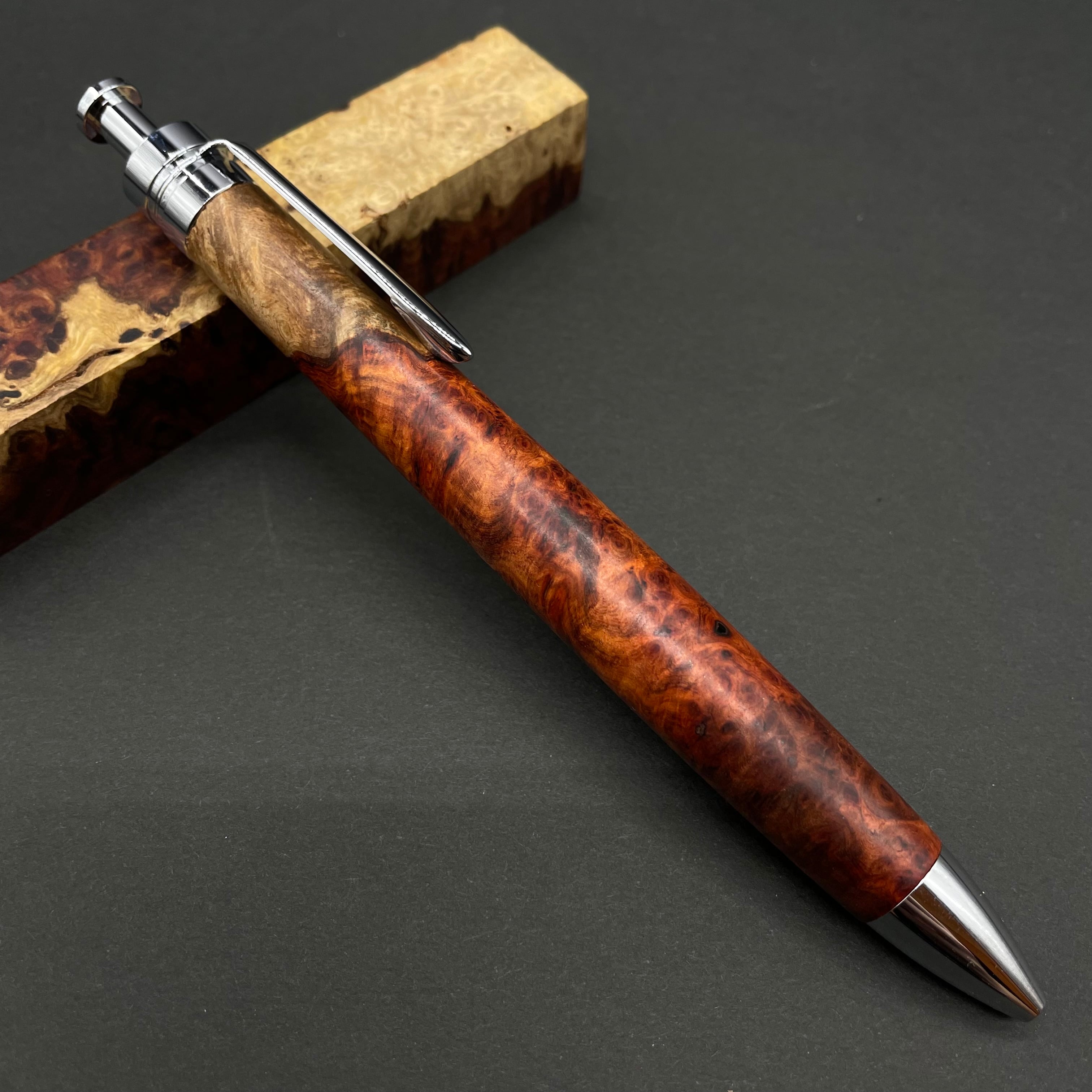 【極上杢 アンボイナバール 紅白】木軸ペン 三神シャープ1100 / 三神ボール1000