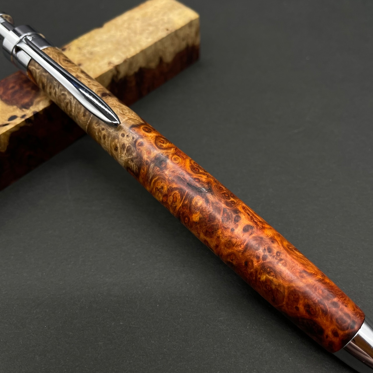【極上杢 アンボイナバール 紅白】木軸ペン 三神シャープ1100 / 三神ボール1000