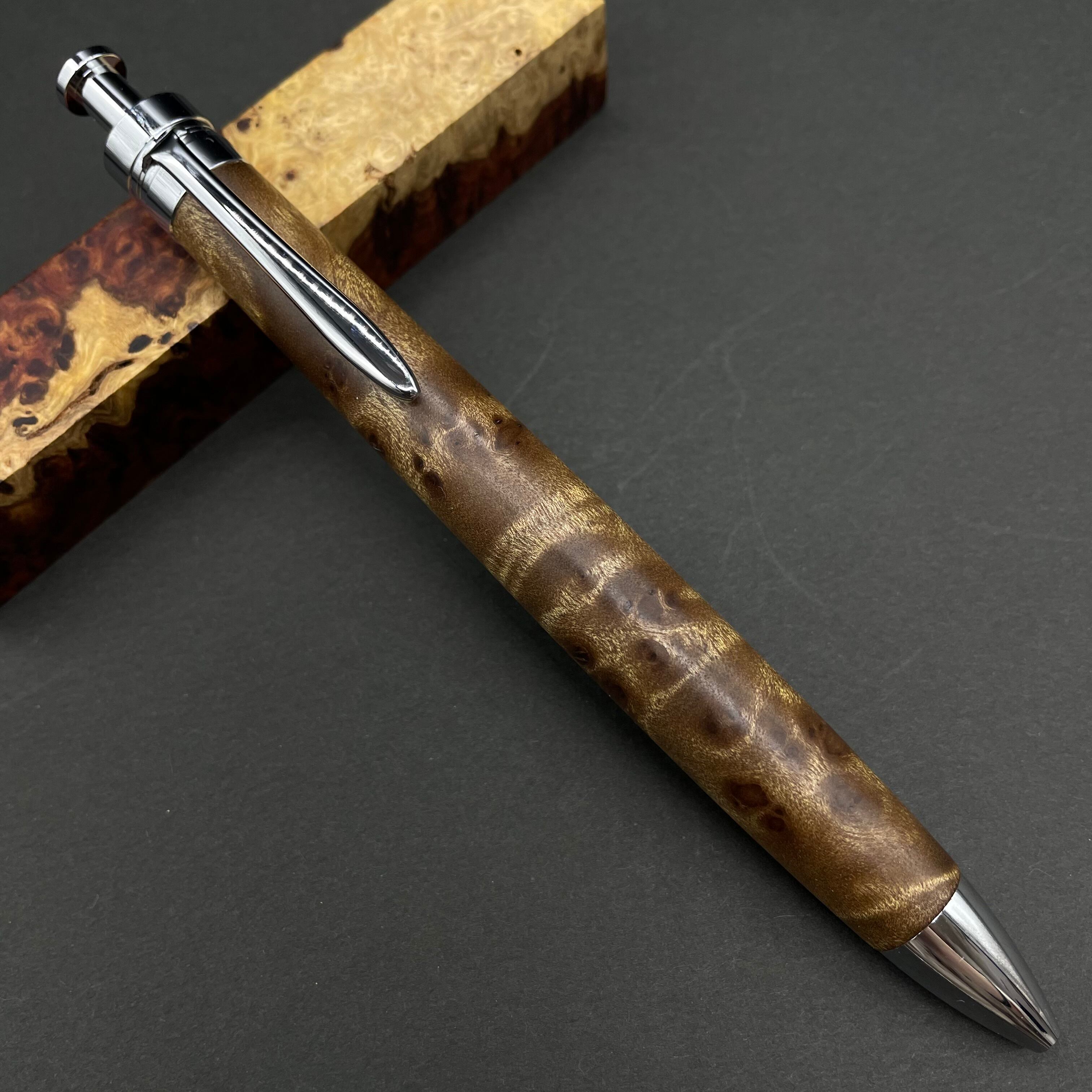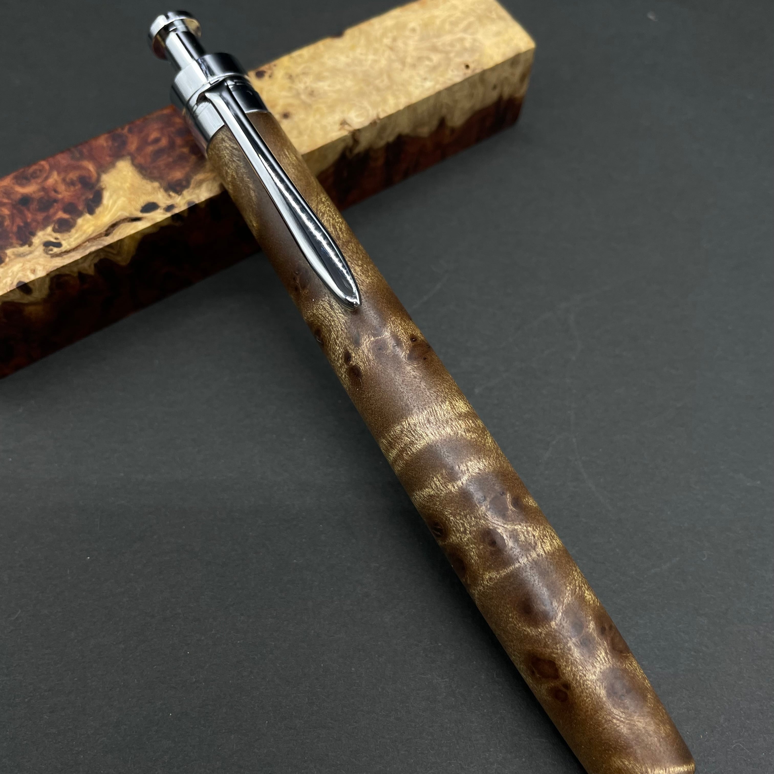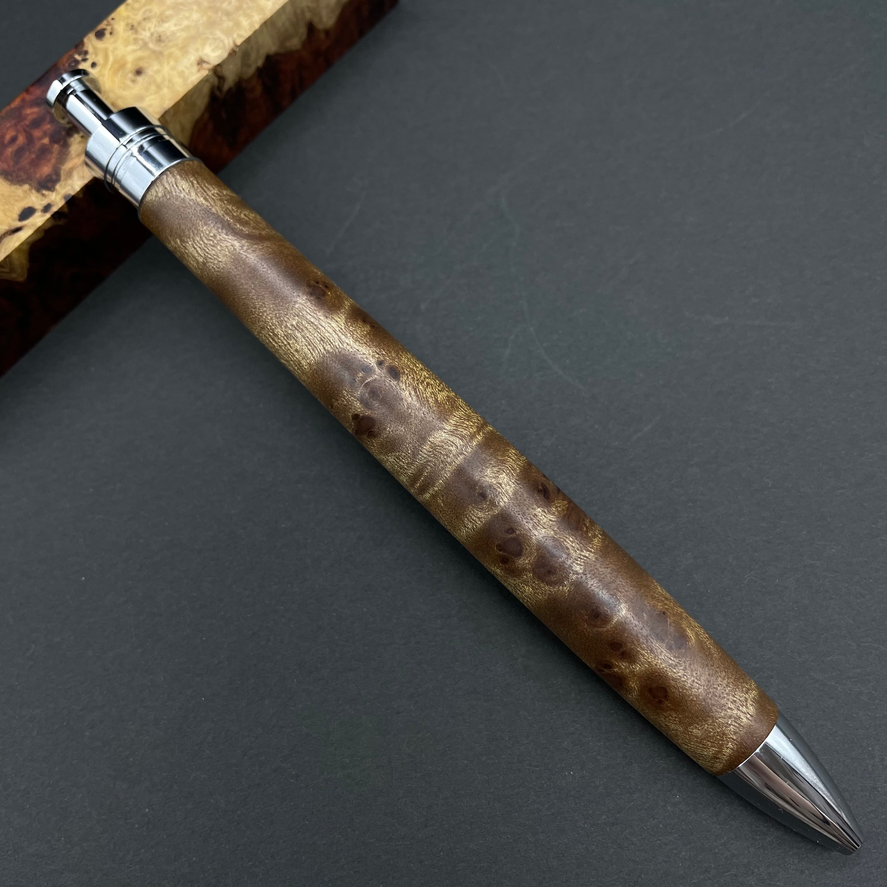 富士山のふもとで、主にインドネシアの良質な瘤材を使用し、木軸ペンをはじめとした木製小物を製作しております。