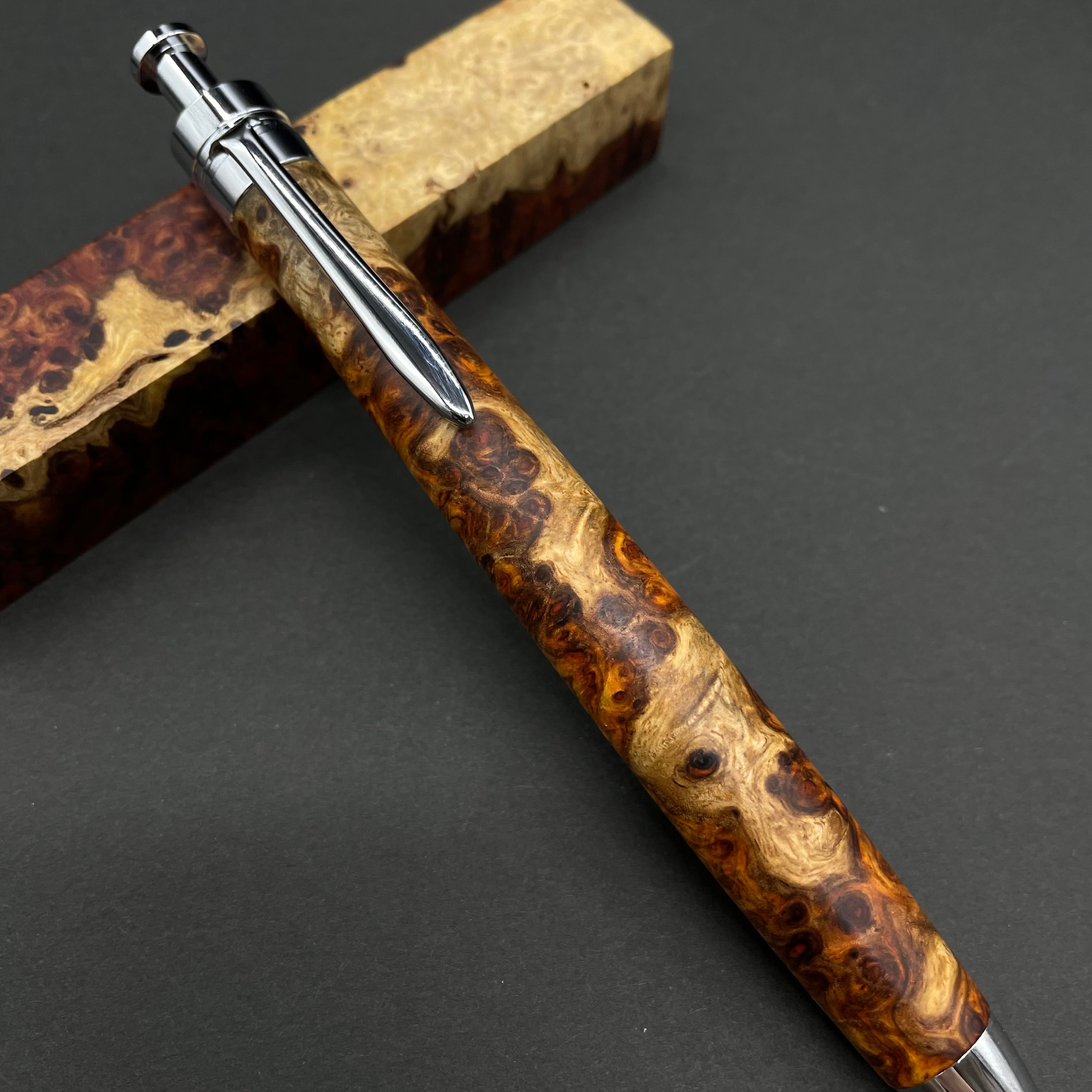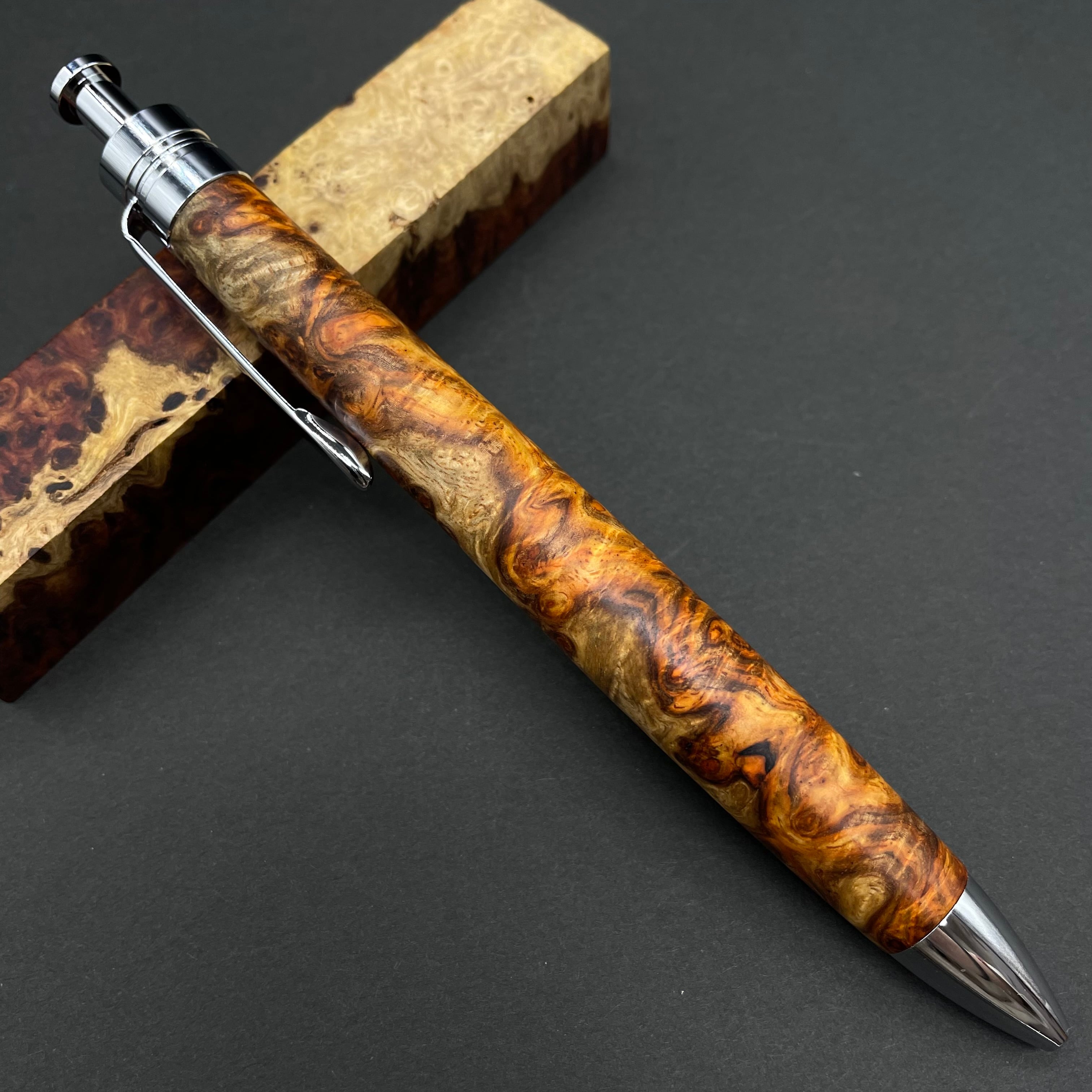 【極上杢 アンボイナバール 紅白】木軸ペン 三神シャープ1100 / 三神ボール1000