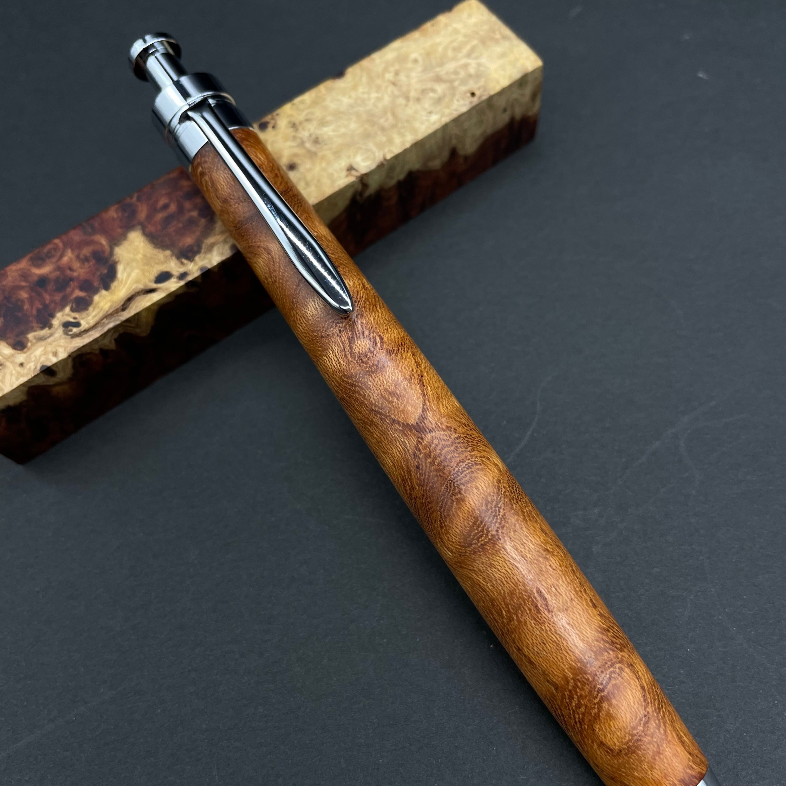 富士山のふもとで、主にインドネシアの良質な瘤材を使用し、木軸ペンをはじめとした木製小物を製作しております。