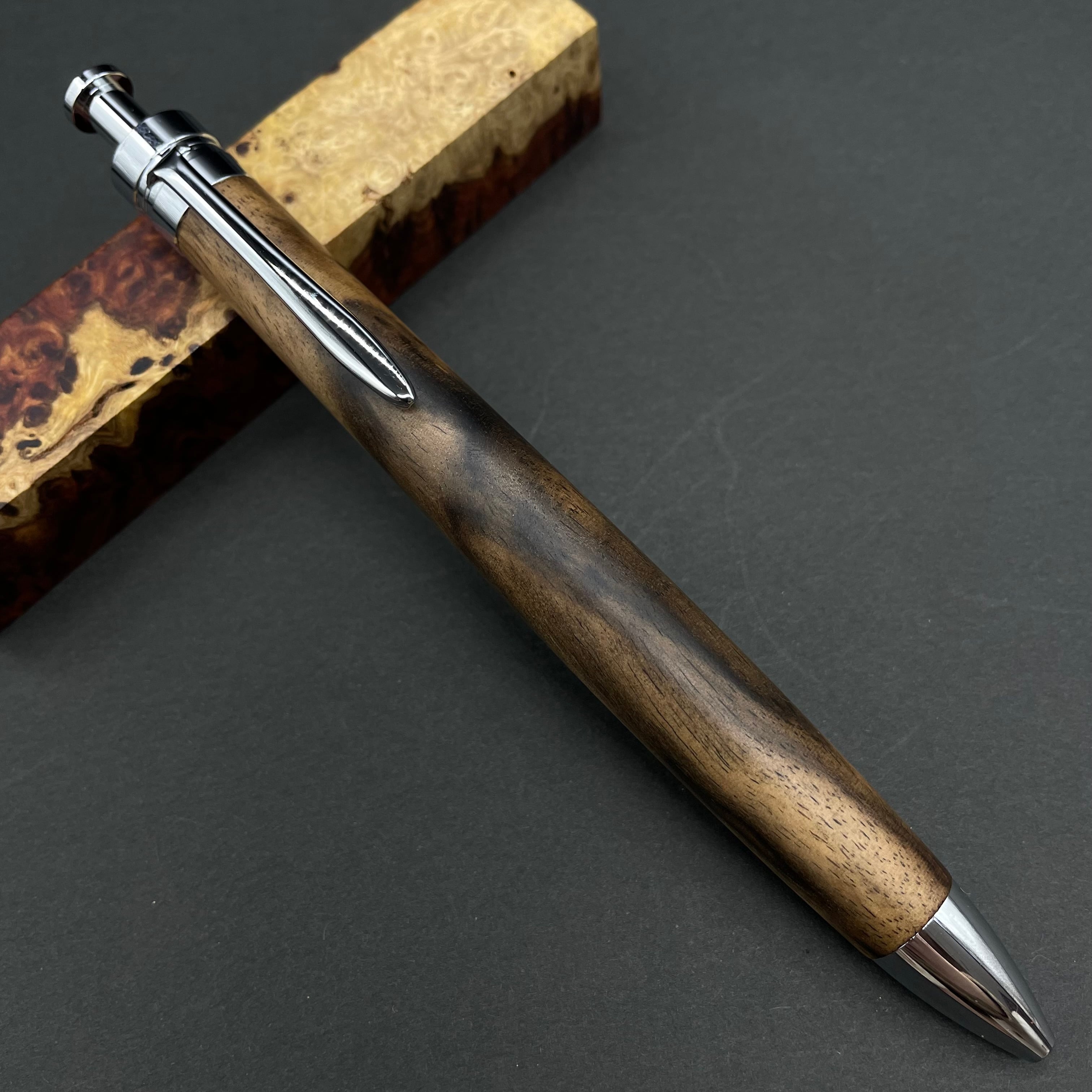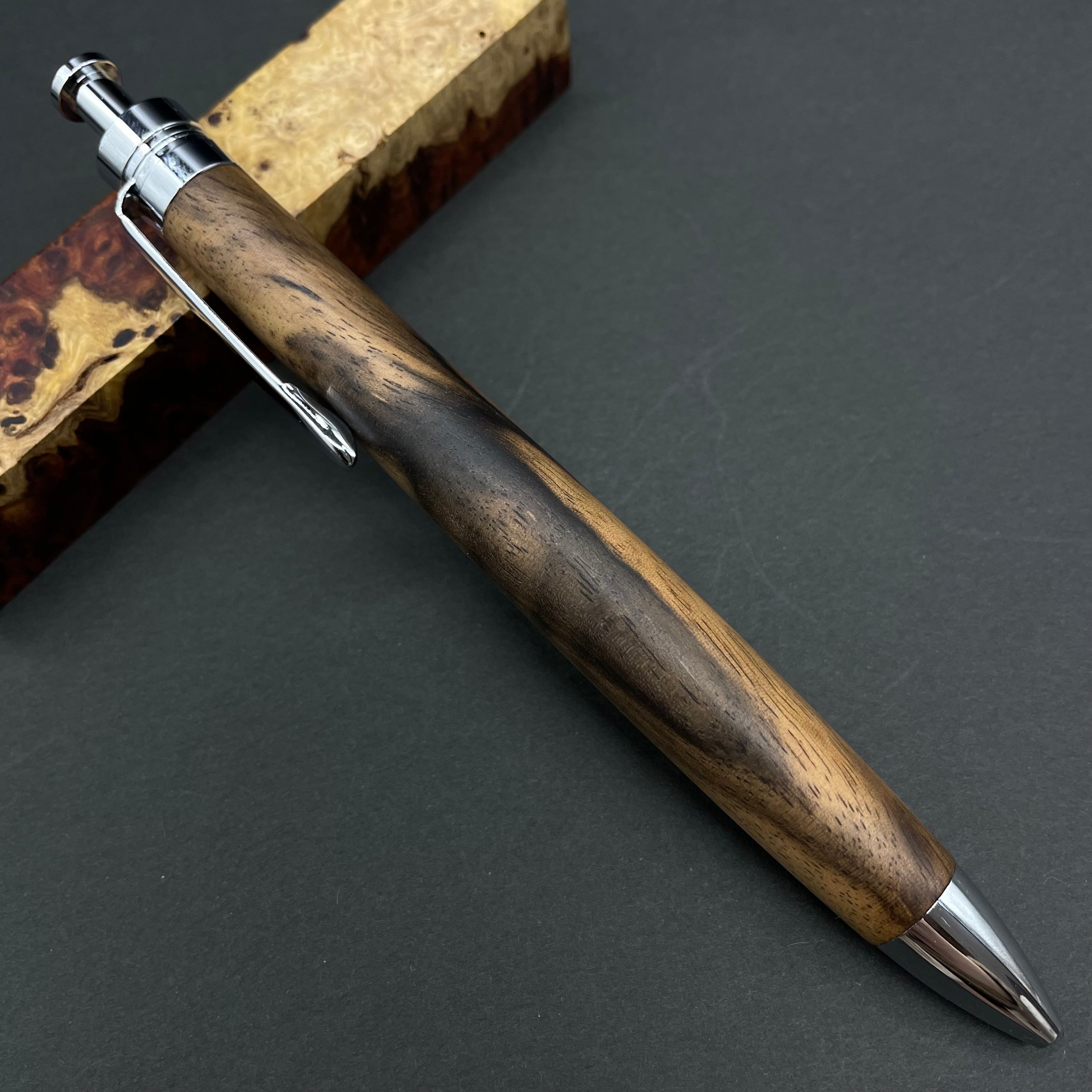 富士山のふもとで、主にインドネシアの良質な瘤材を使用し、木軸ペンをはじめとした木製小物を製作しております。