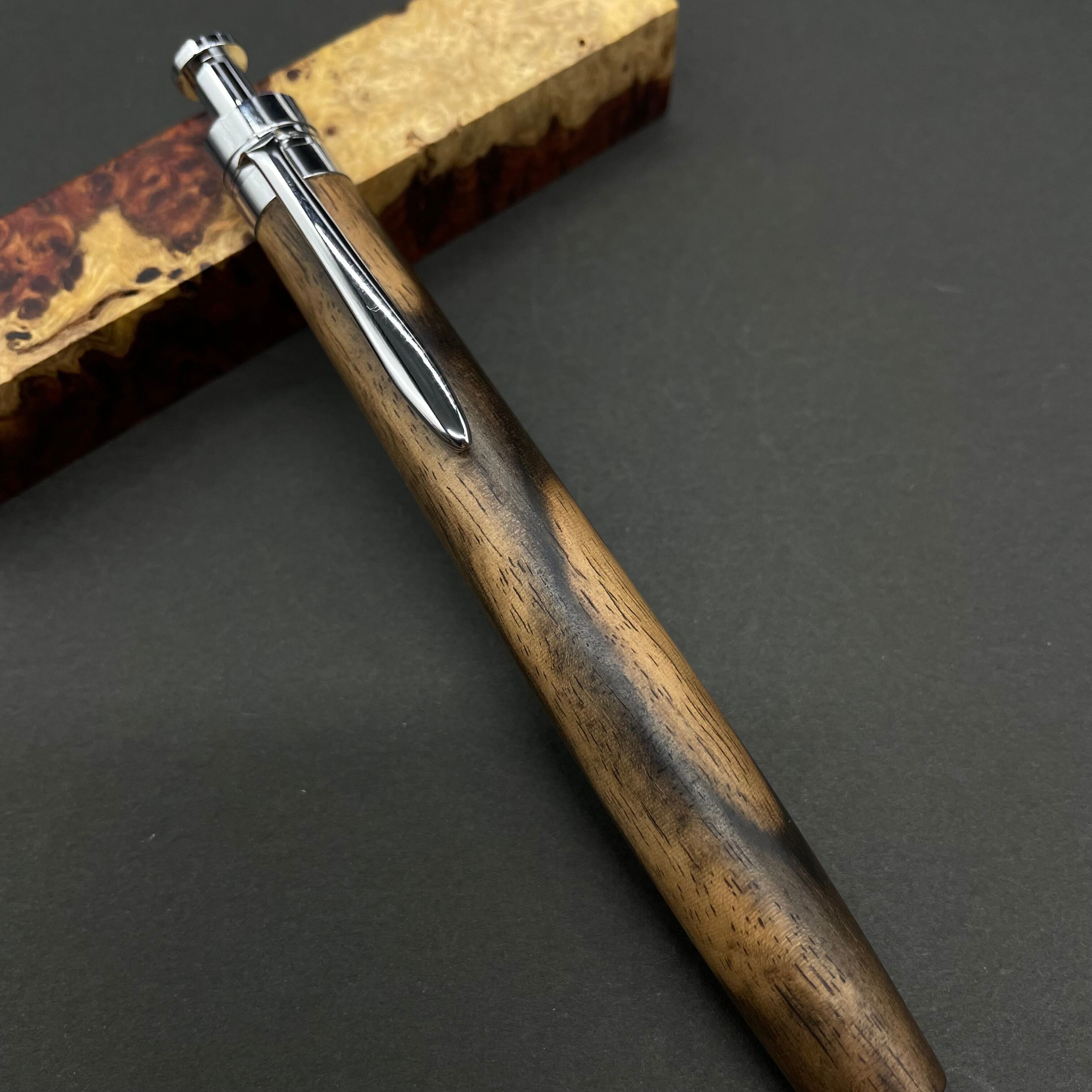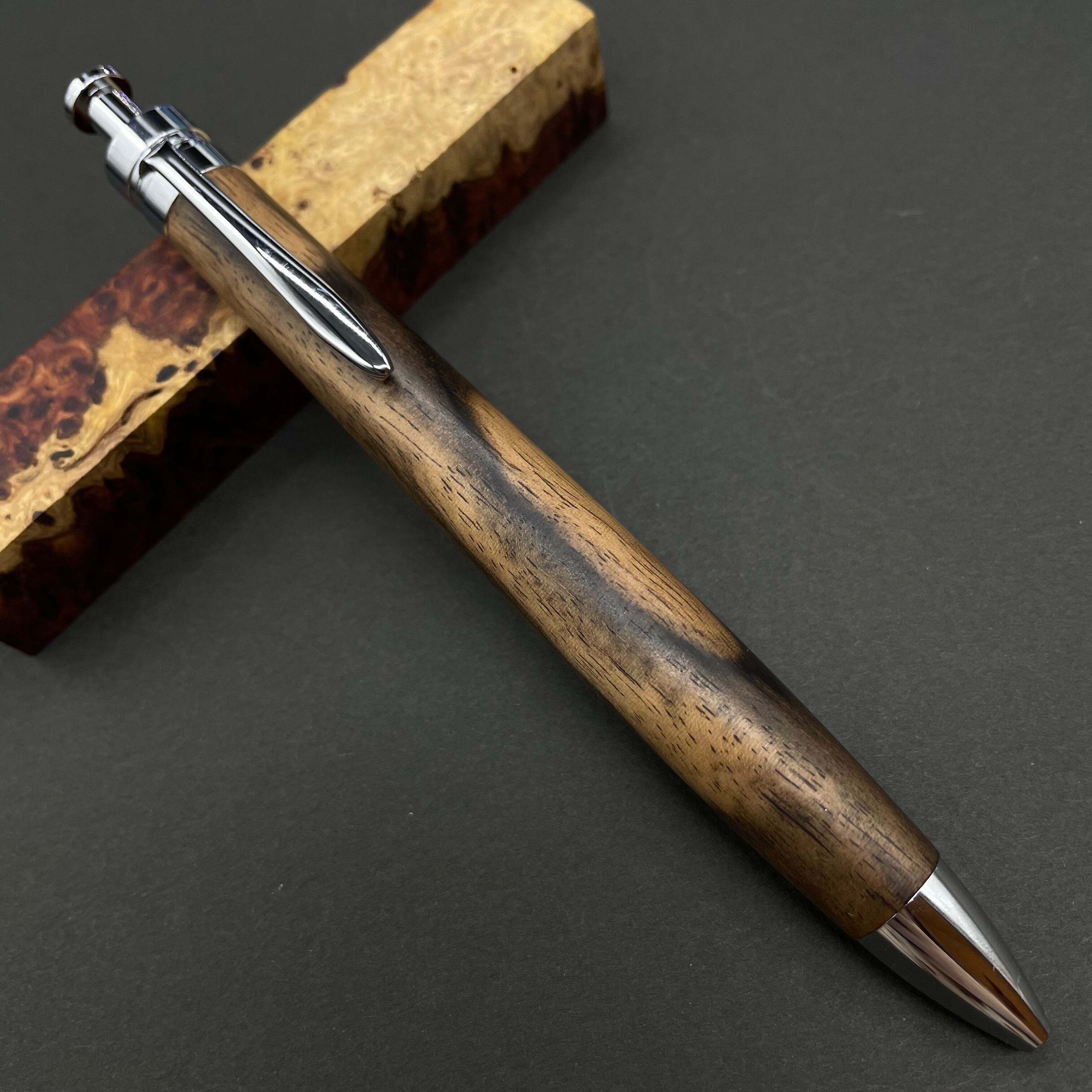 富士山のふもとで、主にインドネシアの良質な瘤材を使用し、木軸ペンをはじめとした木製小物を製作しております。