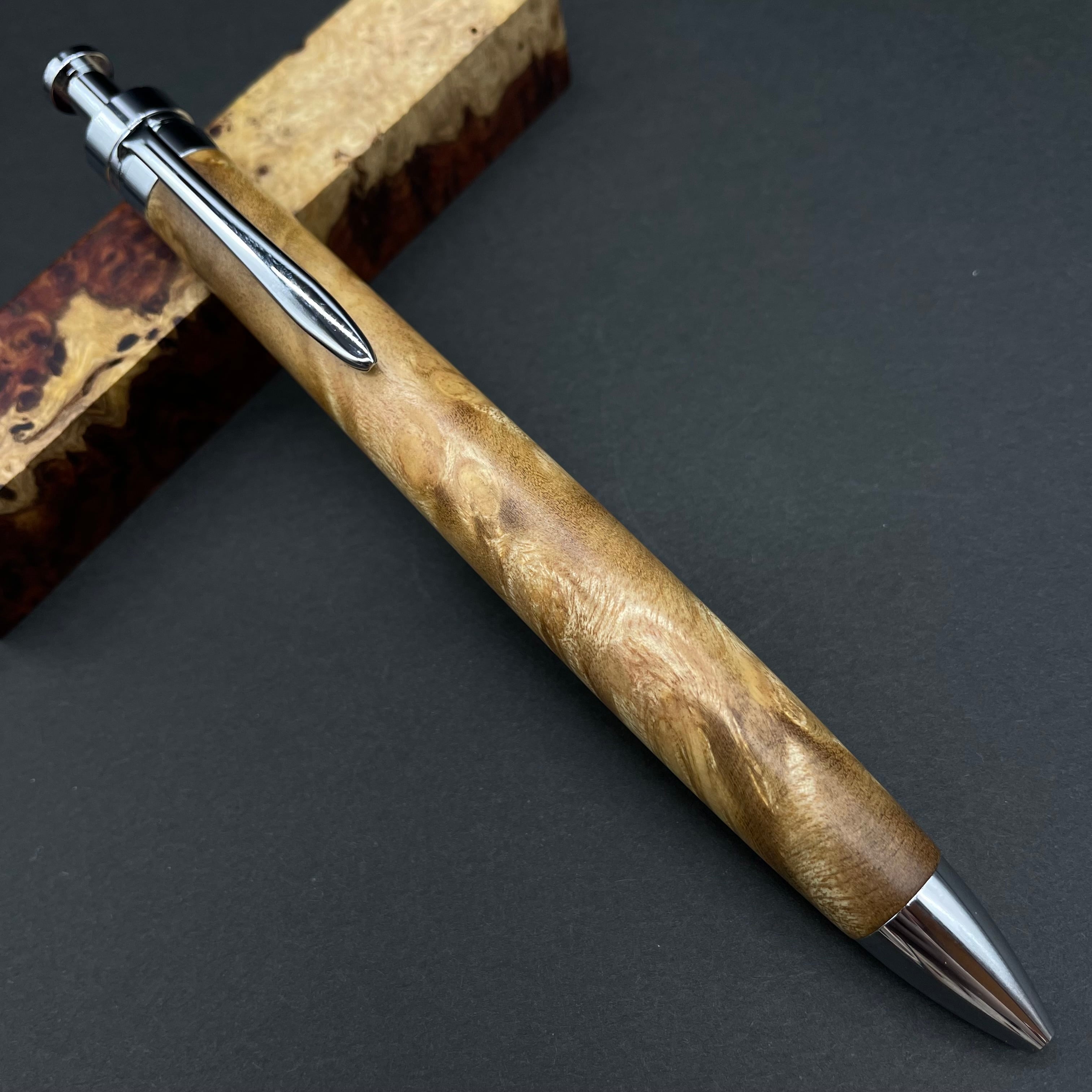 富士山のふもとで、主にインドネシアの良質な瘤材を使用し、木軸ペンをはじめとした木製小物を製作しております。