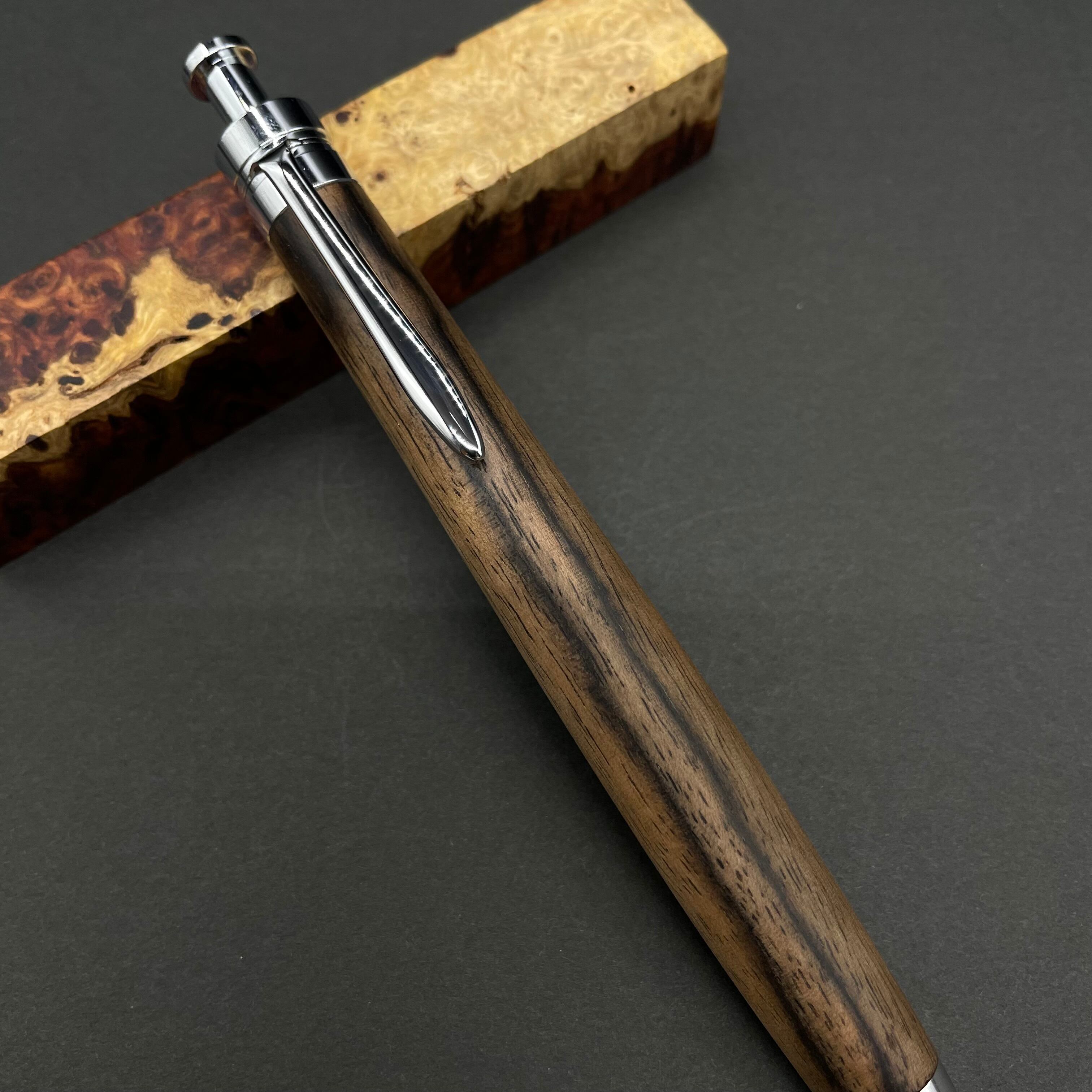 富士山のふもとで、主にインドネシアの良質な瘤材を使用し、木軸ペンをはじめとした木製小物を製作しております。