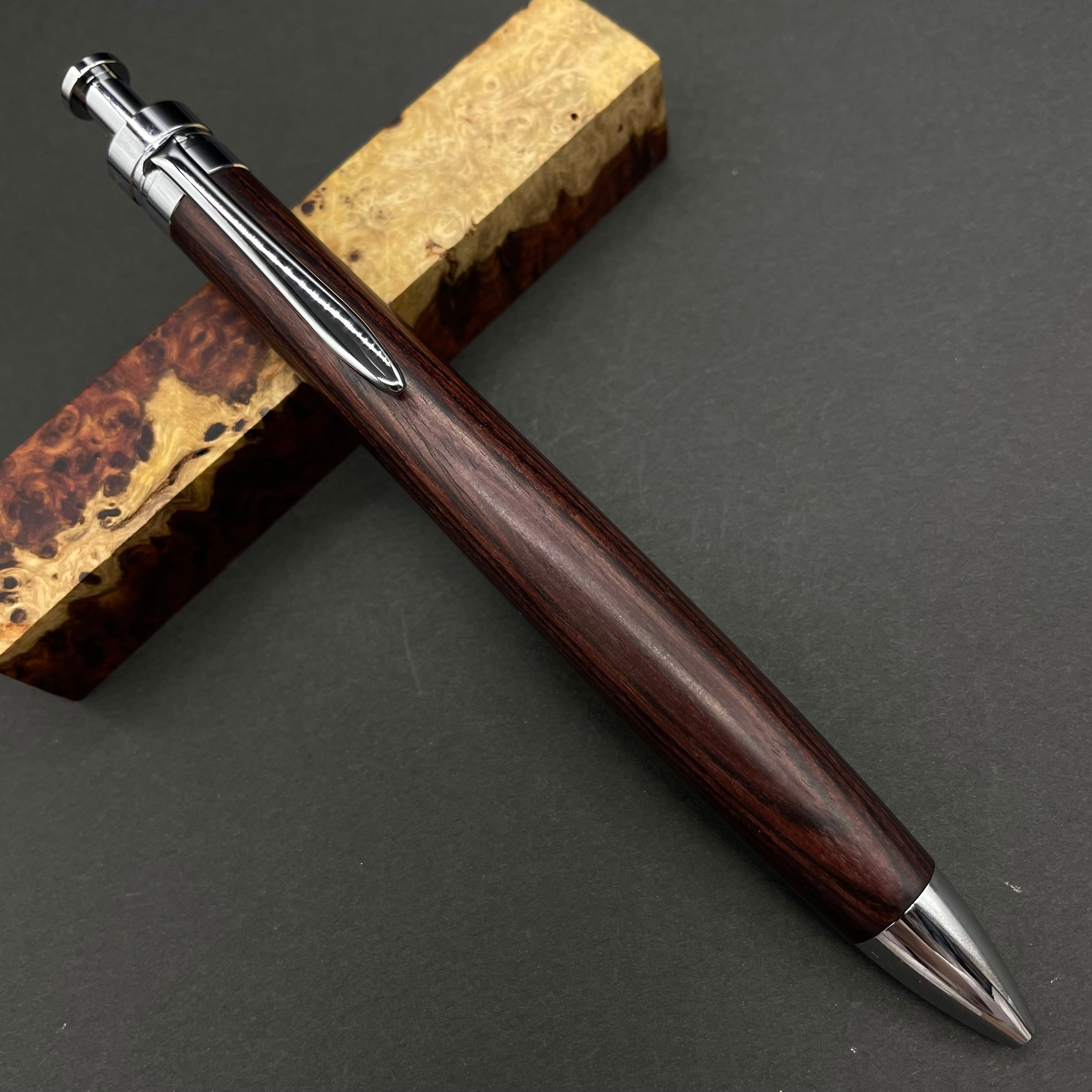 富士山のふもとで、主にインドネシアの良質な瘤材を使用し、木軸ペンをはじめとした木製小物を製作しております。
