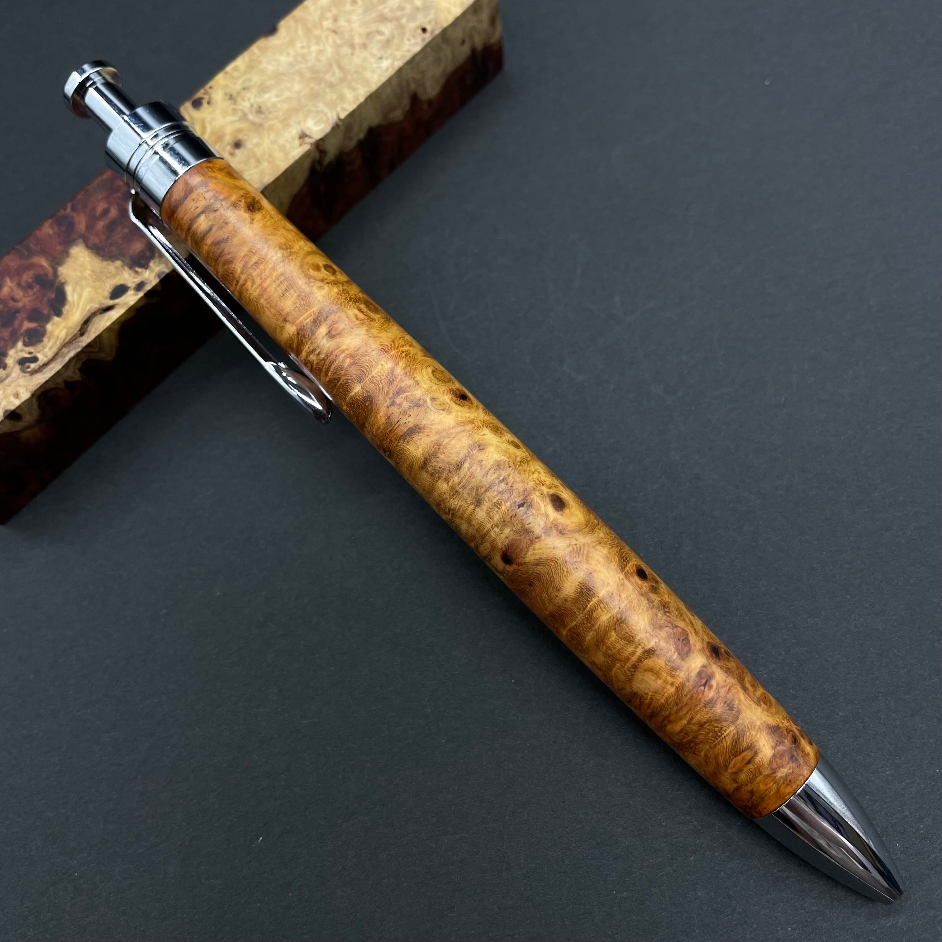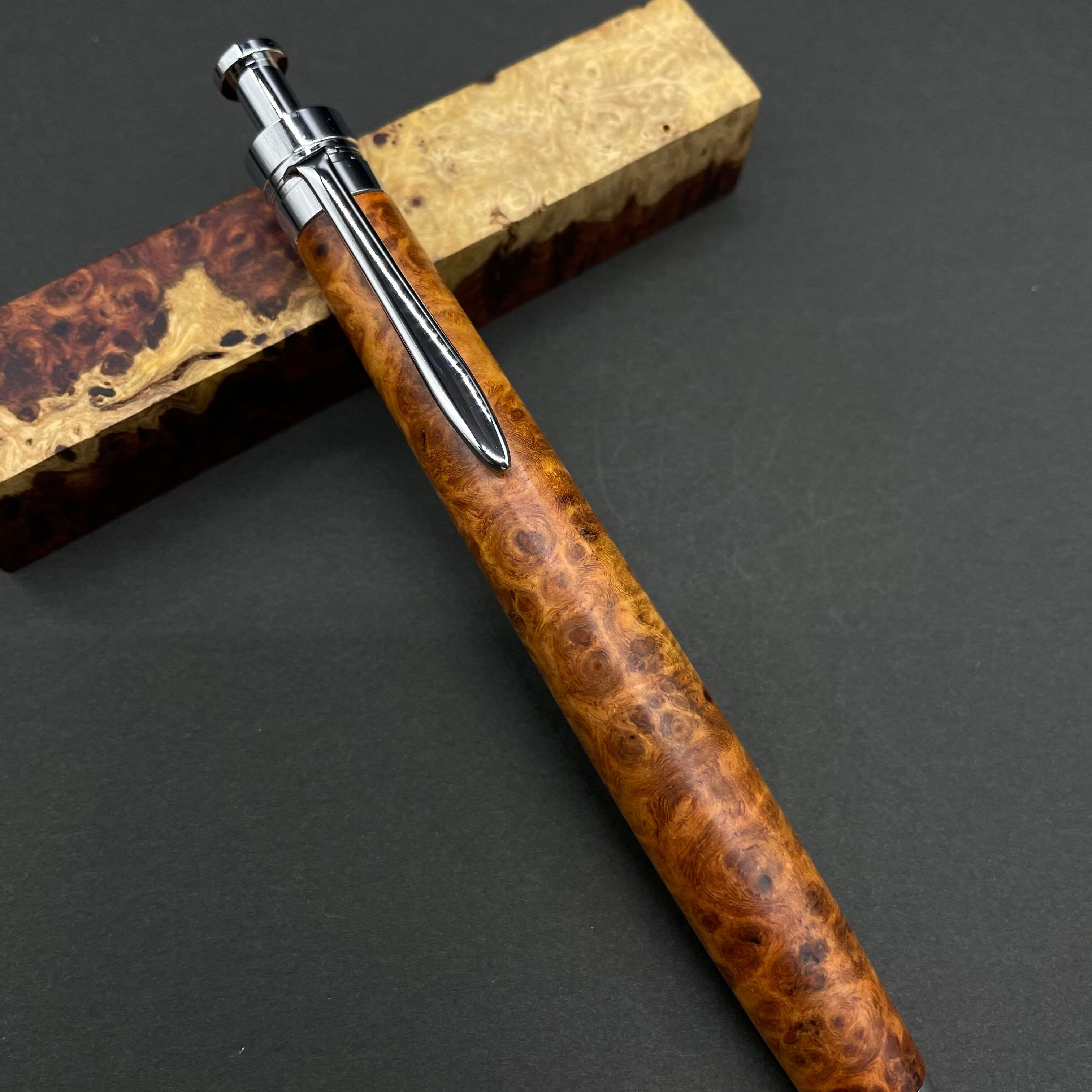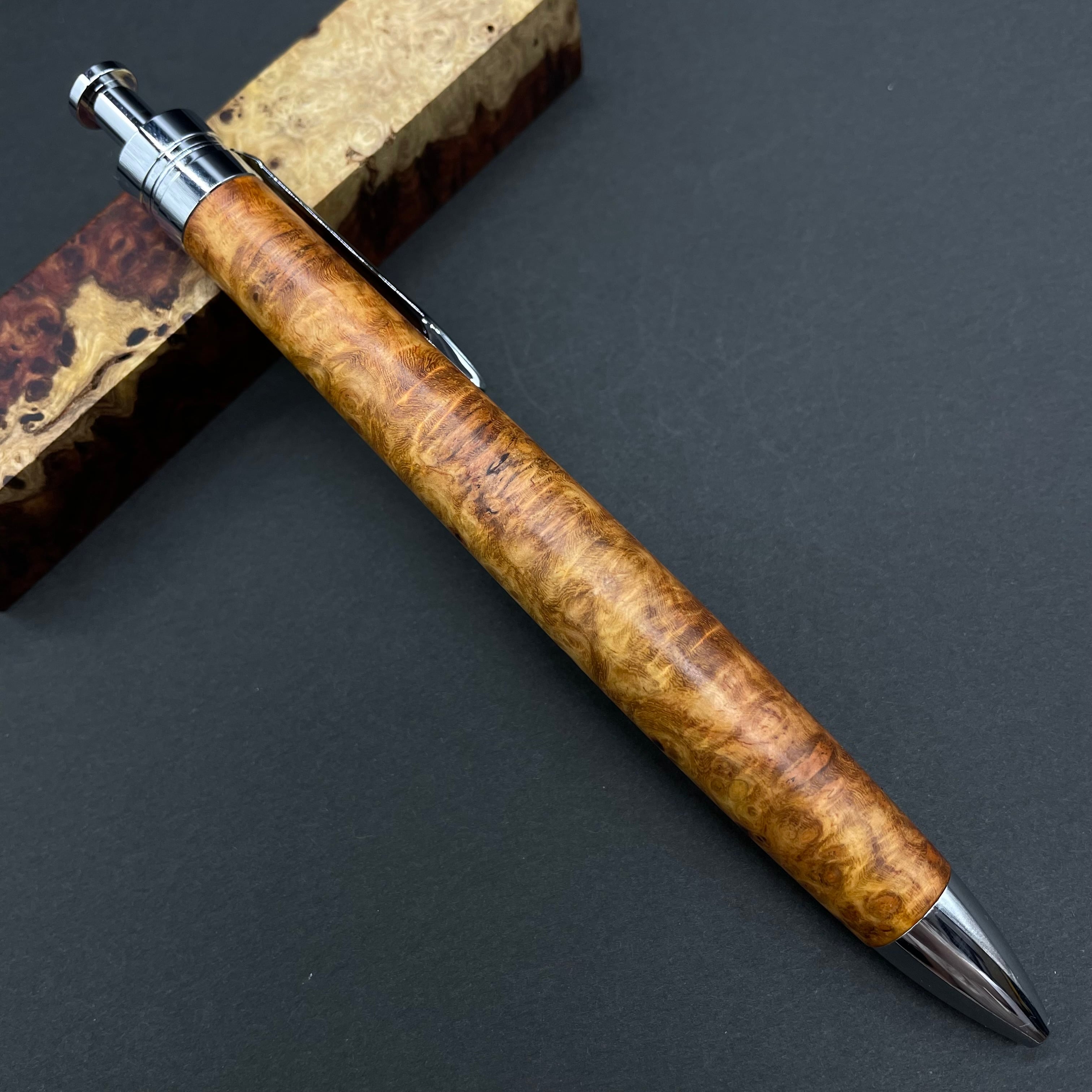 【極上杢 アンボイナバール】木軸ペン 三神シャープ1100 / 三神ボール1000