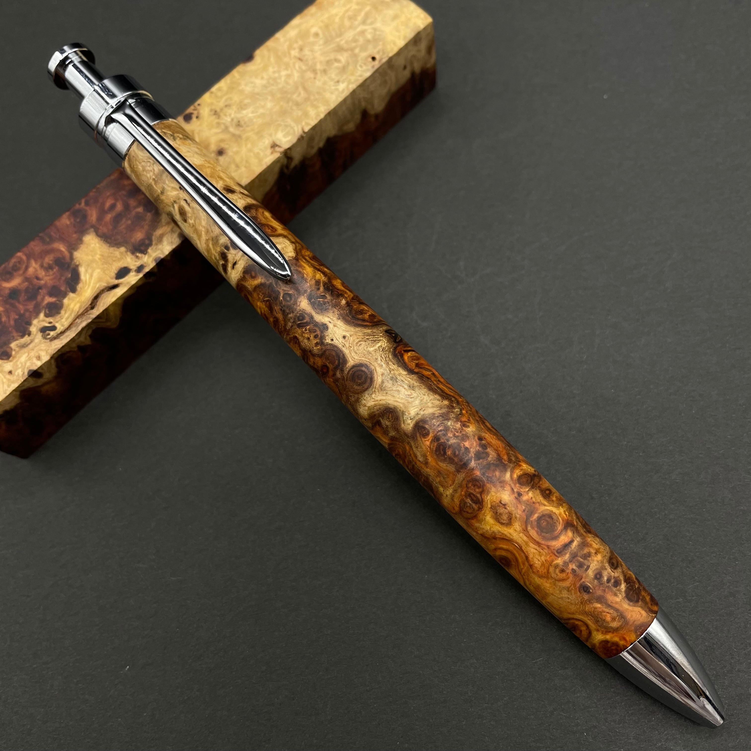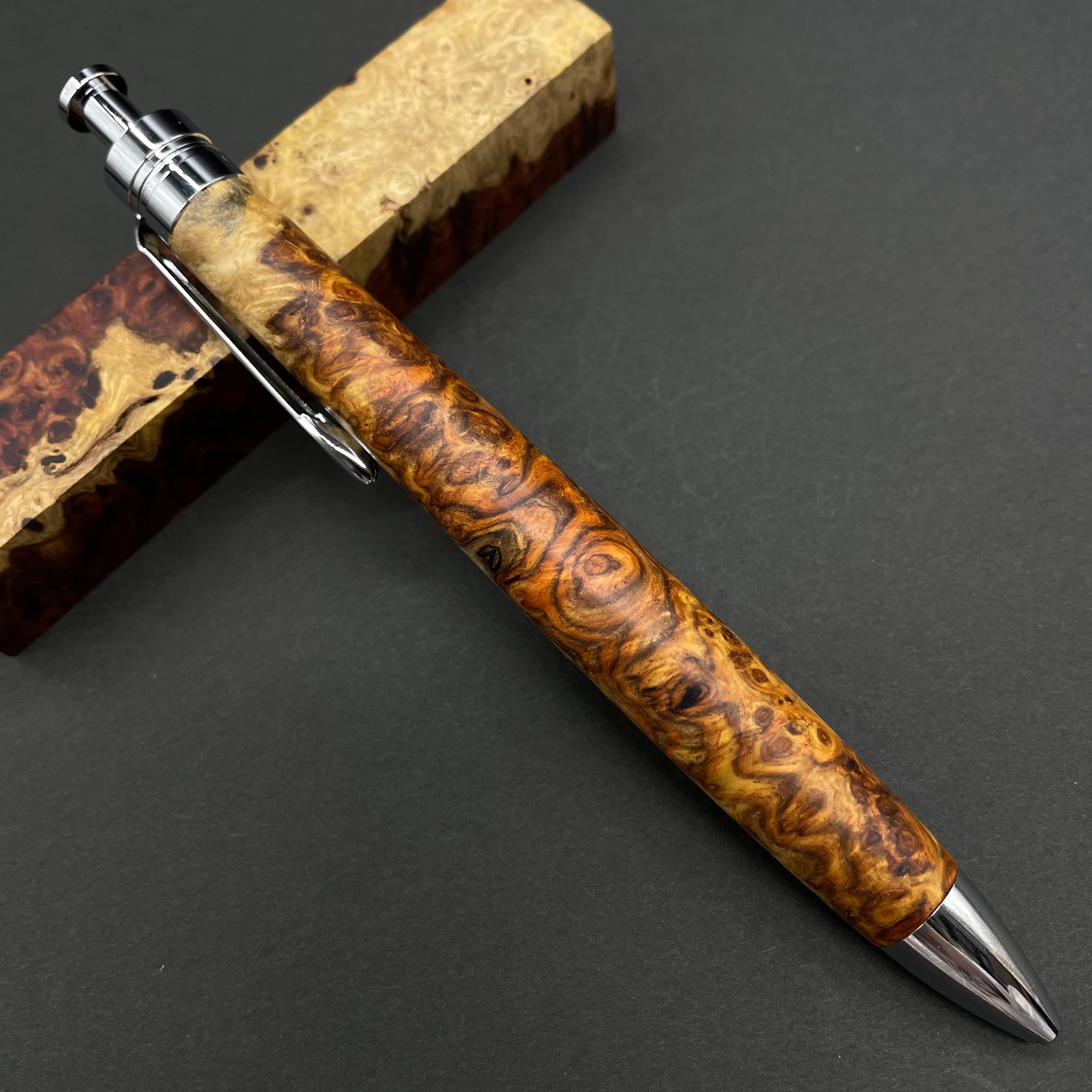 【極上杢 アンボイナバール 紅白】木軸ペン 三神シャープ1100 / 三神ボール1000