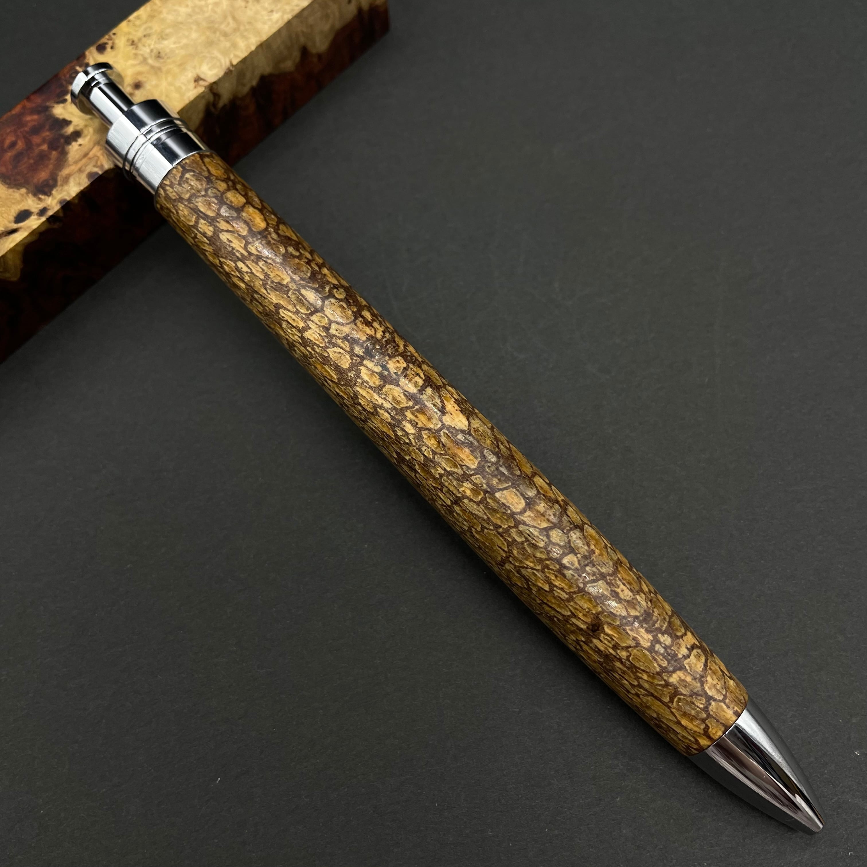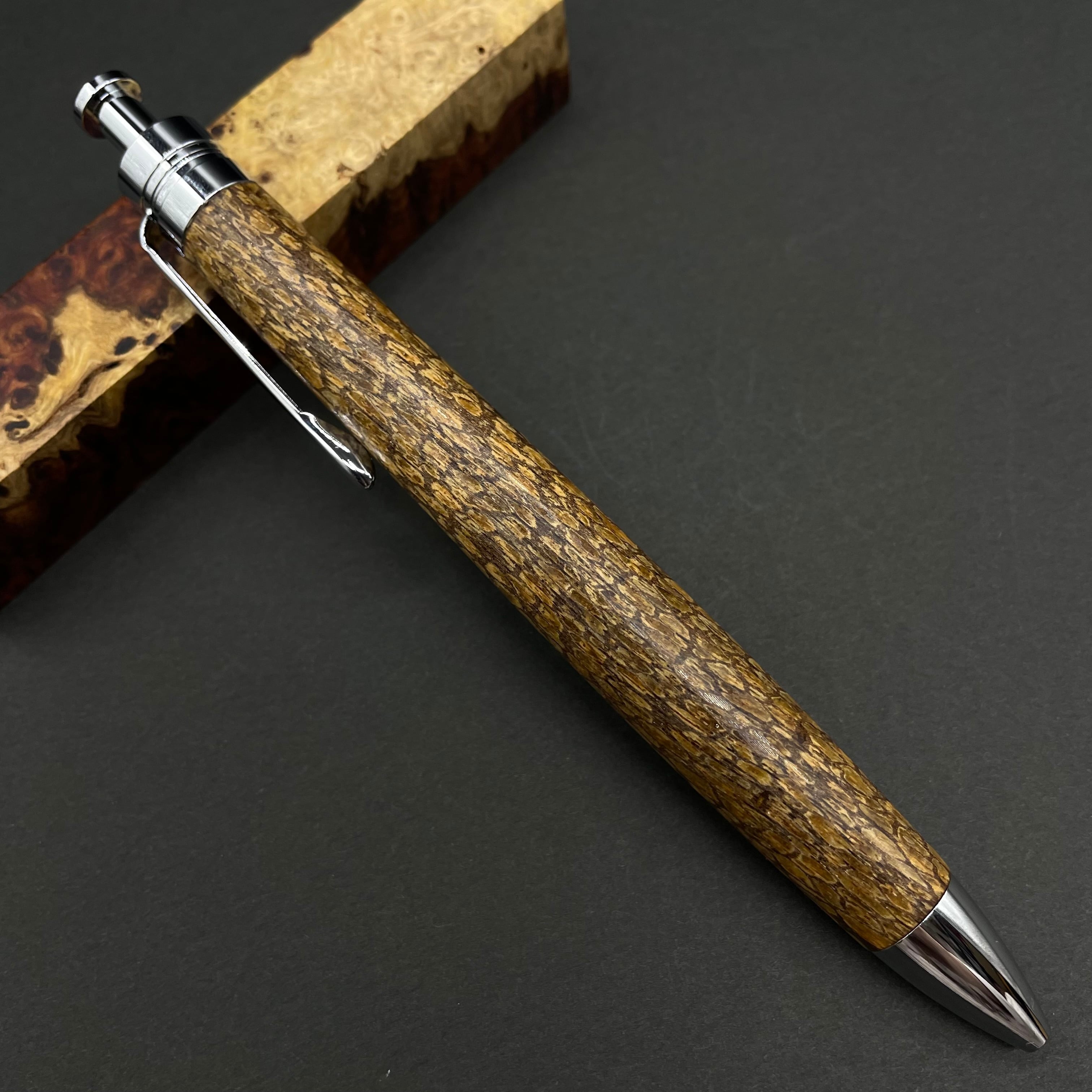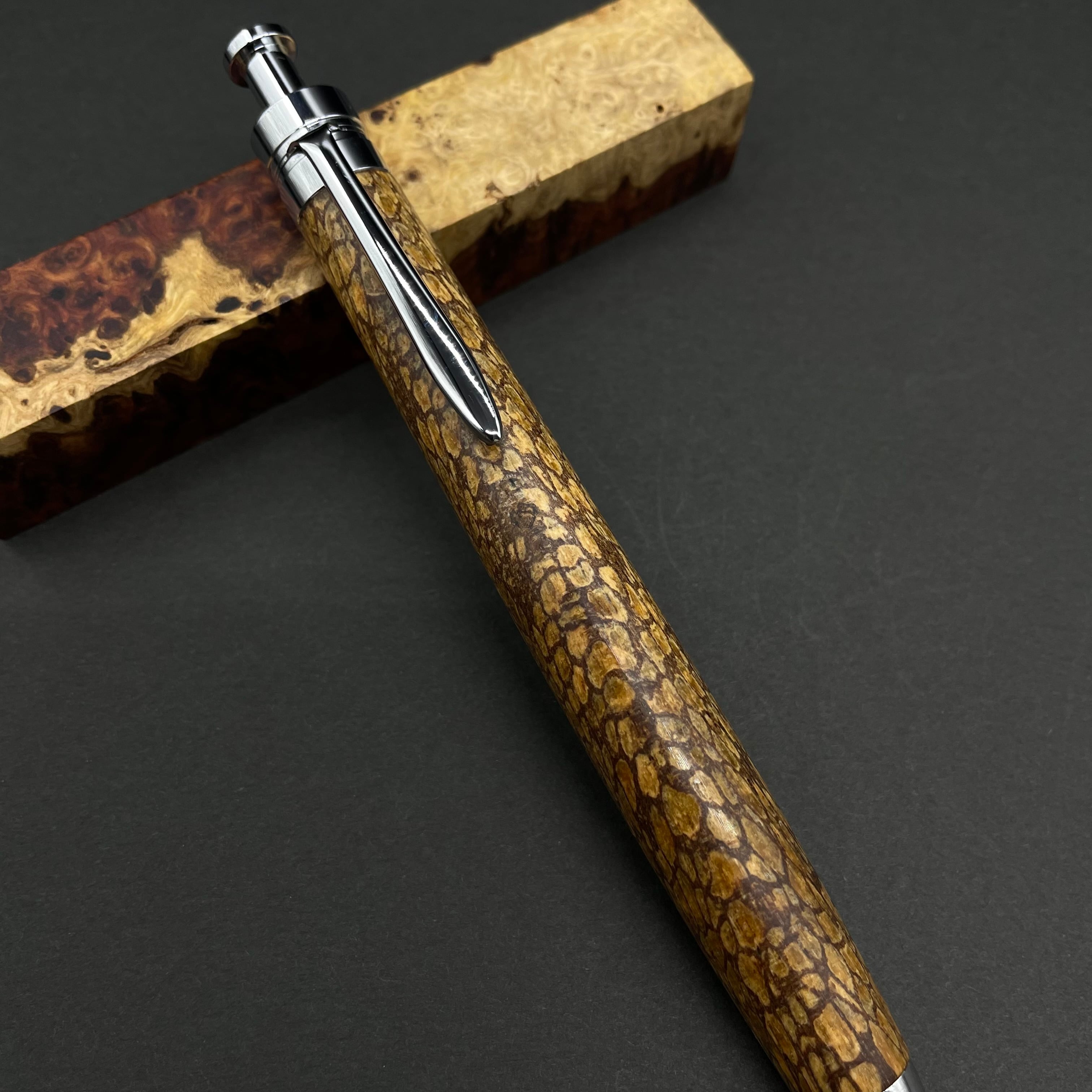富士山のふもとで、主にインドネシアの良質な瘤材を使用し、木軸ペンをはじめとした木製小物を製作しております。