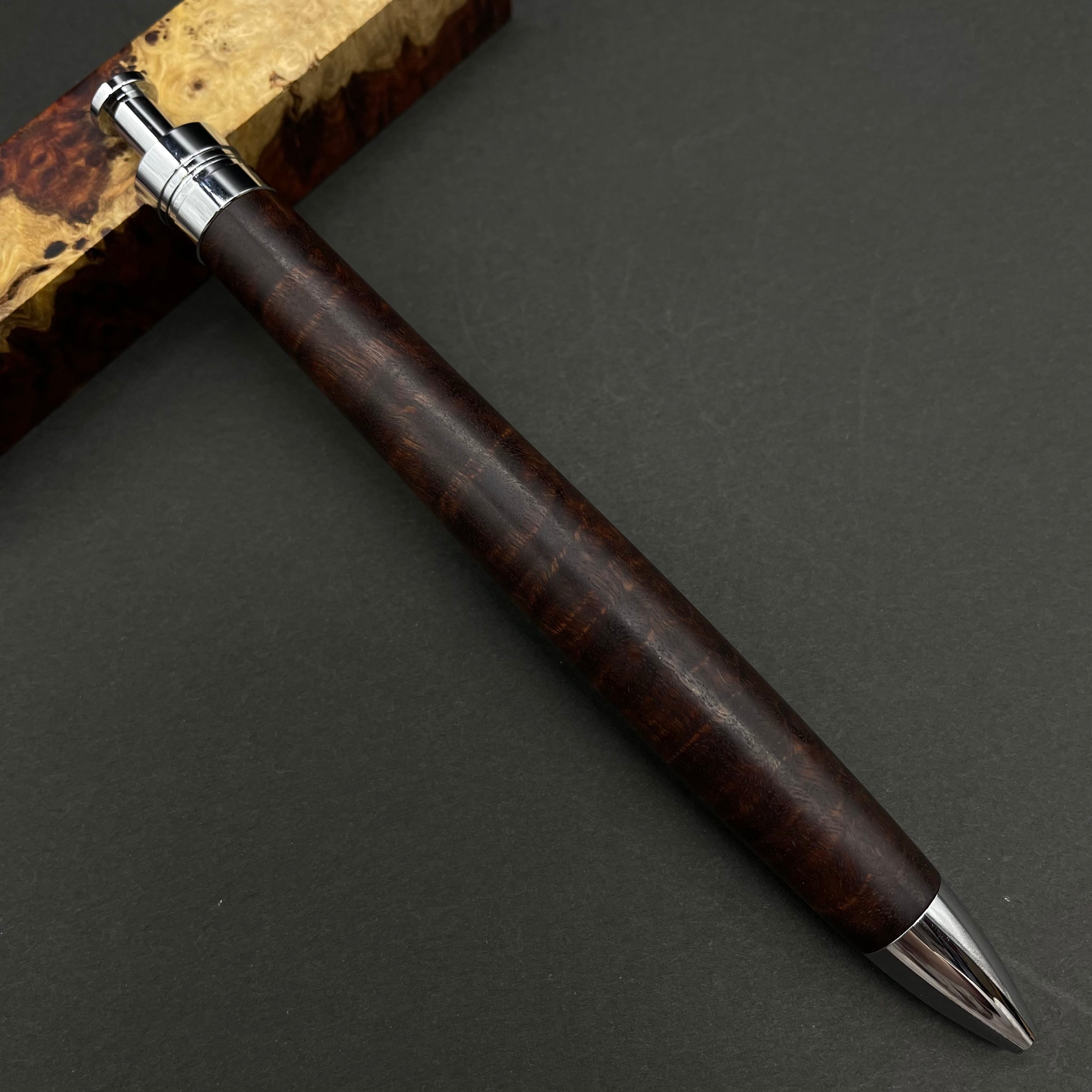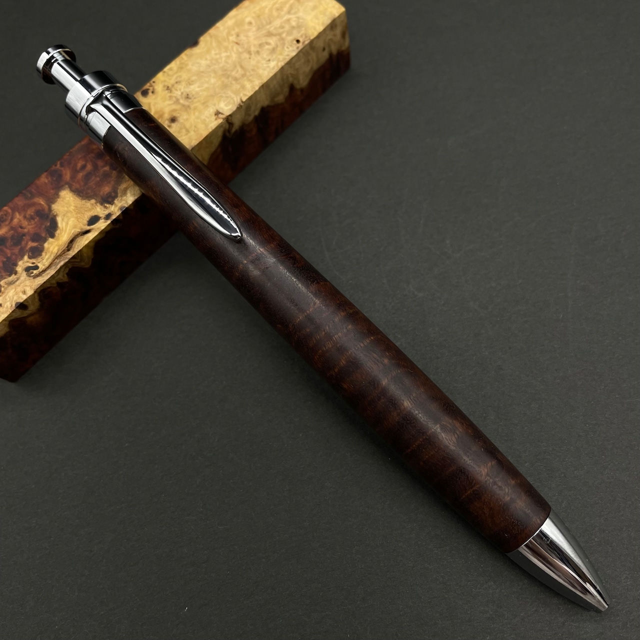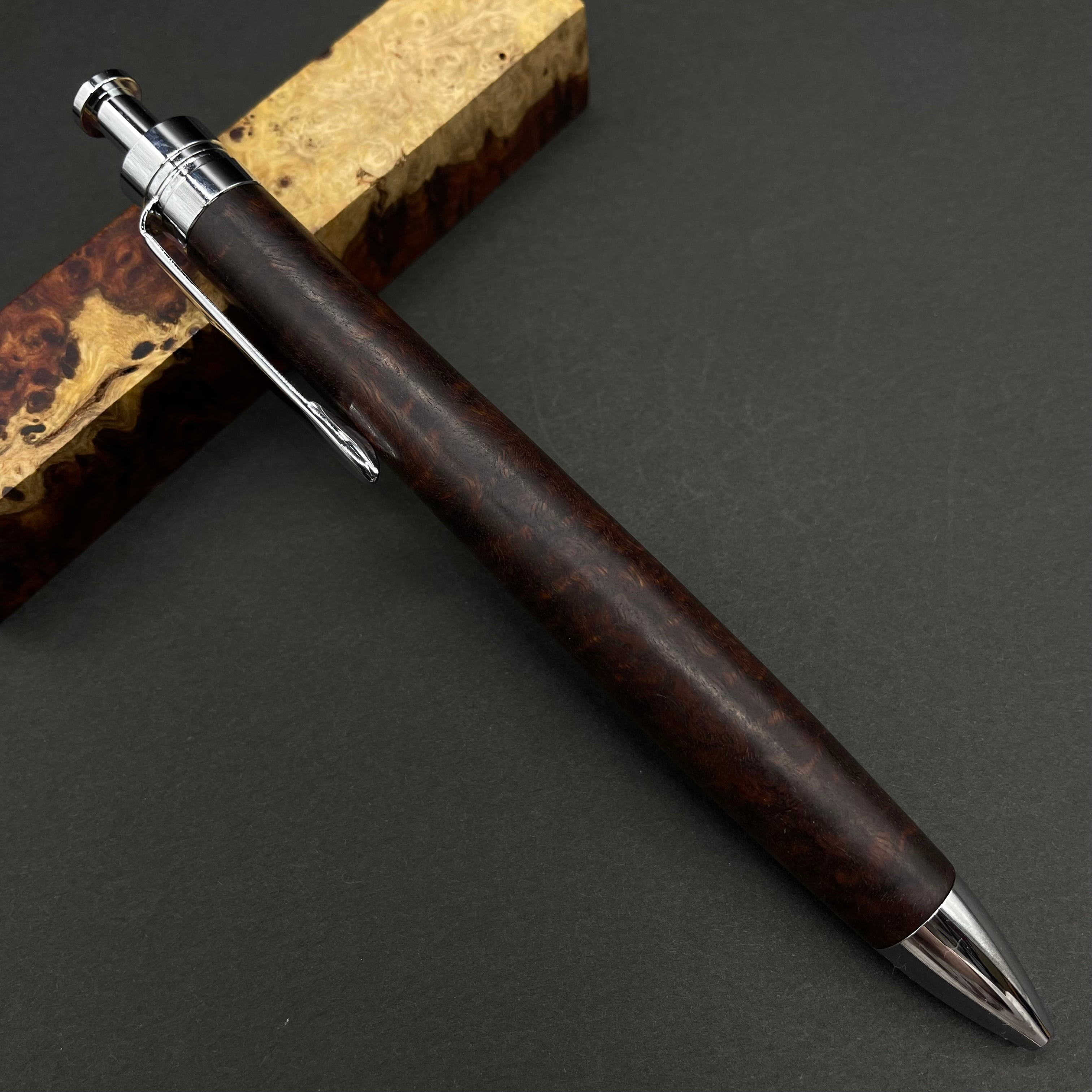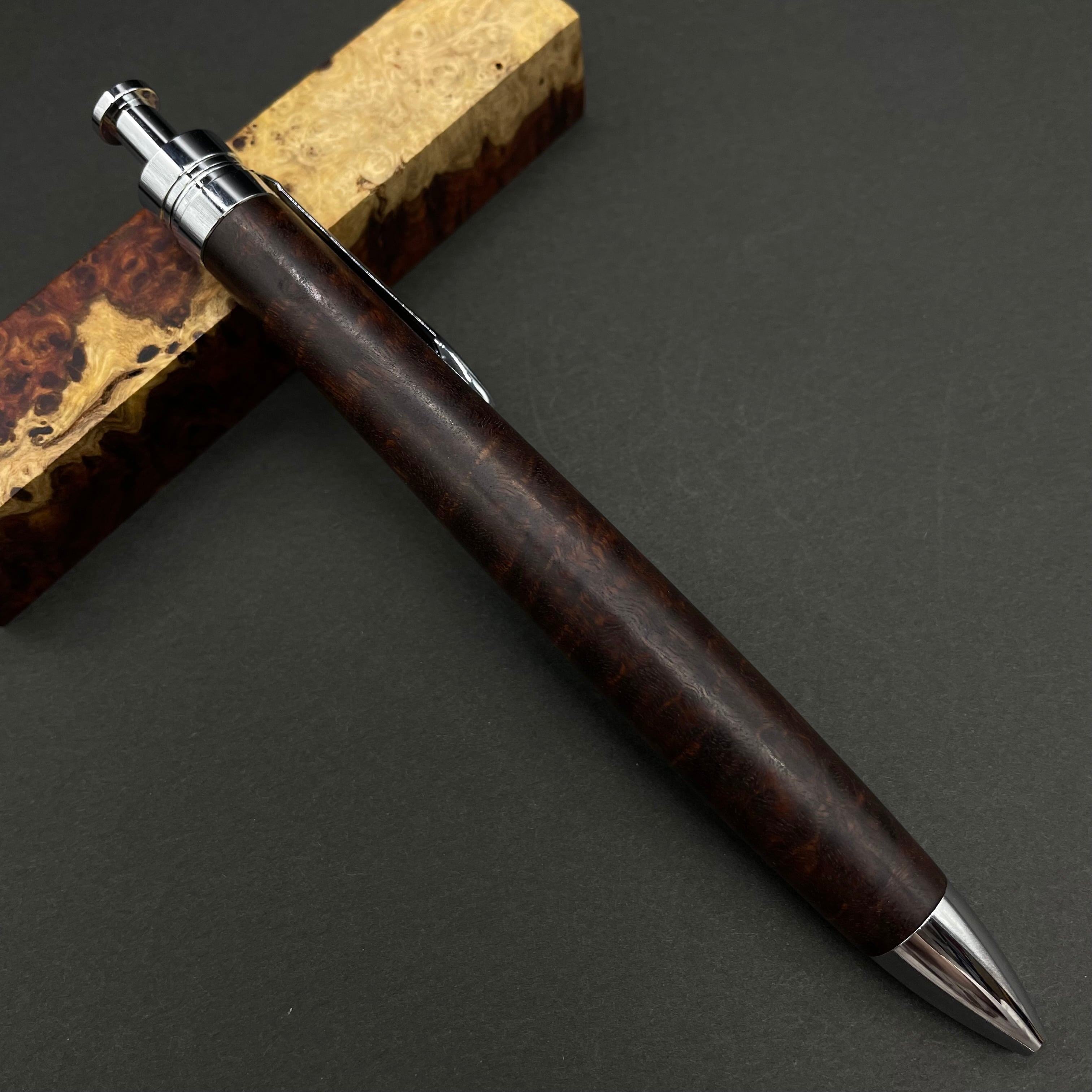 富士山のふもとで、主にインドネシアの良質な瘤材を使用し、木軸ペンをはじめとした木製小物を製作しております。