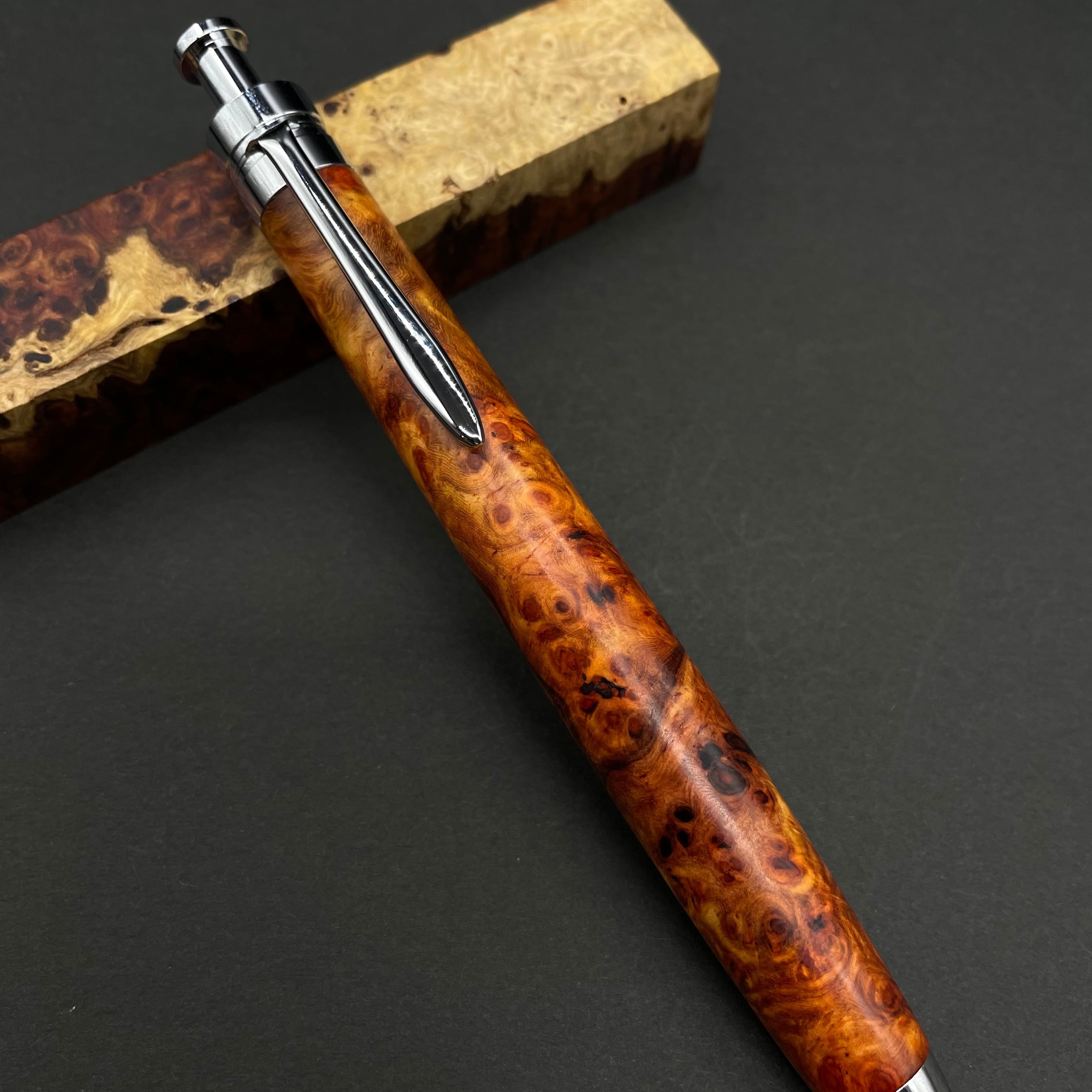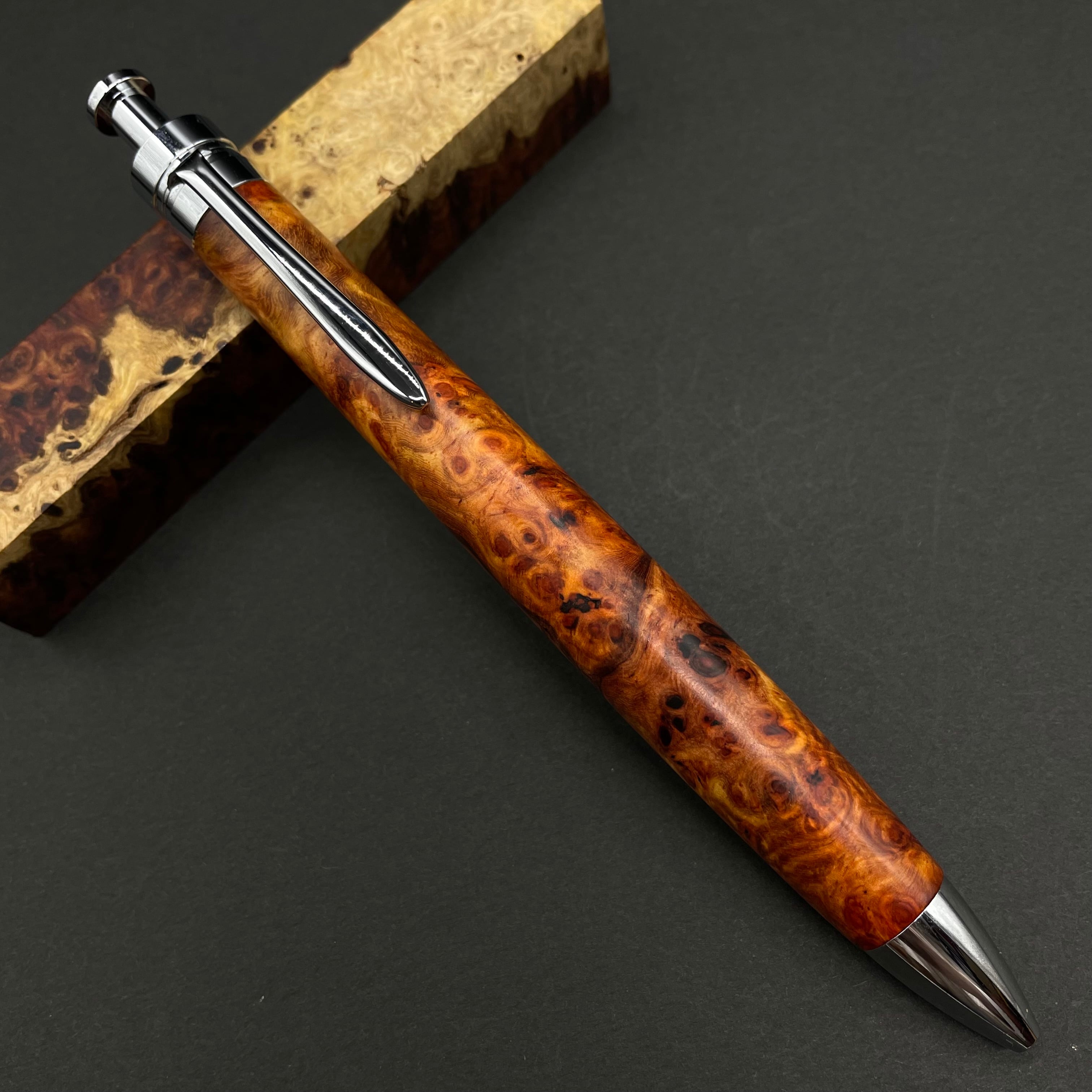 【極上杢 アンボイナバール】木軸ペン 三神シャープ1100 / 三神ボール1000