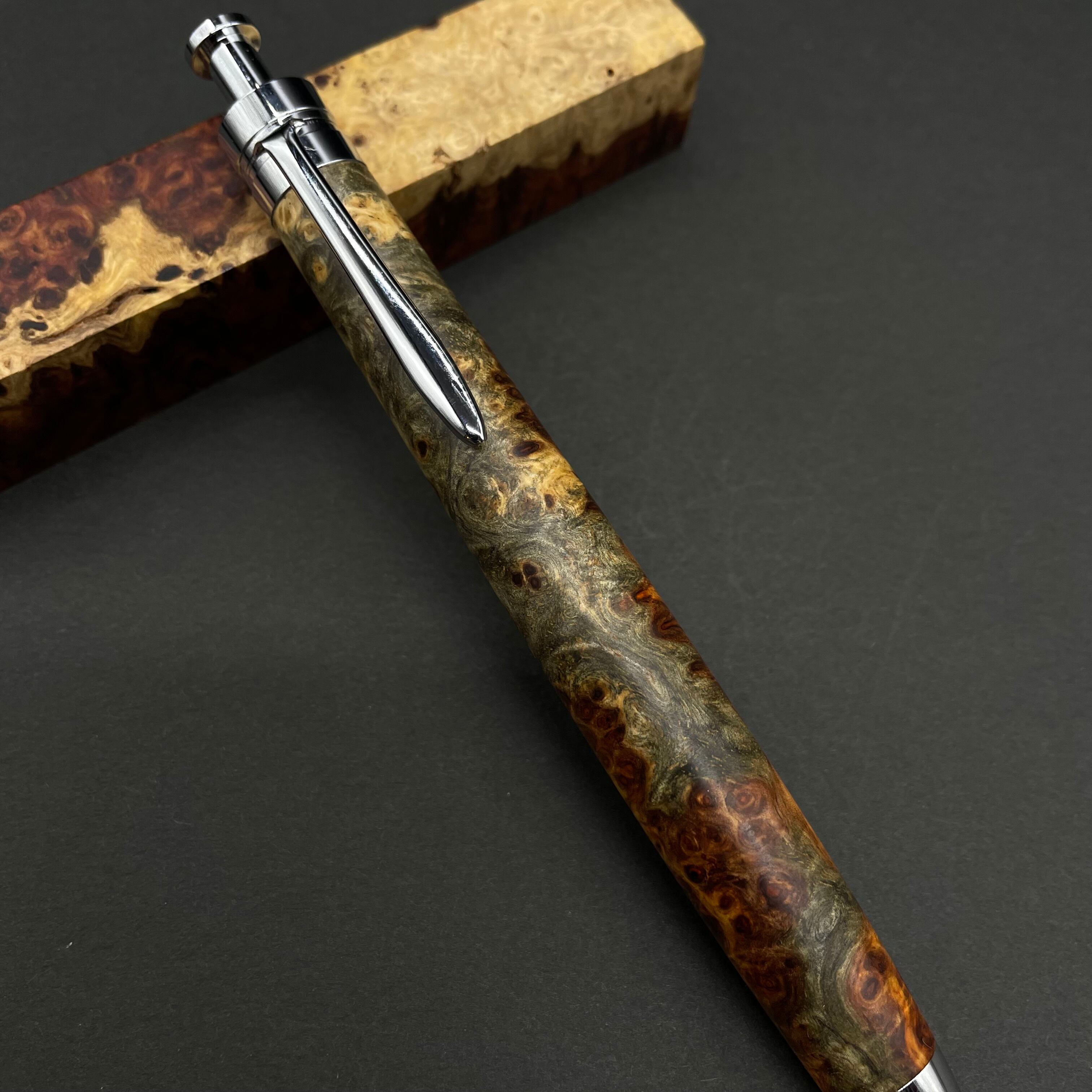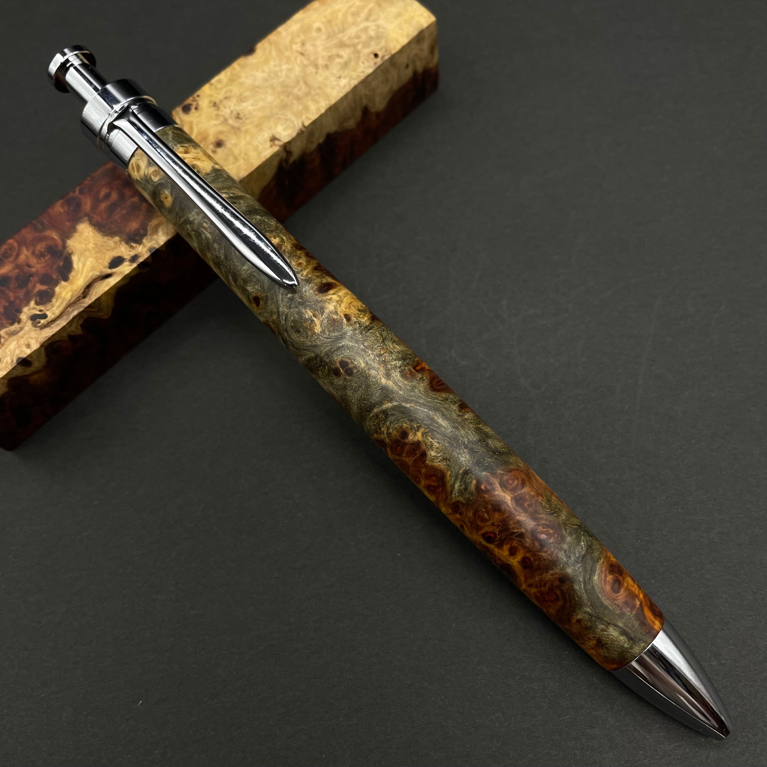 【極上杢 アンボイナバール トリコロール】木軸ペン 三神シャープ1100 / 三神ボール1000