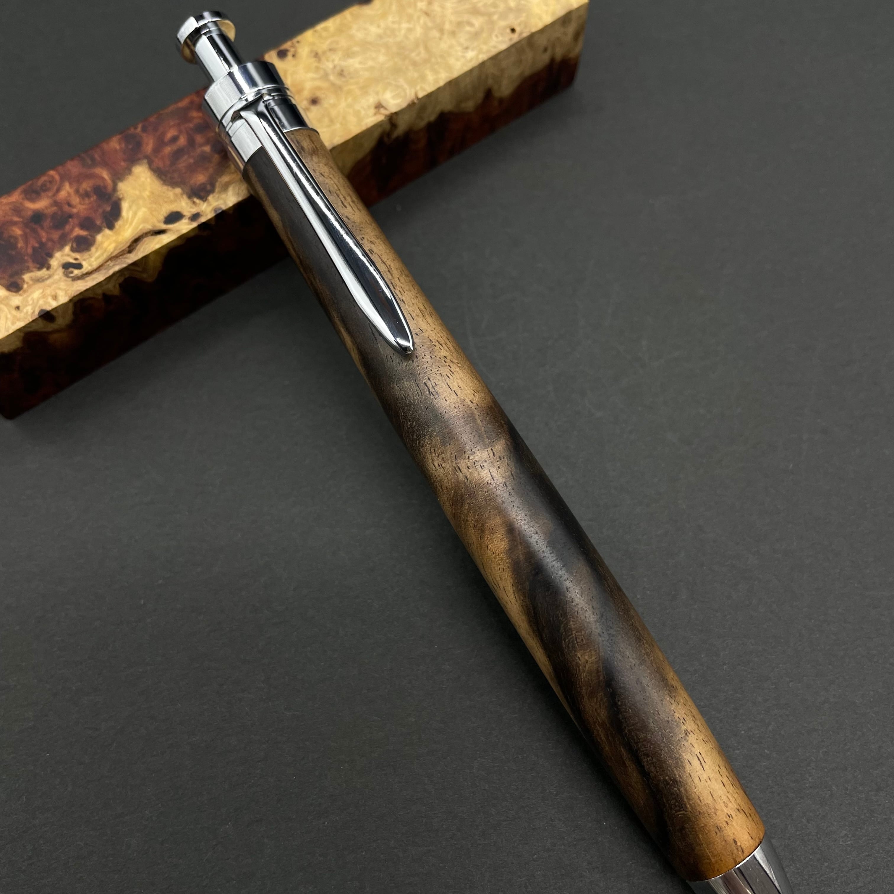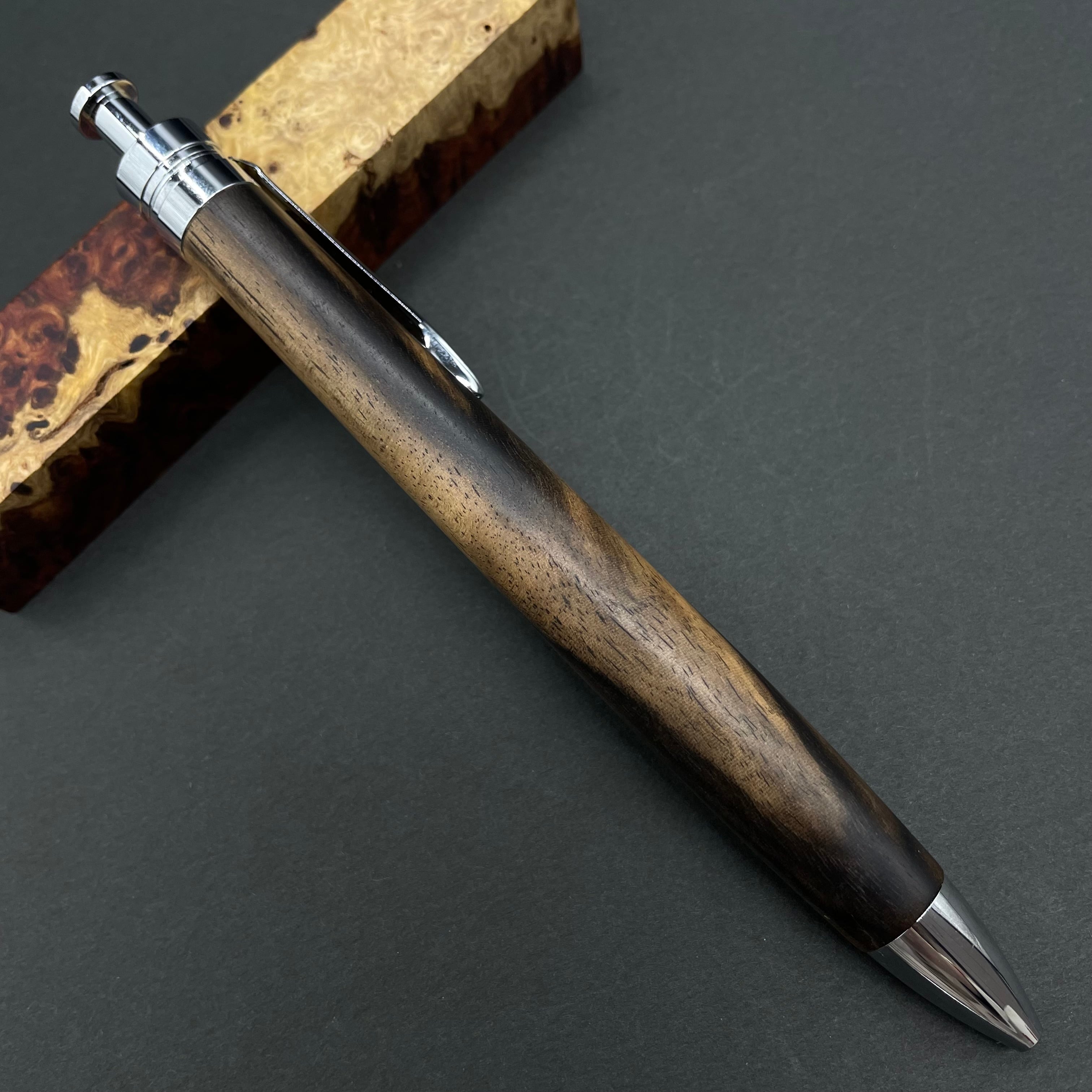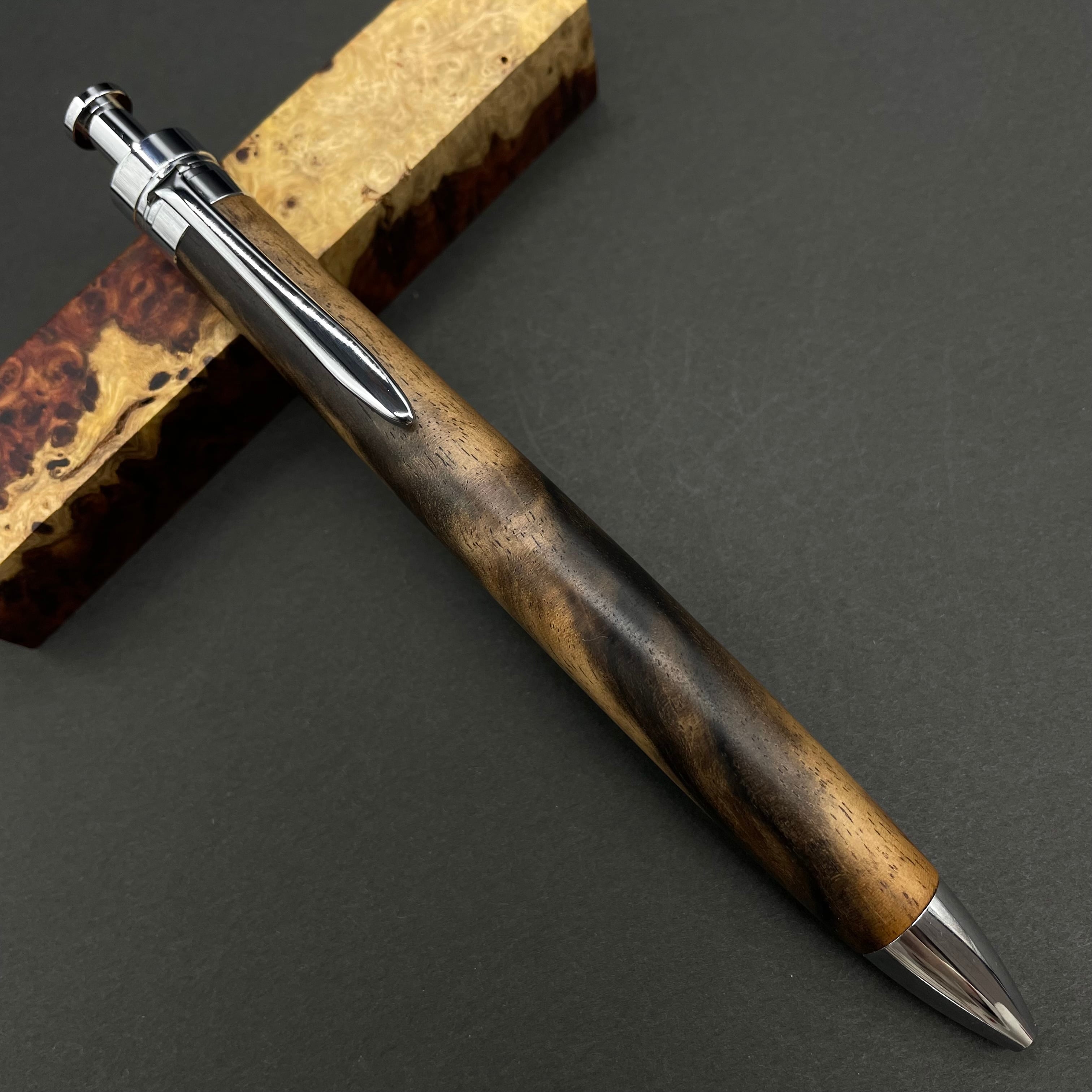 富士山のふもとで、主にインドネシアの良質な瘤材を使用し、木軸ペンをはじめとした木製小物を製作しております。