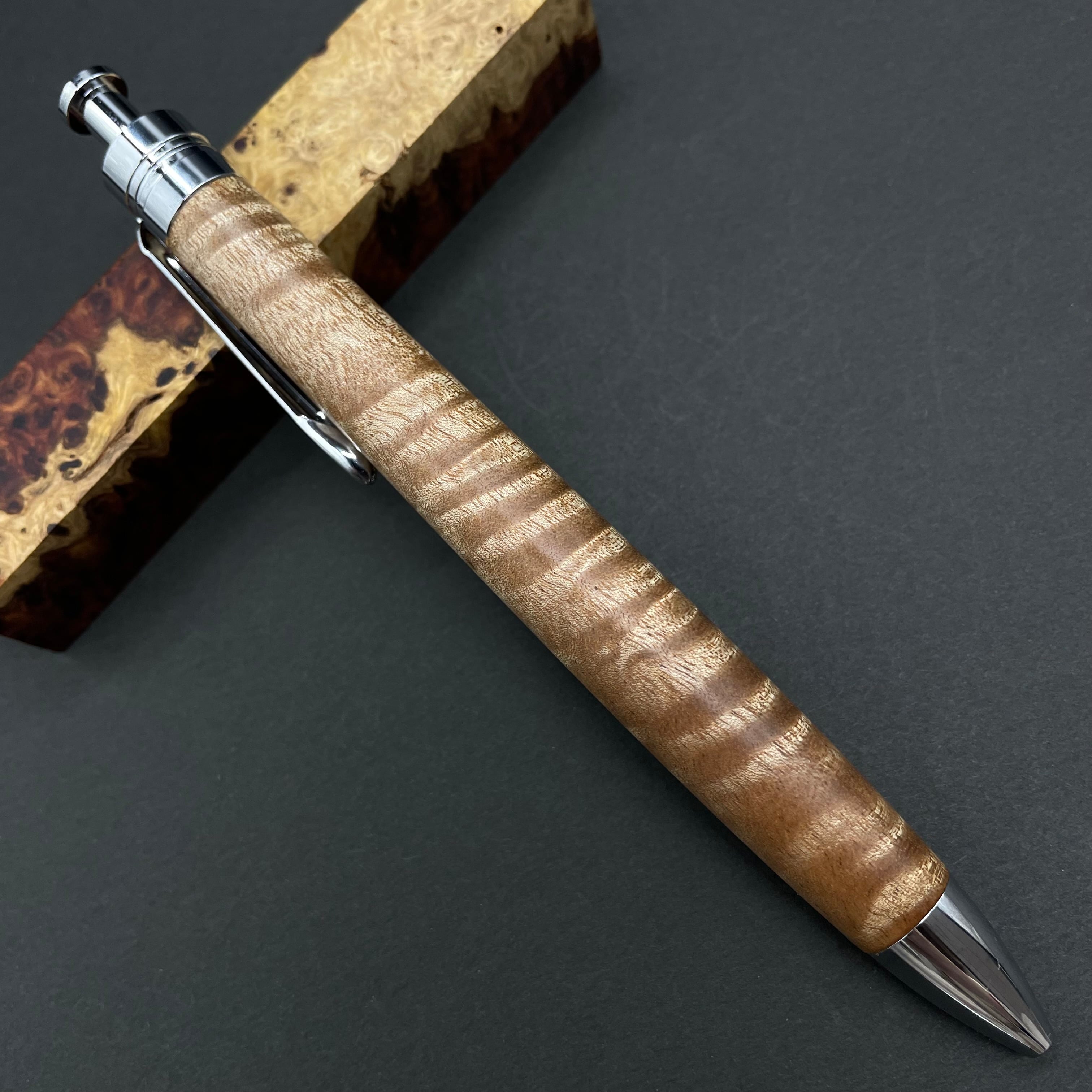 富士山のふもとで、主にインドネシアの良質な瘤材を使用し、木軸ペンをはじめとした木製小物を製作しております。