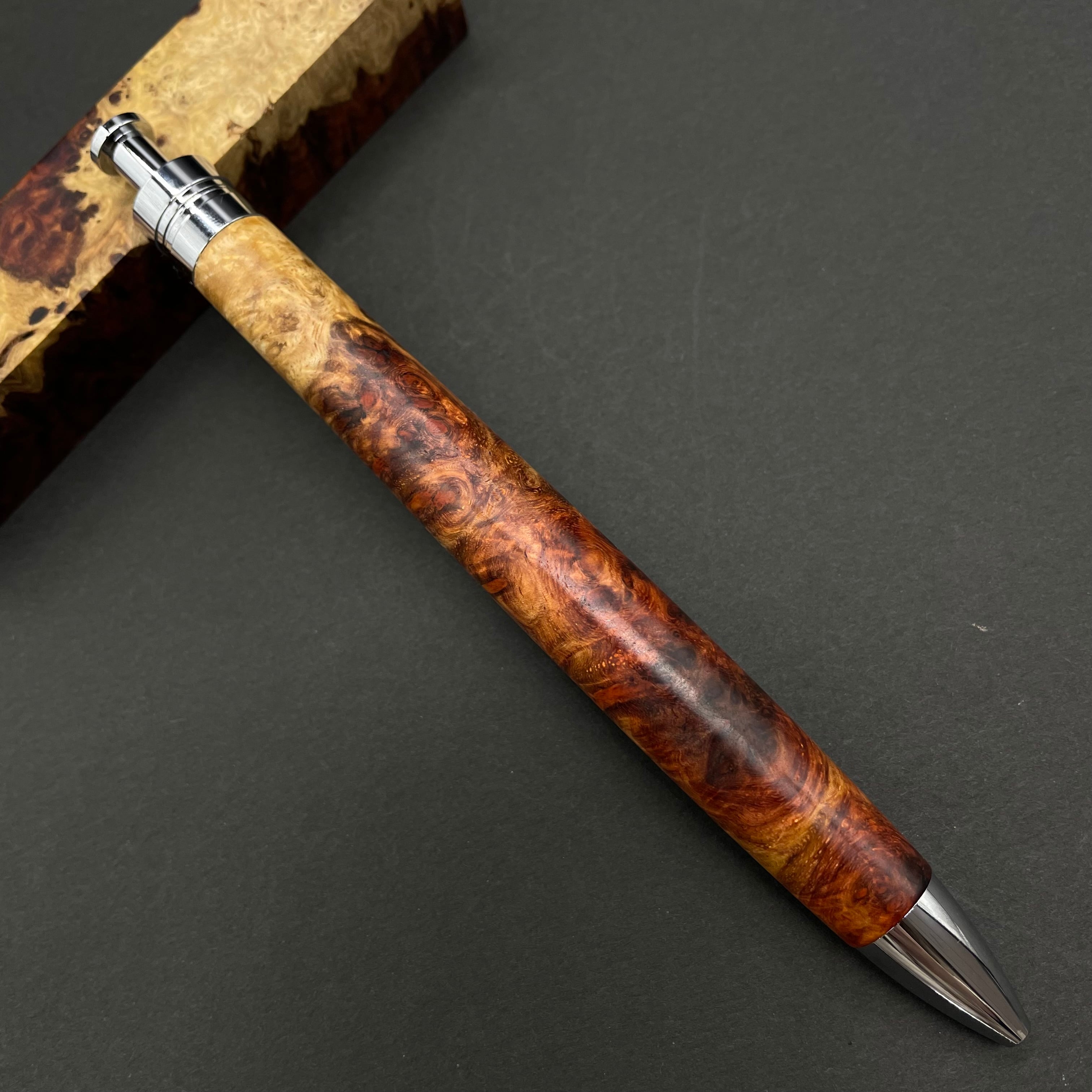 【極上杢 アンボイナバール 紅白】木軸ペン 三神シャープ1100 / 三神ボール1000