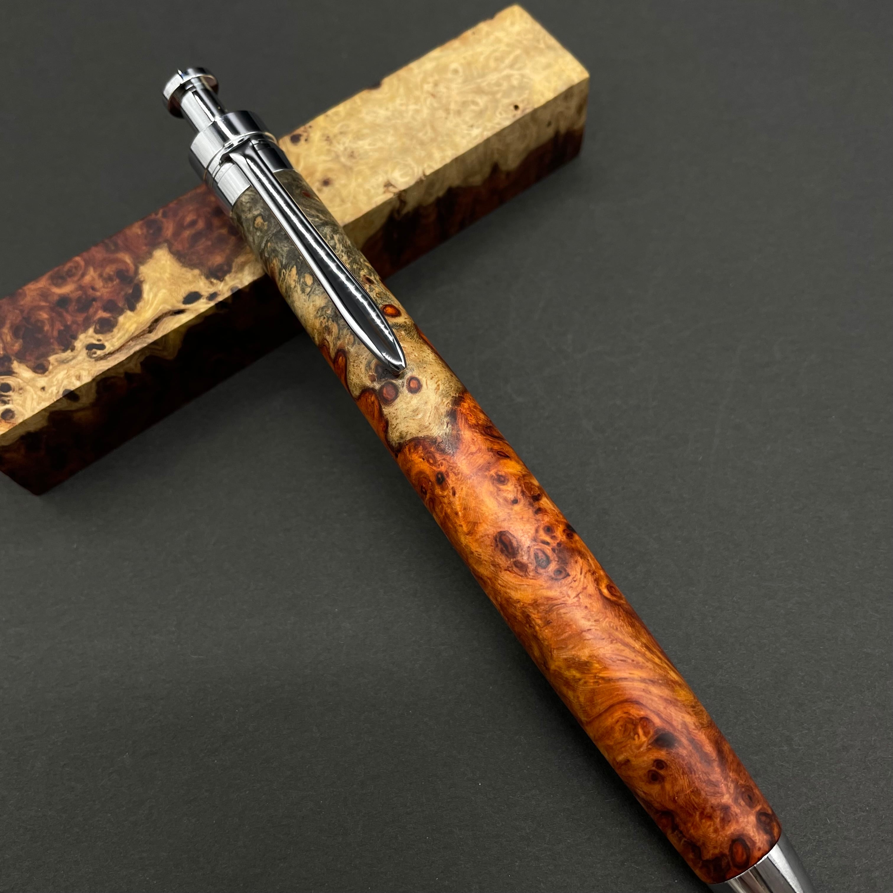 【極上杢 アンボイナバール トリコロール】木軸ペン 三神シャープ1100 / 三神ボール1000