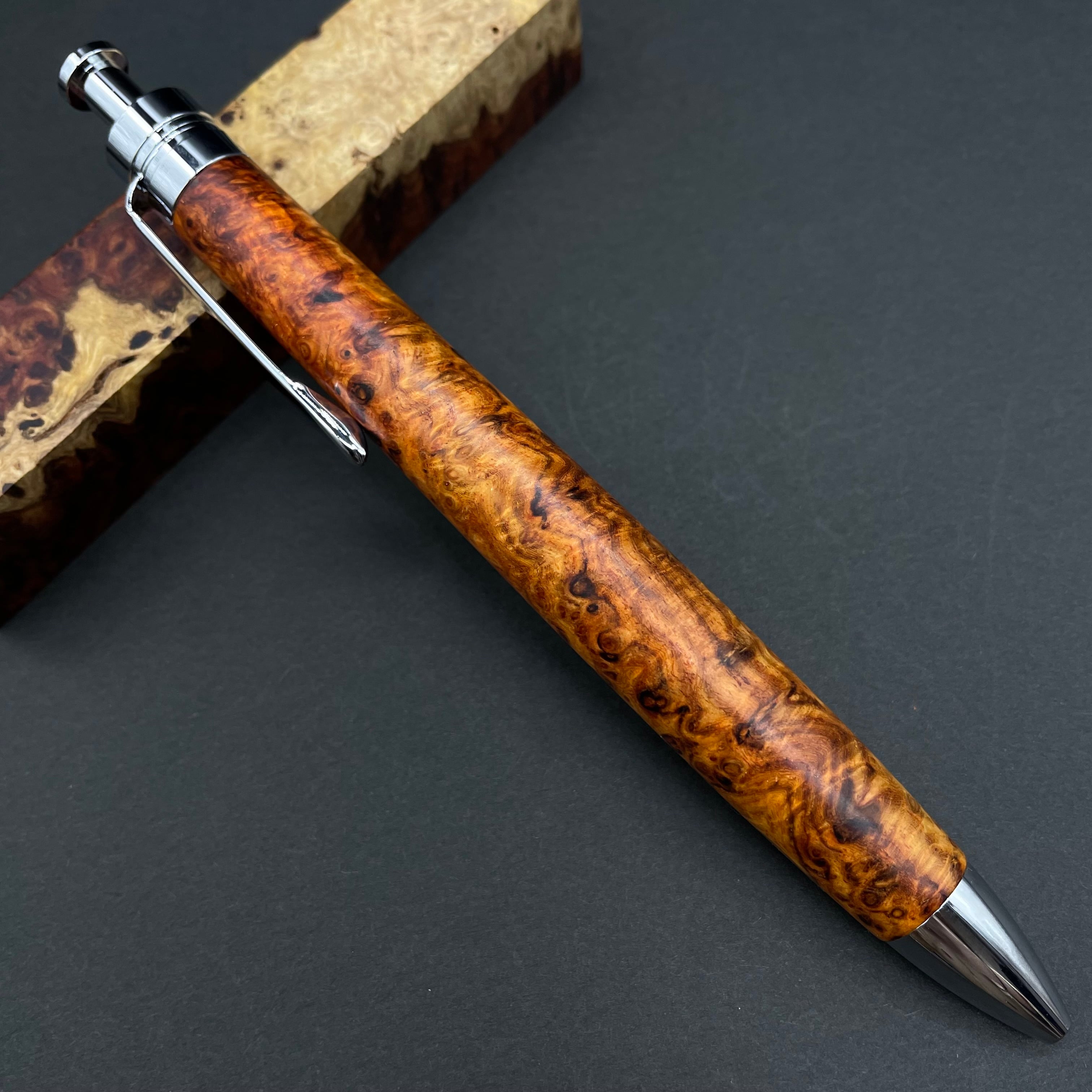 【極上杢 アンボイナバール】木軸ペン 三神シャープ1100 / 三神ボール1000