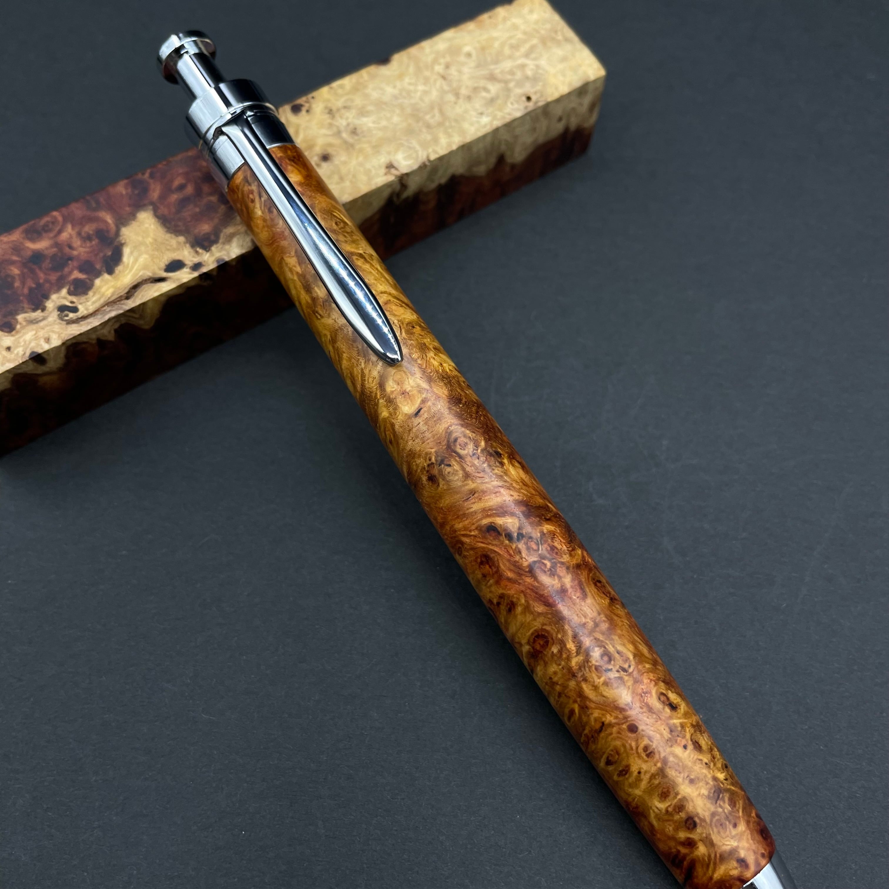 【極上杢 アンボイナバール】木軸ペン 三神シャープ1100 / 三神ボール1000