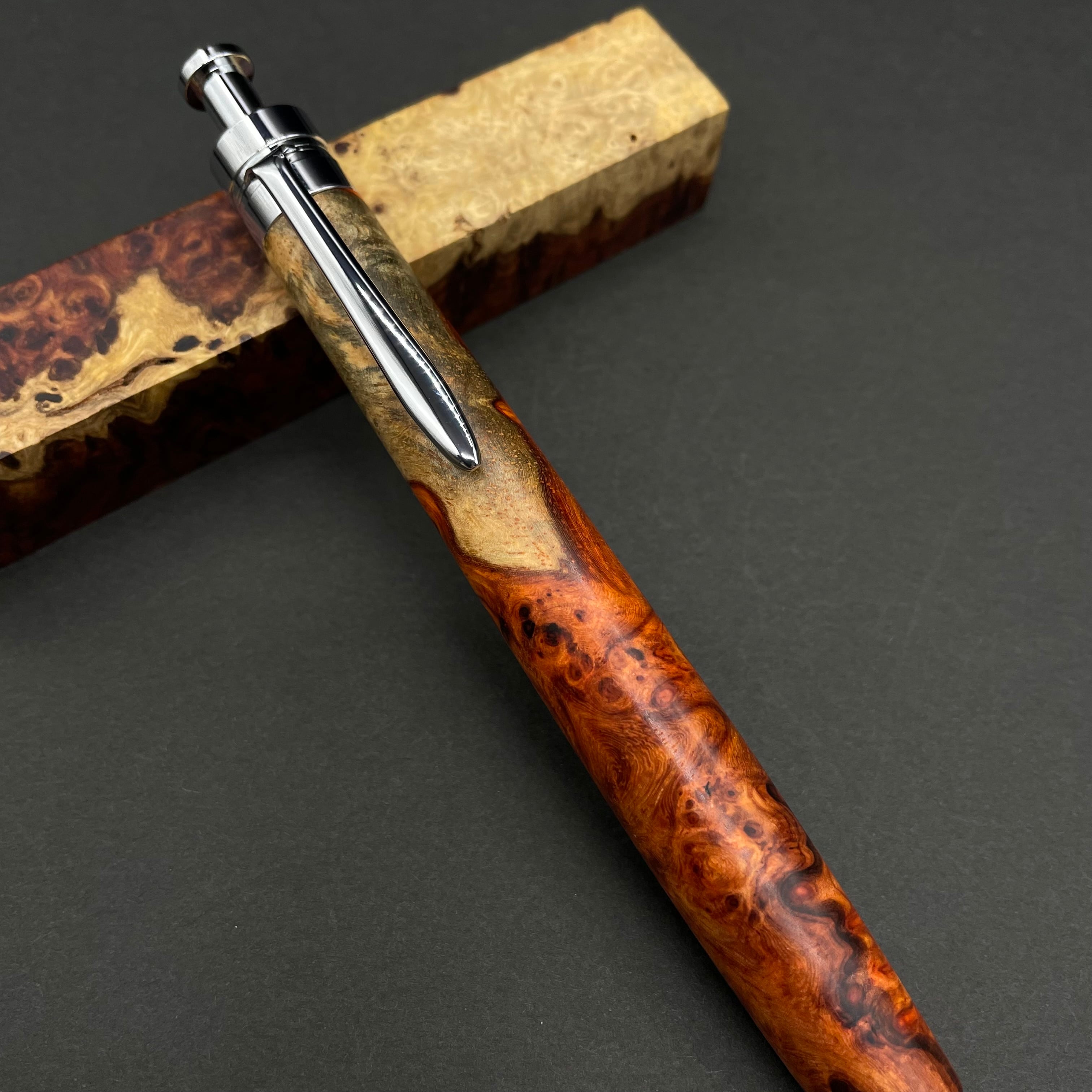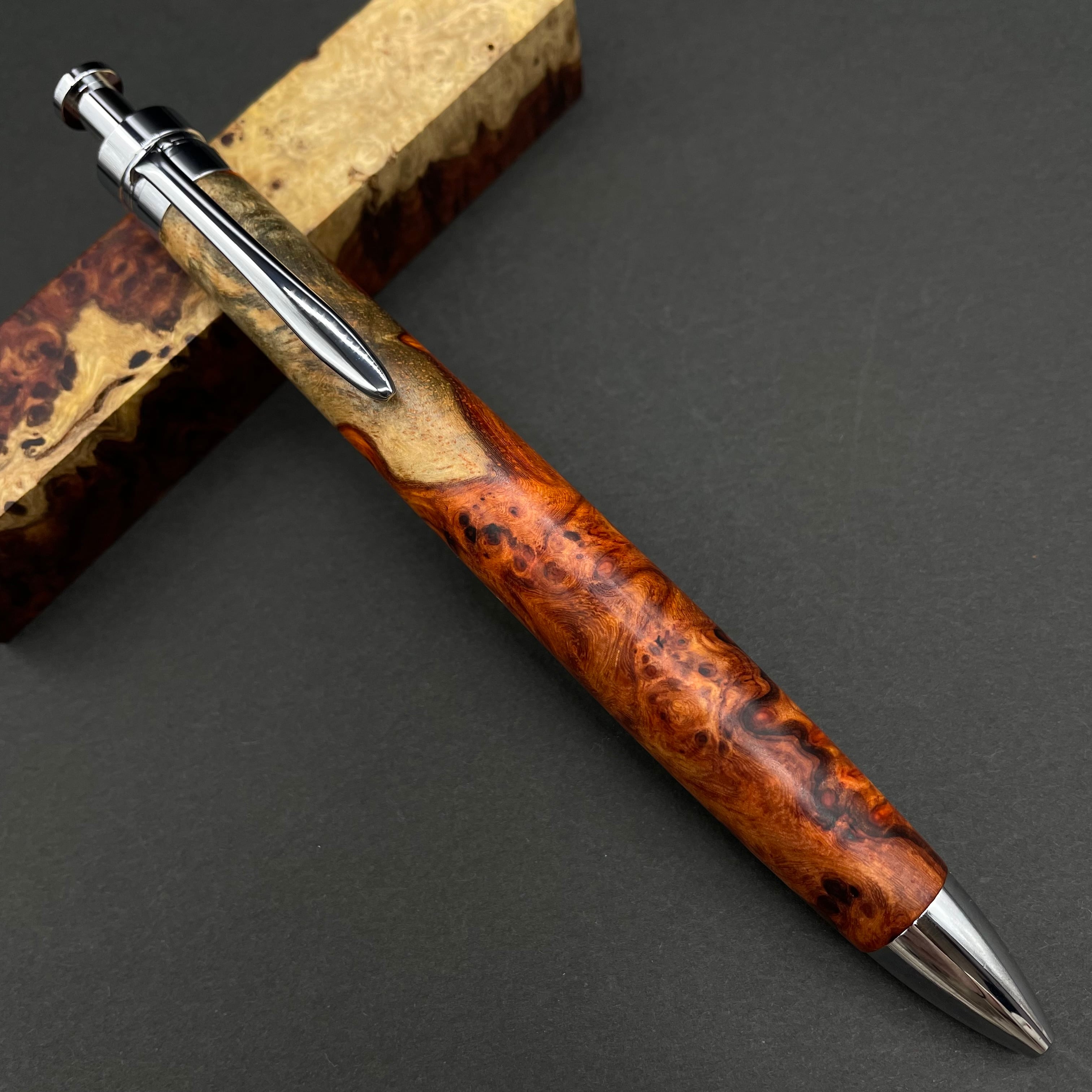 【極上杢 アンボイナバール トリコロール】木軸ペン 三神シャープ1100 / 三神ボール1000