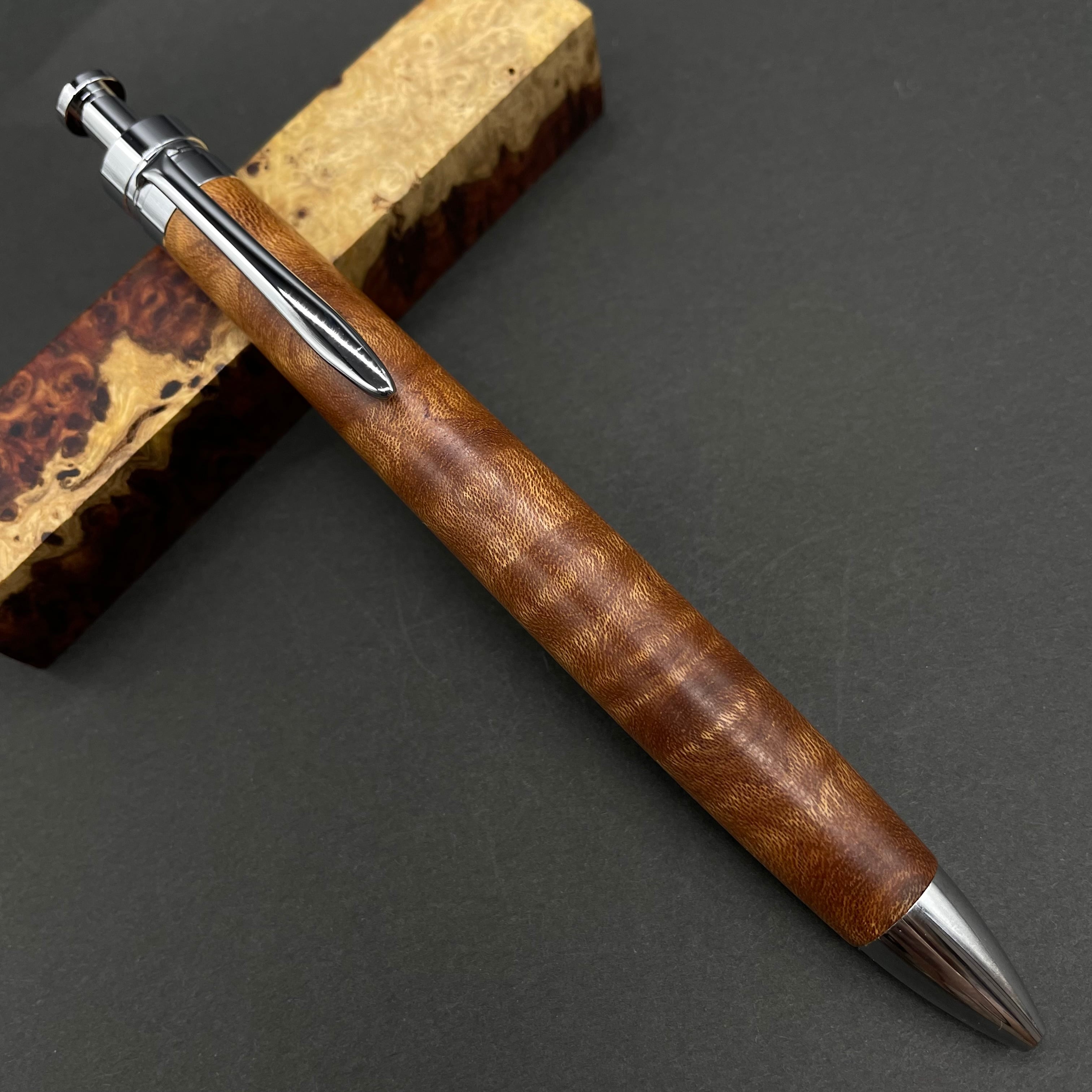 富士山のふもとで、主にインドネシアの良質な瘤材を使用し、木軸ペンをはじめとした木製小物を製作しております。