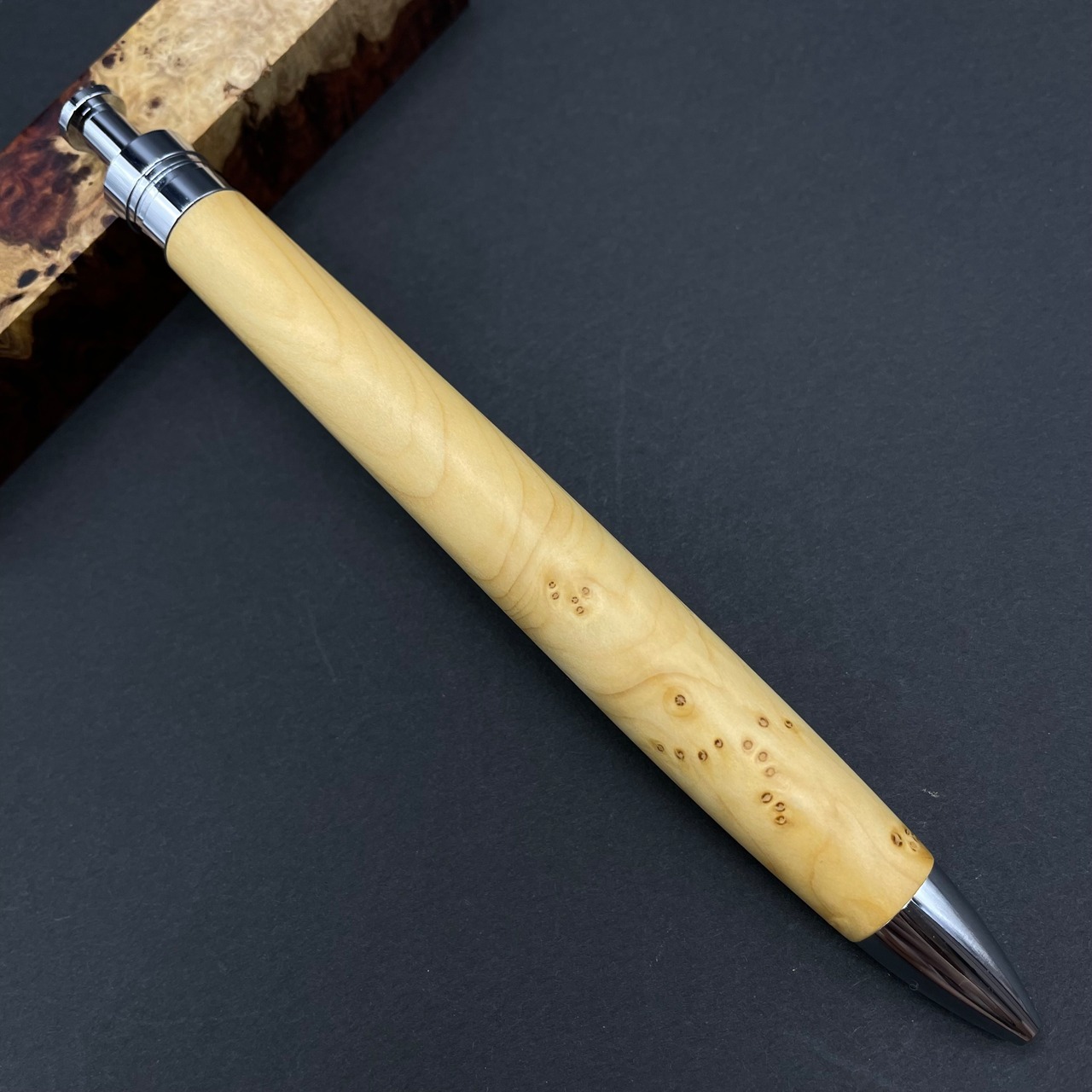 富士山のふもとで、主にインドネシアの良質な瘤材を使用し、木軸ペンをはじめとした木製小物を製作しております。