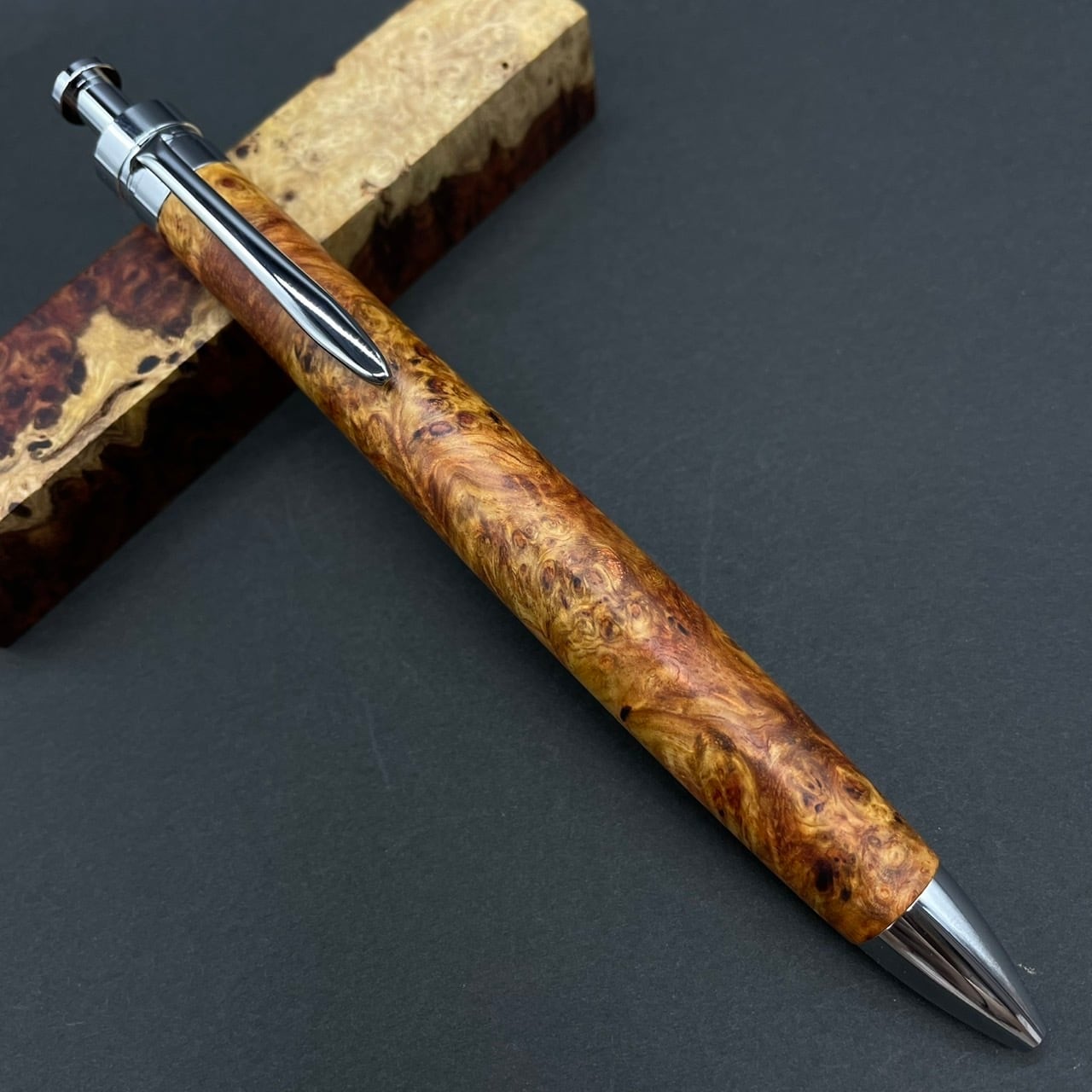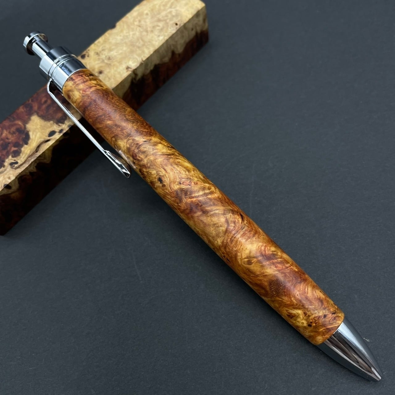 【極上杢 アンボイナバール】木軸ペン 三神シャープ1100 / 三神ボール1000