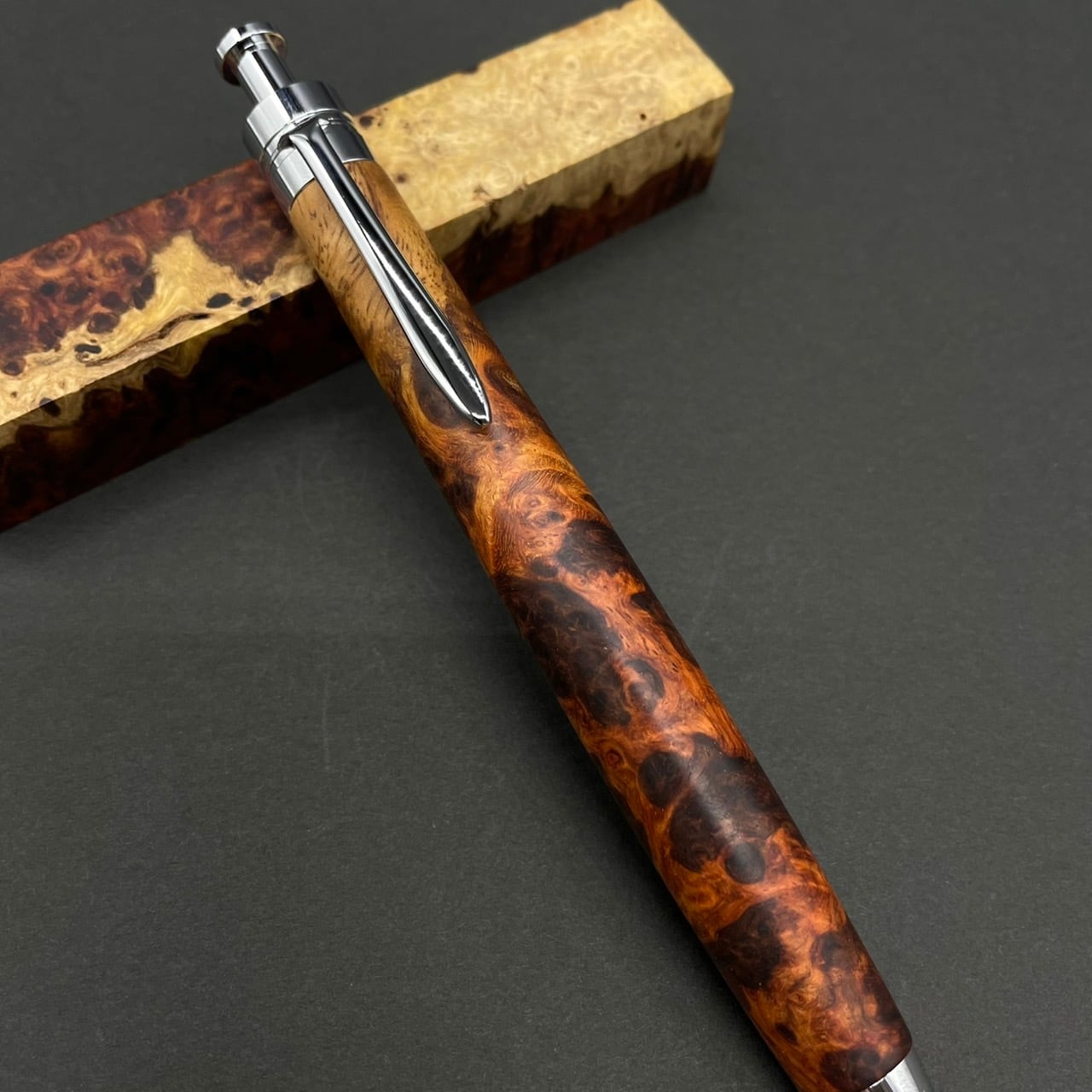 【極上杢 アンボイナバール】木軸ペン 三神シャープ1100 / 三神ボール1000